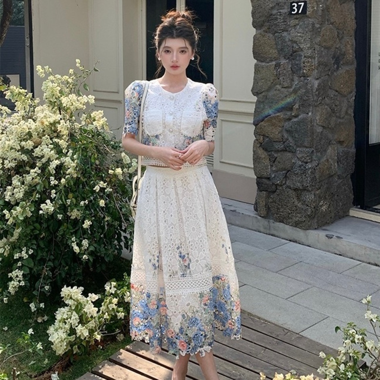 【set】4色レーストップスxスカート HR3264