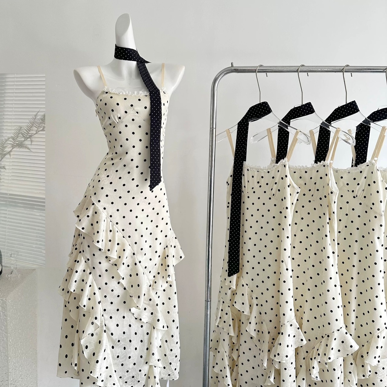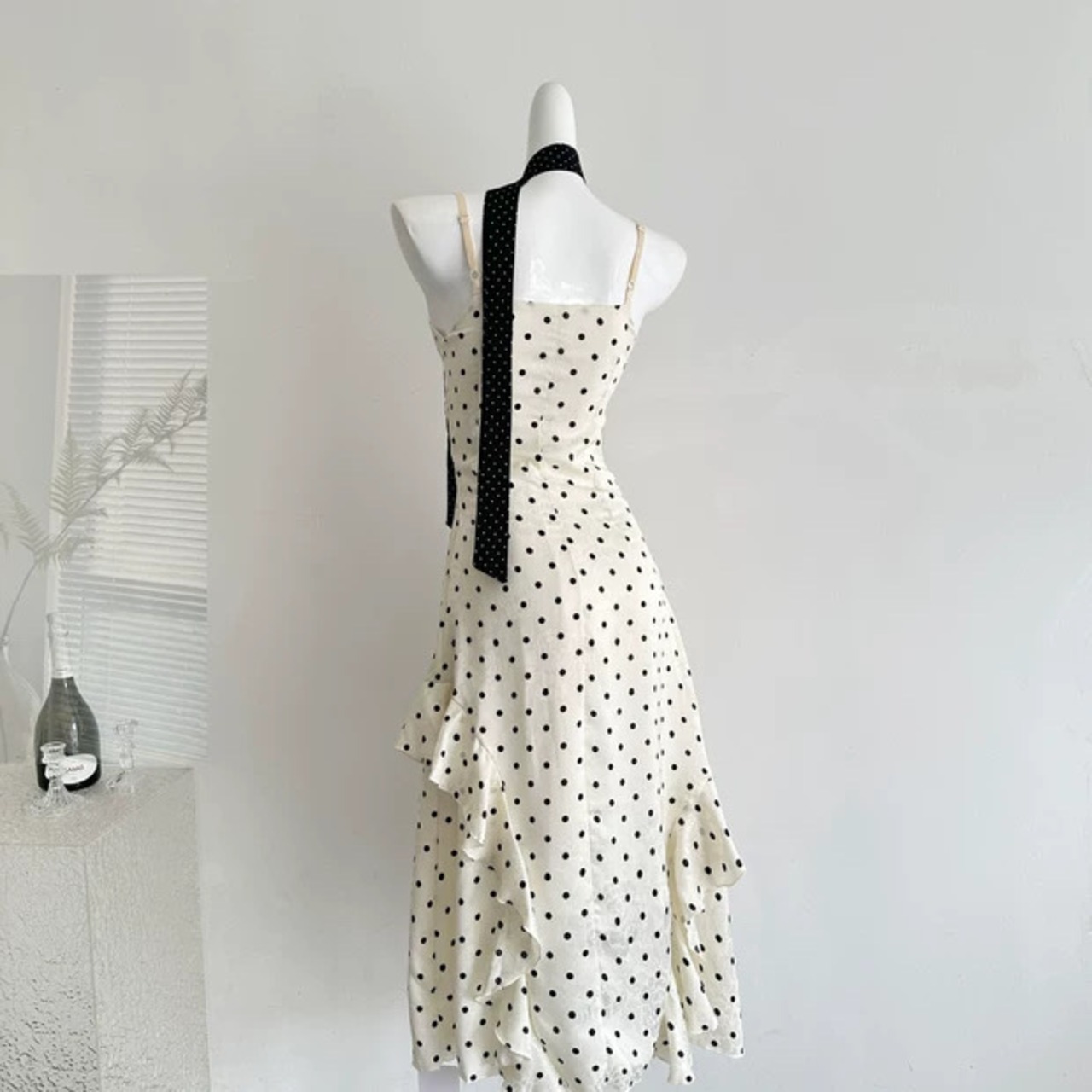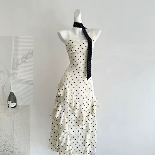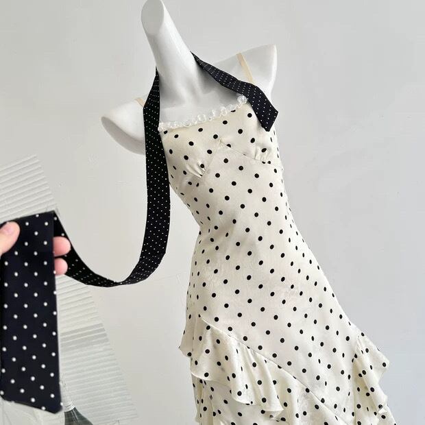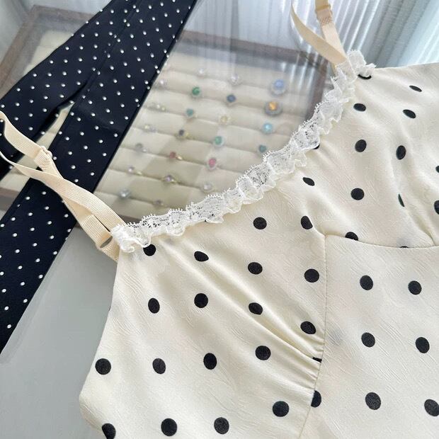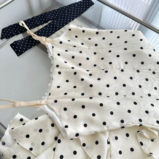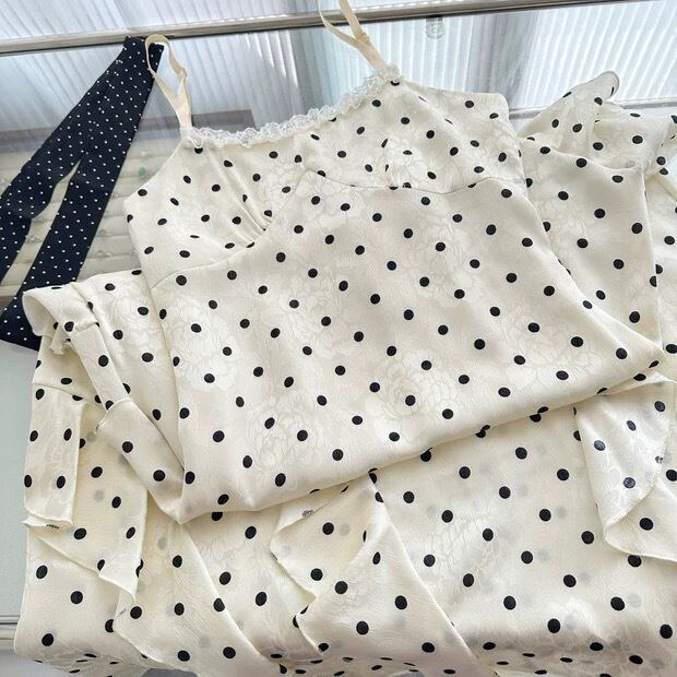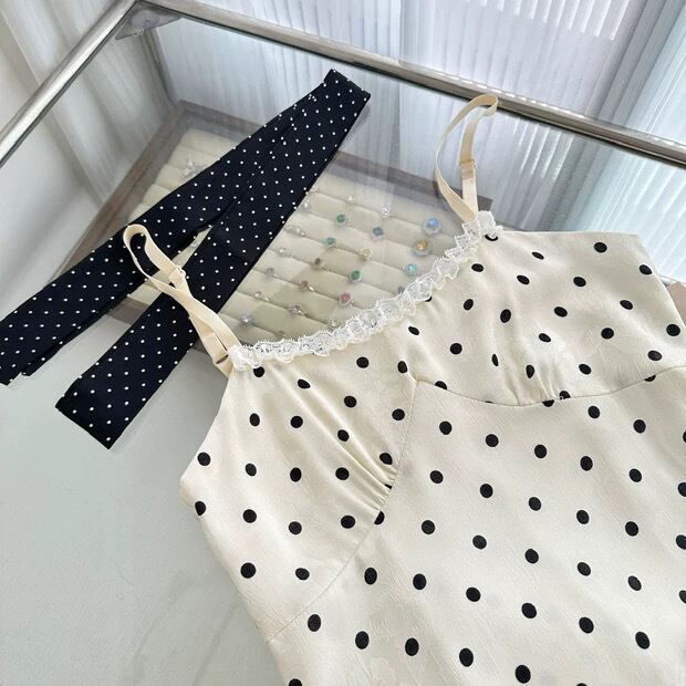 【dress】リボン付きドット柄キャミワンピース HR3269