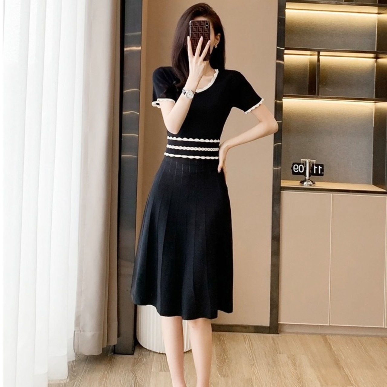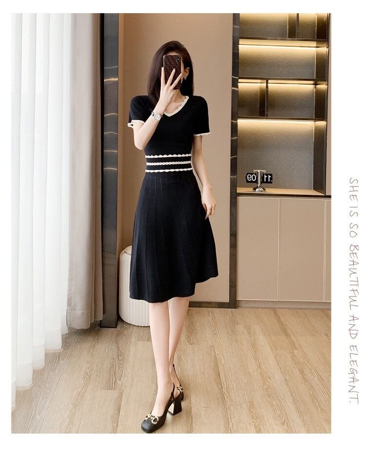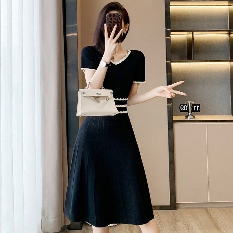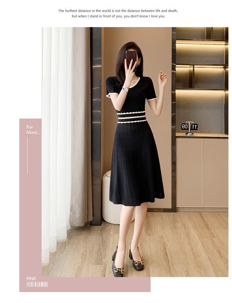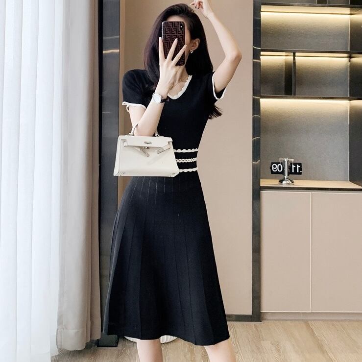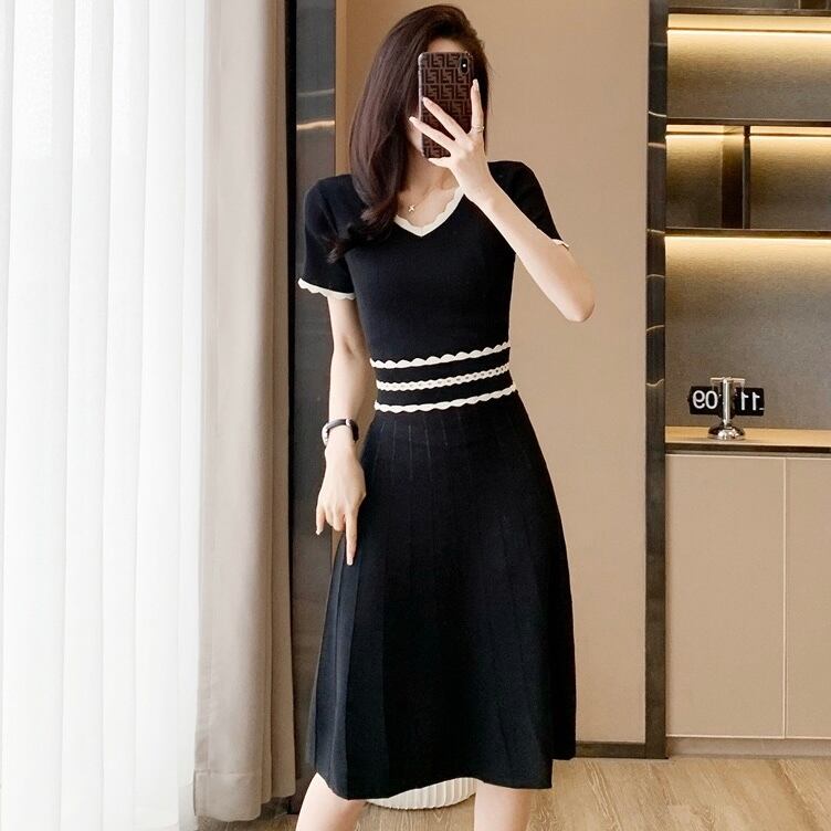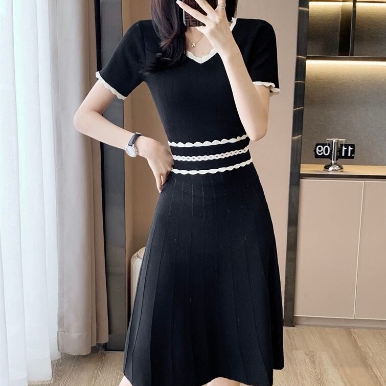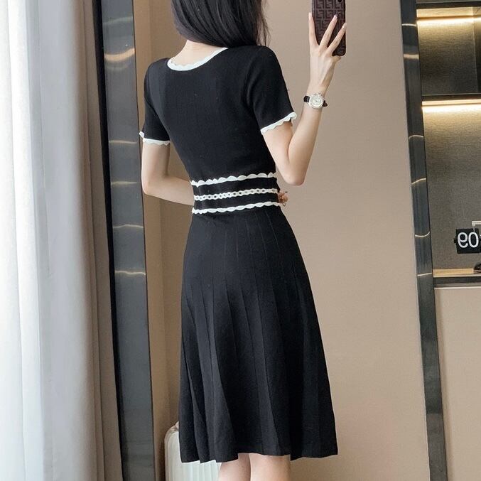 【dress】配色Aラインニットワンピース HR3280