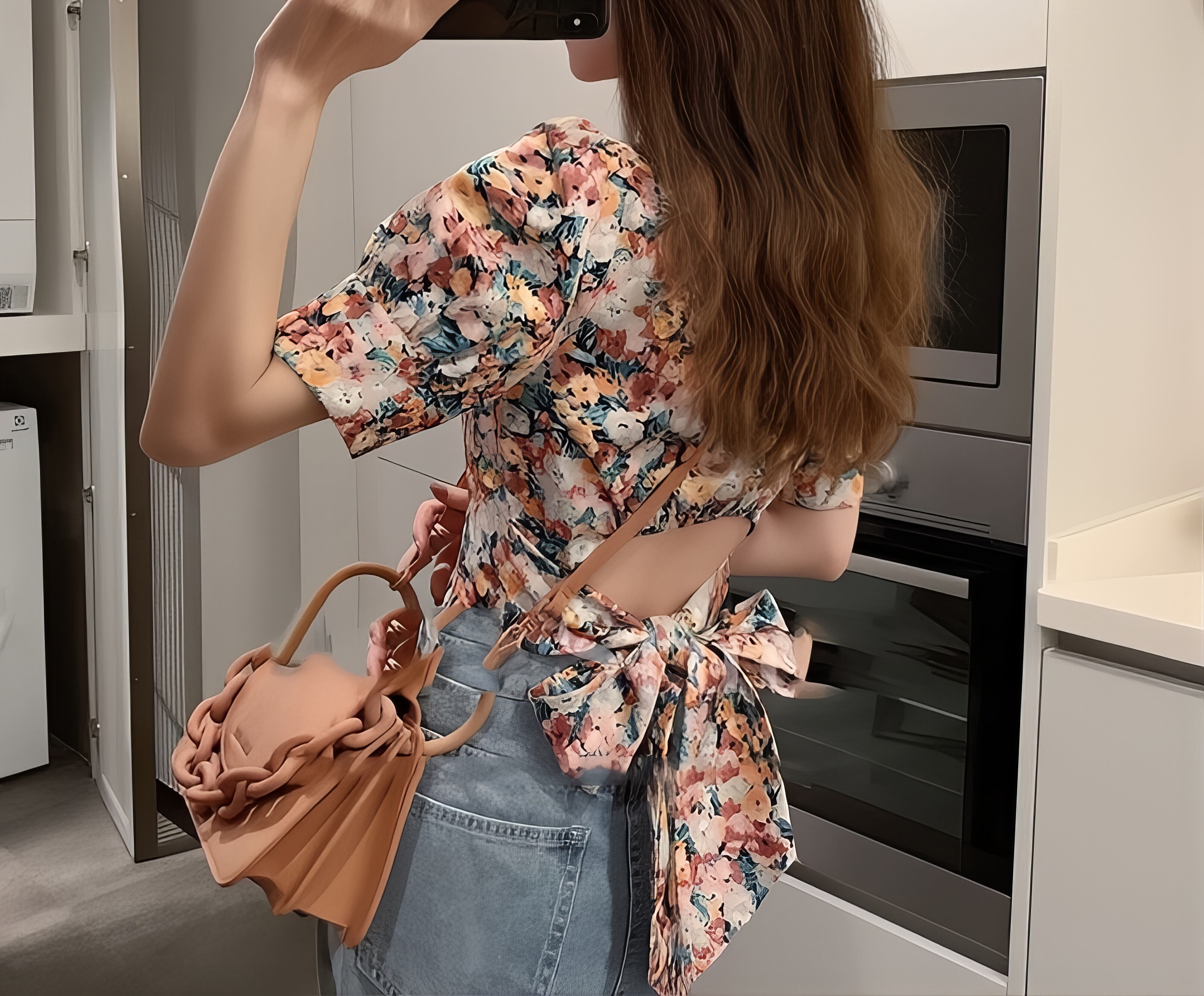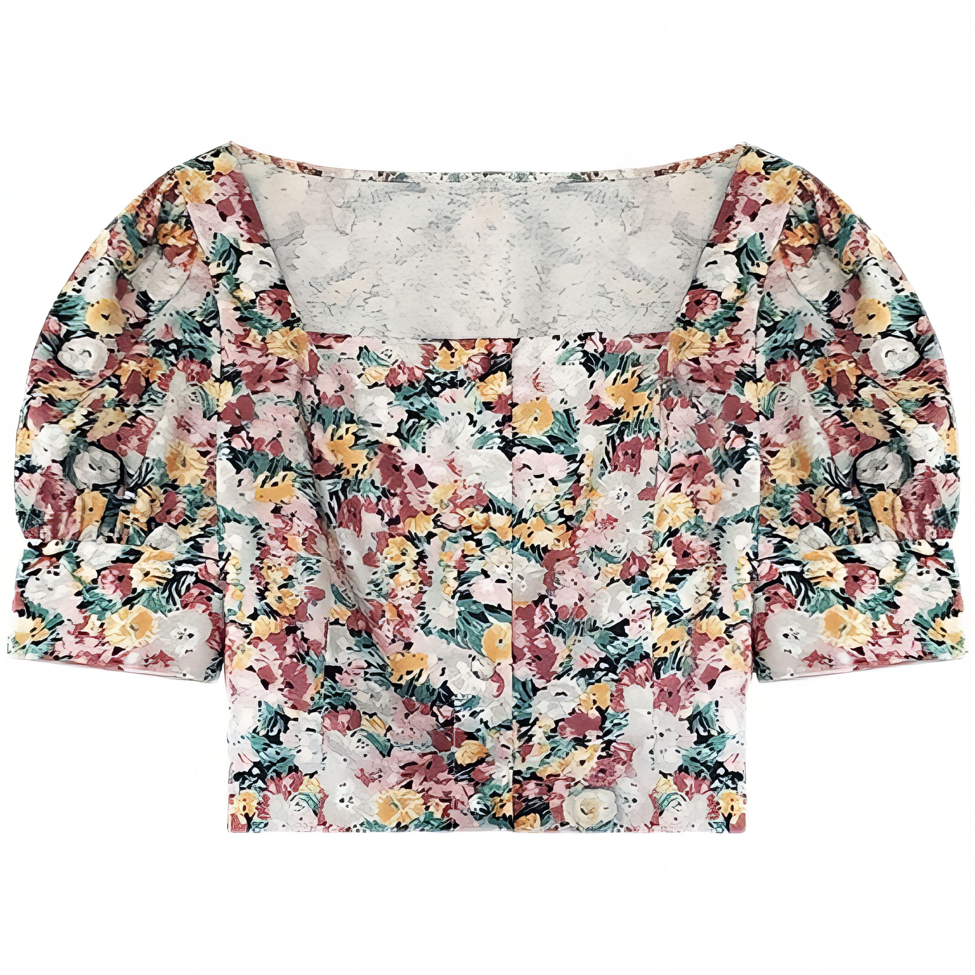 【tops】ショート丈花柄半袖トップス HK0364