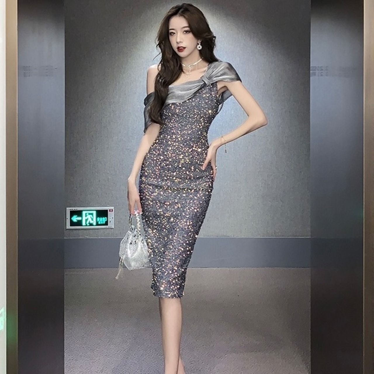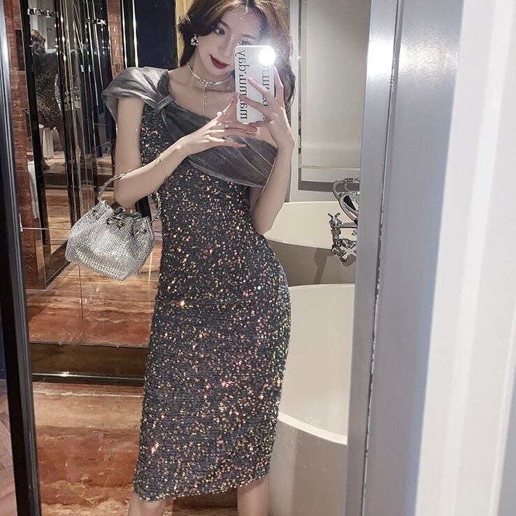 【dress】キラキラオフショルダーワンピース RH3299