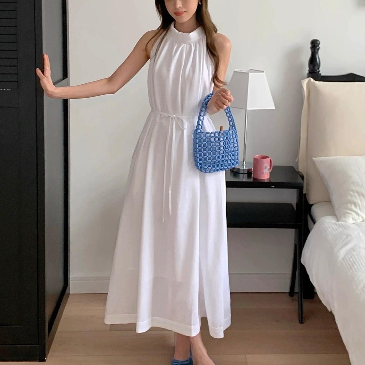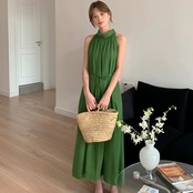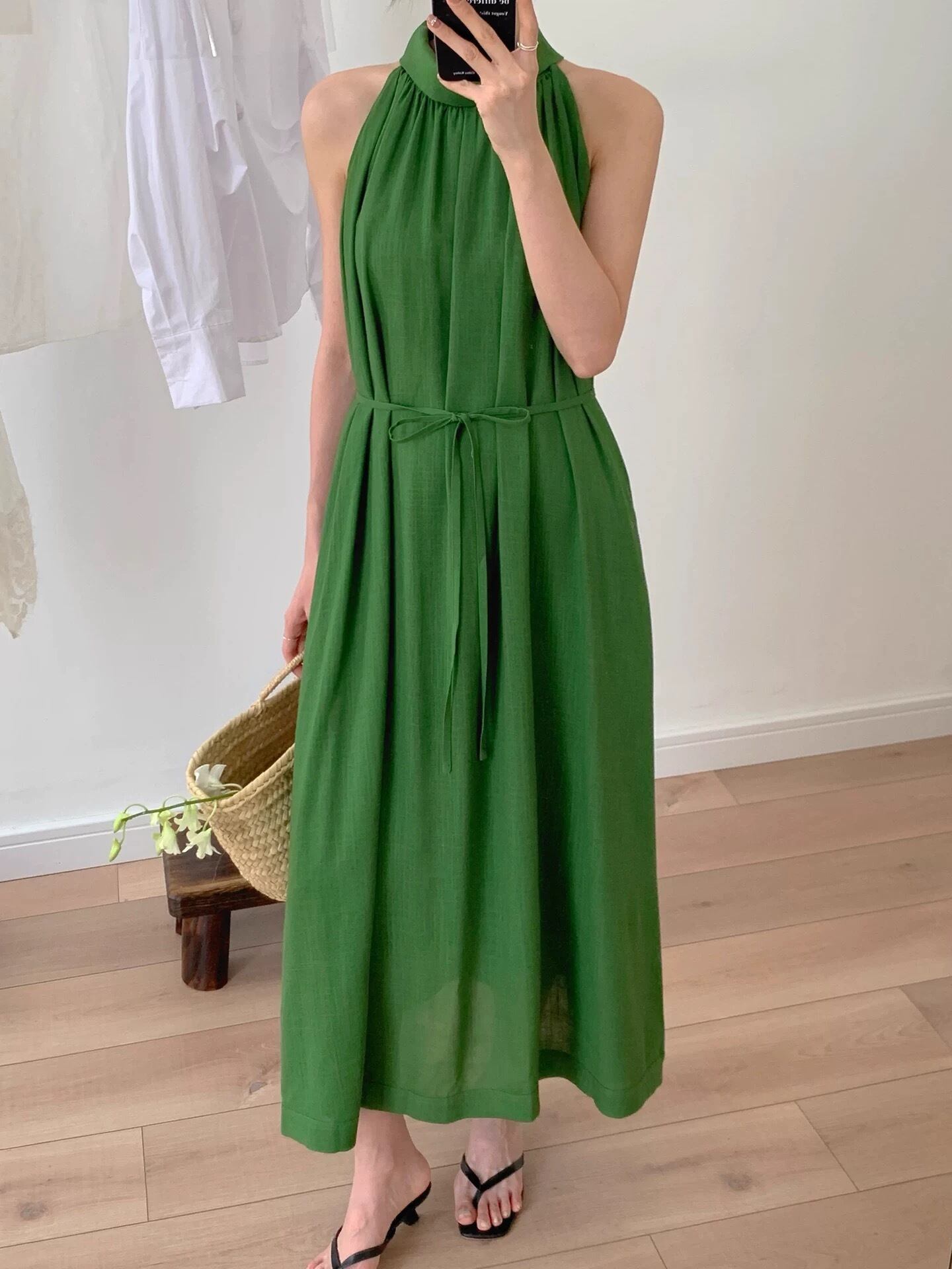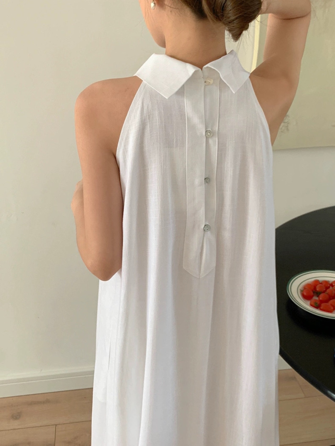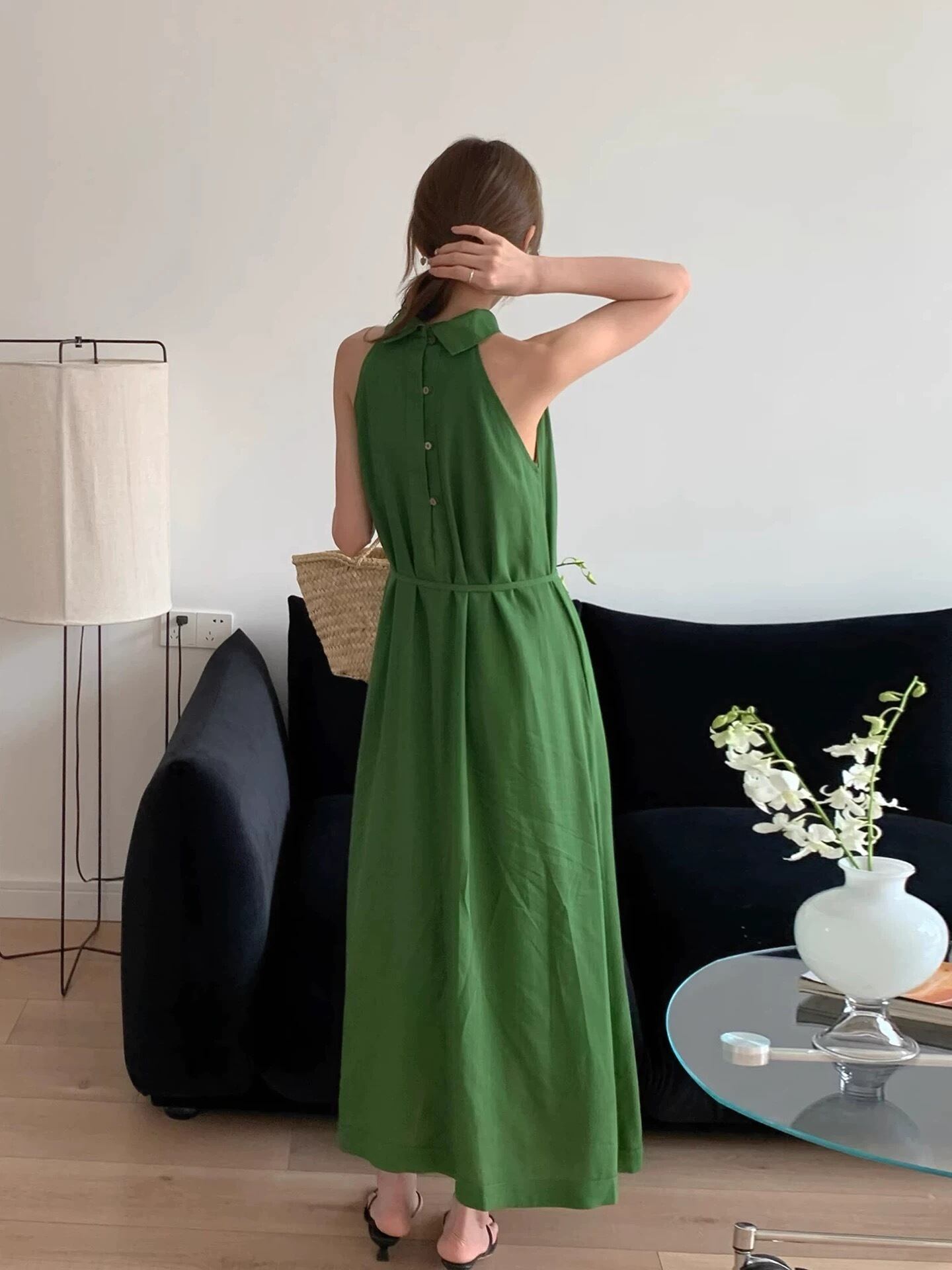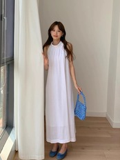 【dress】2色バックボタンリボンノースリーブワンピース RH3296