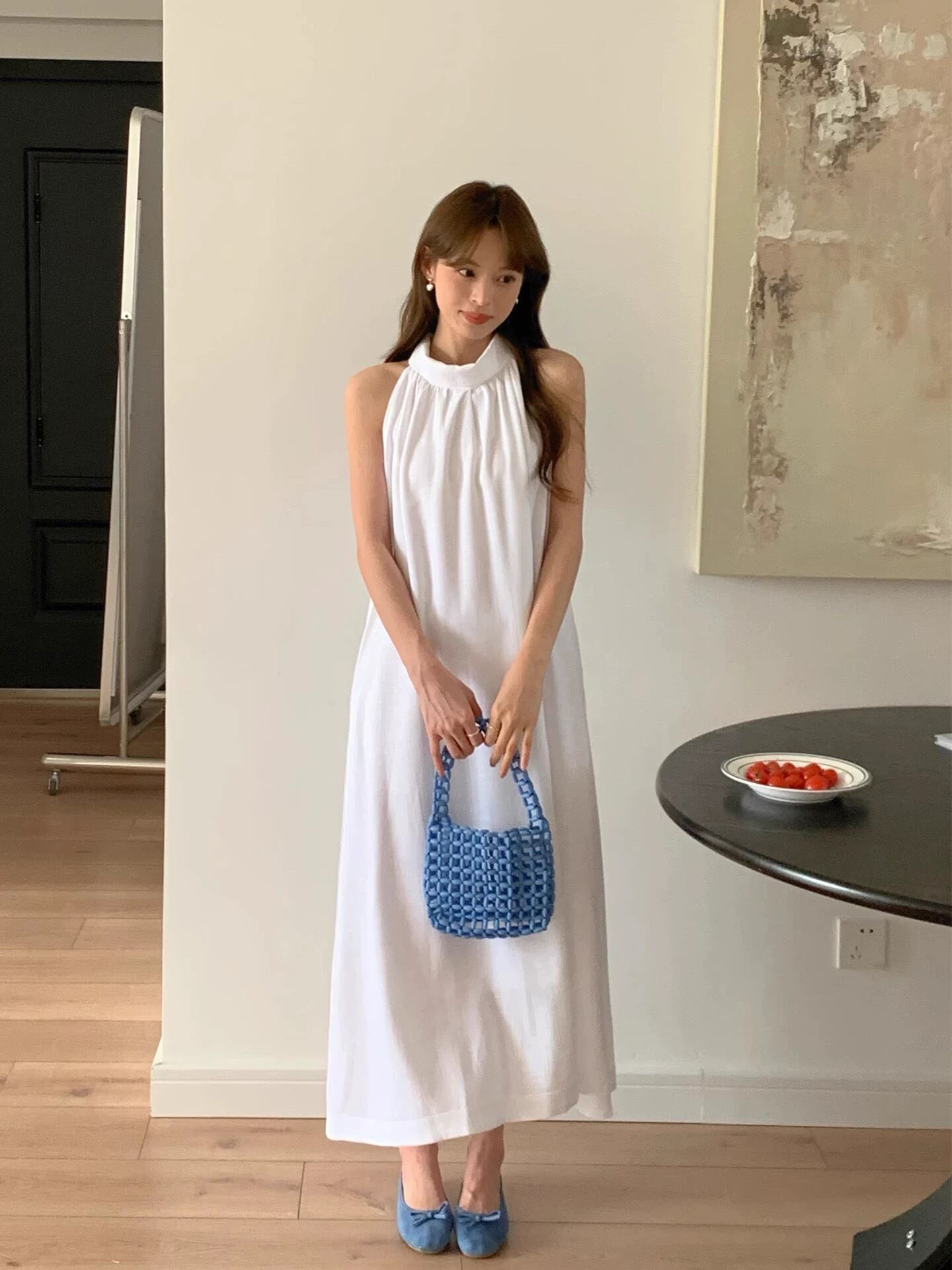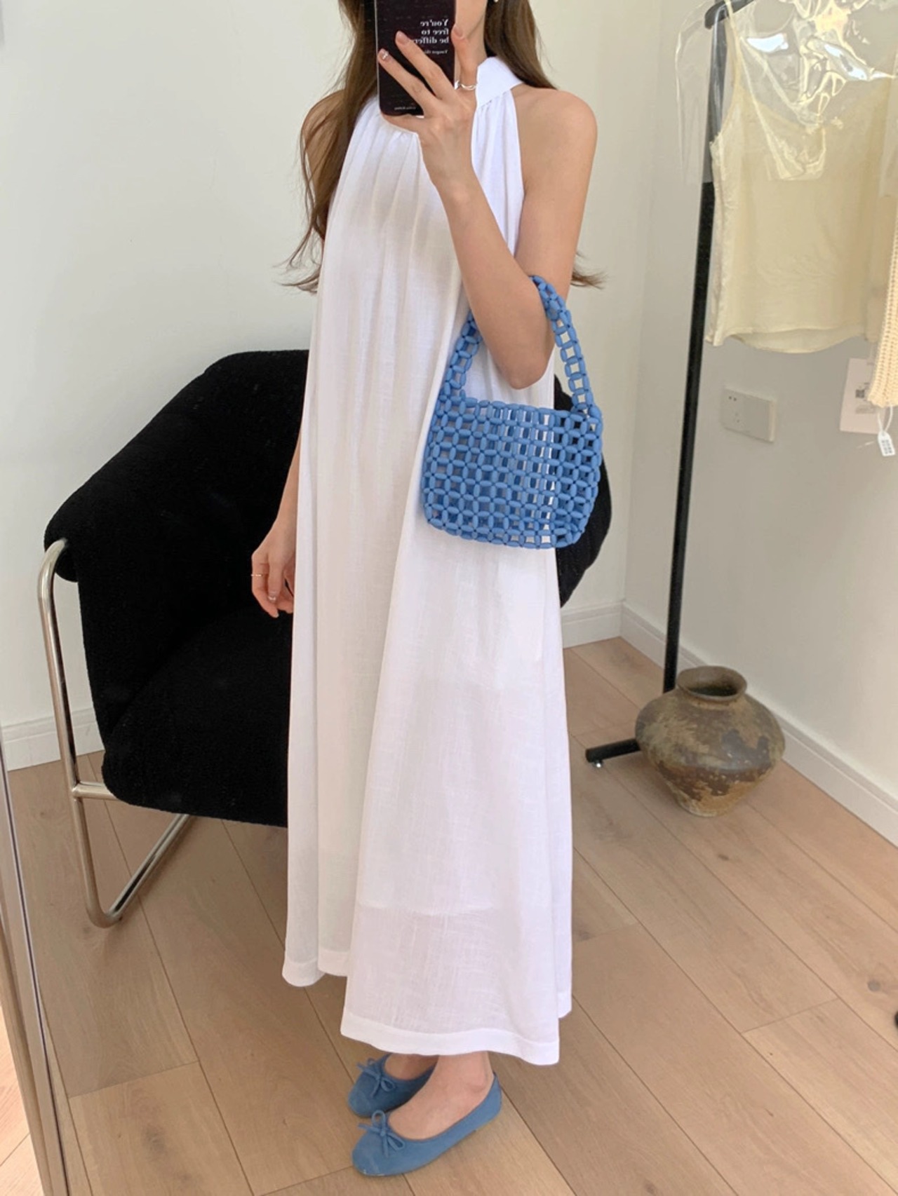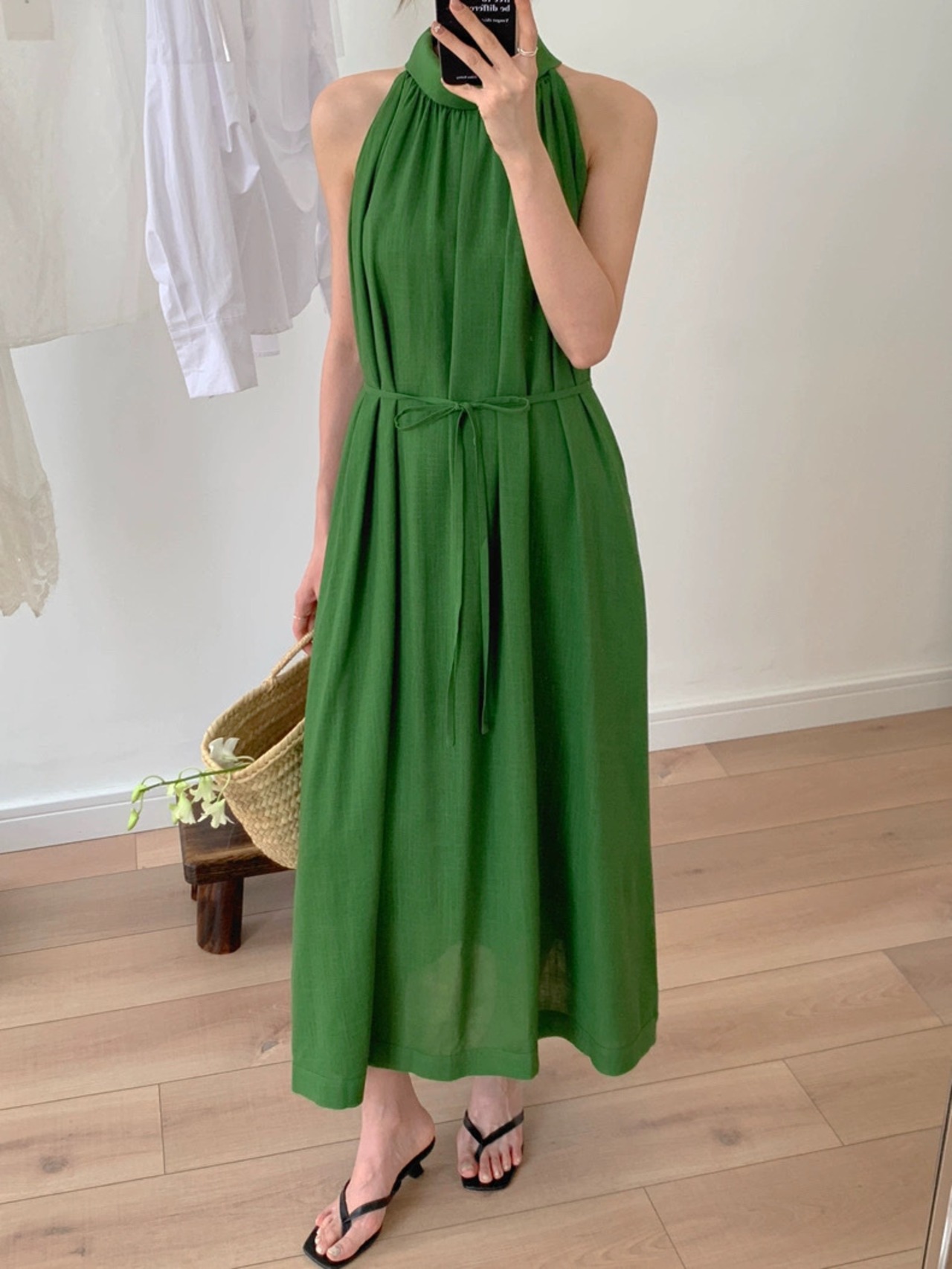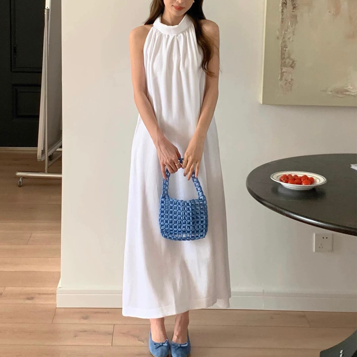 【dress】2色バックボタンリボンノースリーブワンピース RH3296