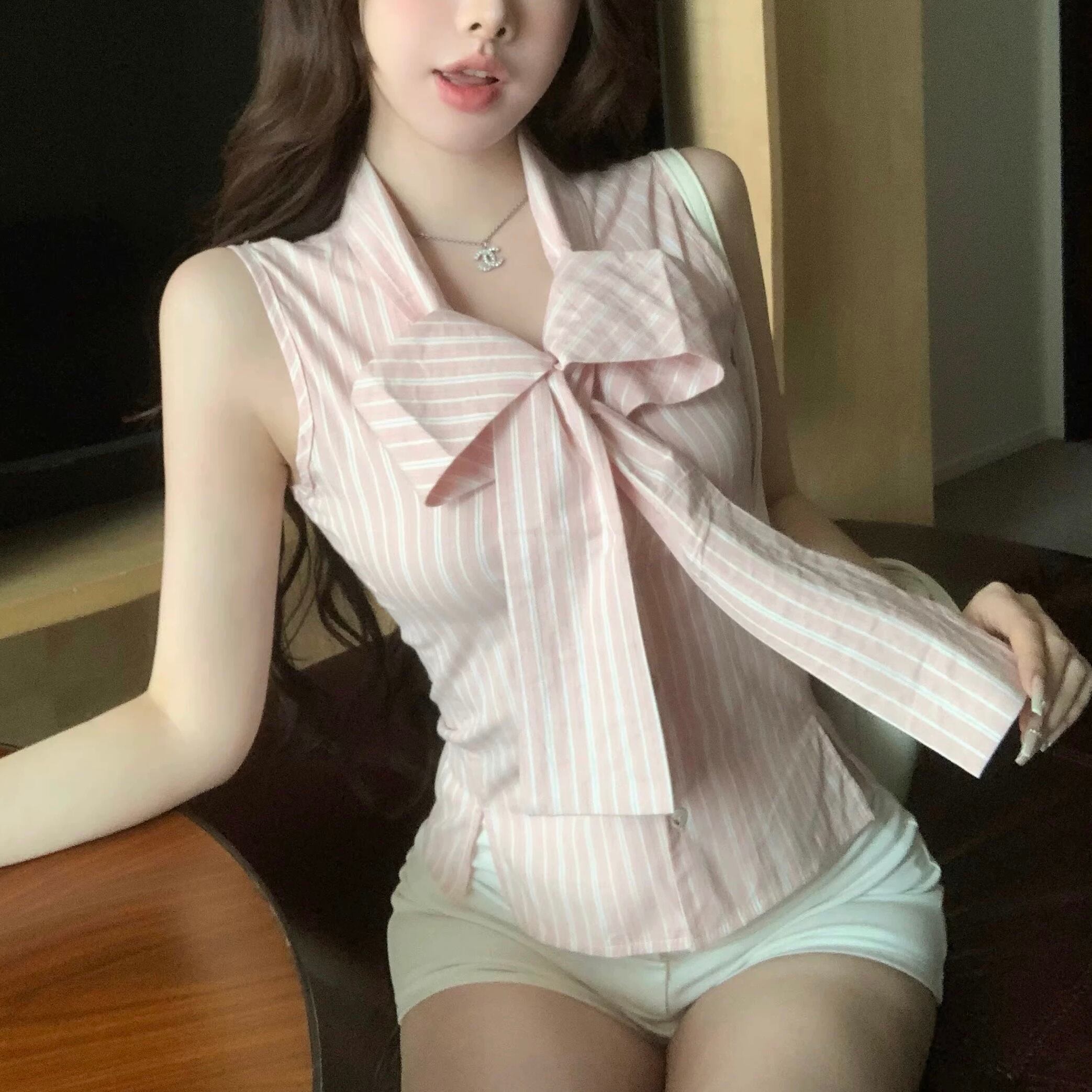 【tops】2種ノースリーブシフォンブラウス HK0369