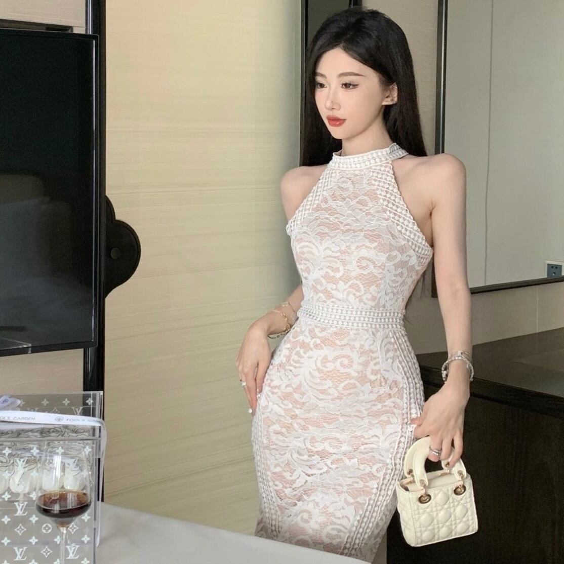 【dress】ホルターネックレースワンピース SR4006