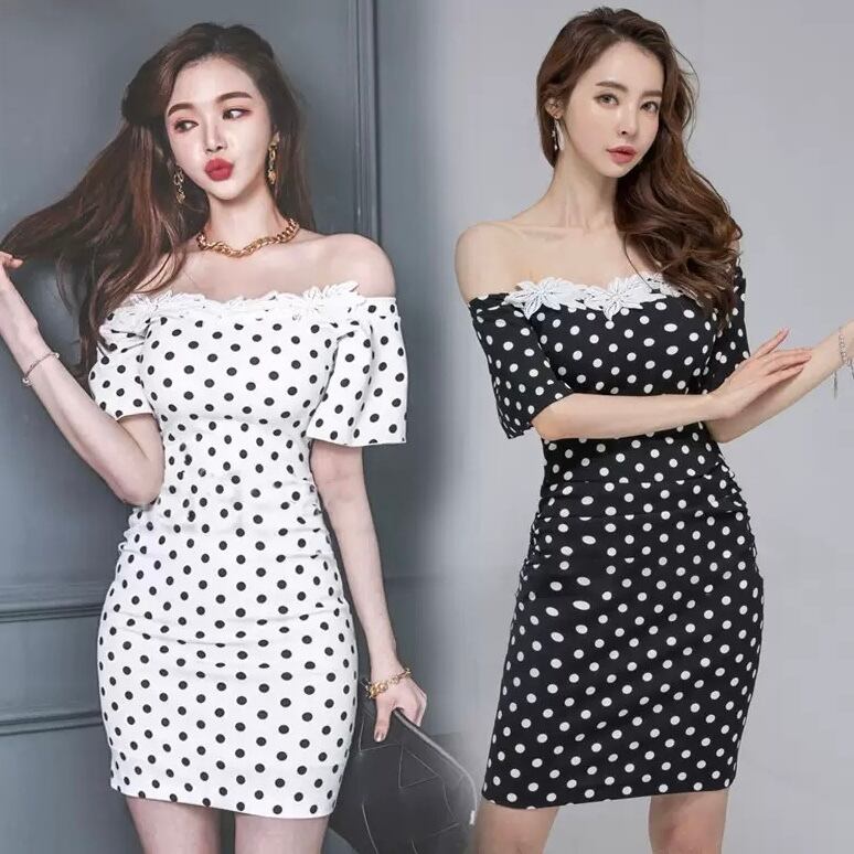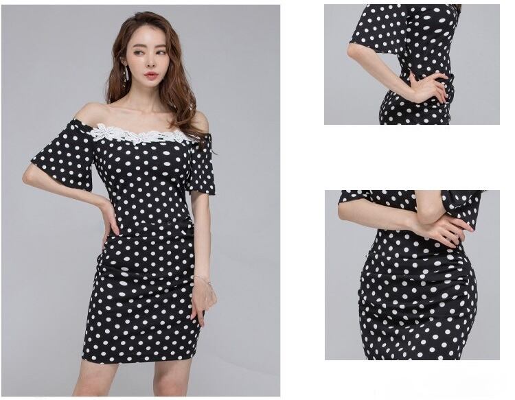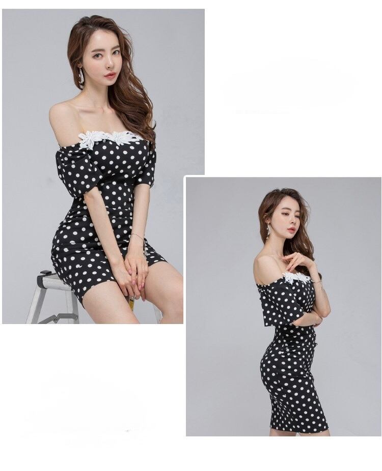 【dress】2色ドット柄オフショルダーワンピース RH4071