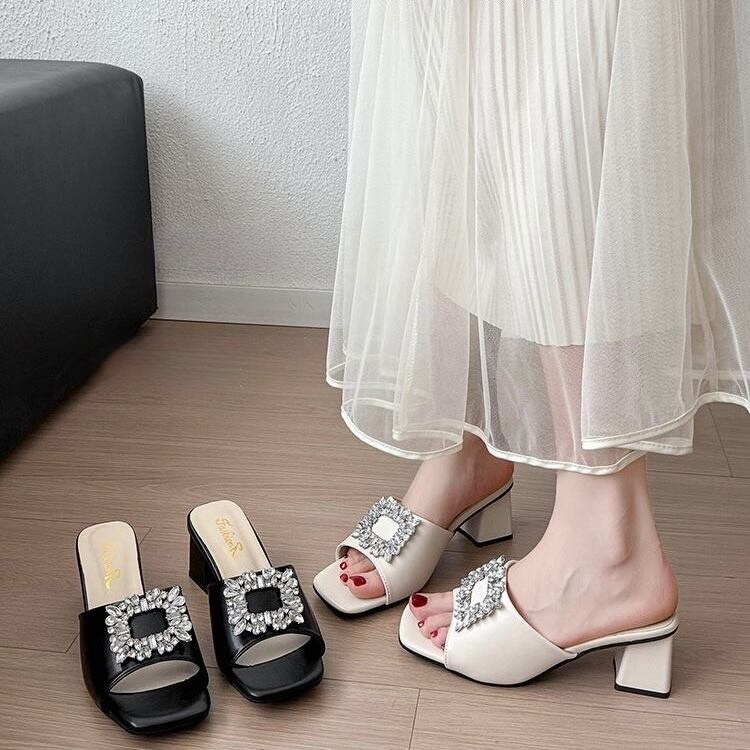 【shoes】2色ビジュー付きヒールサンダル RH3104