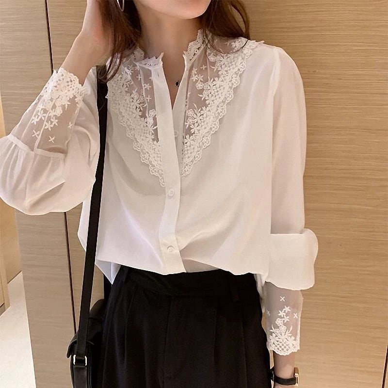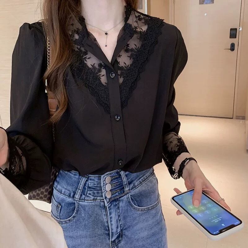 【tops】2色レースドッキングシャツ RH4111