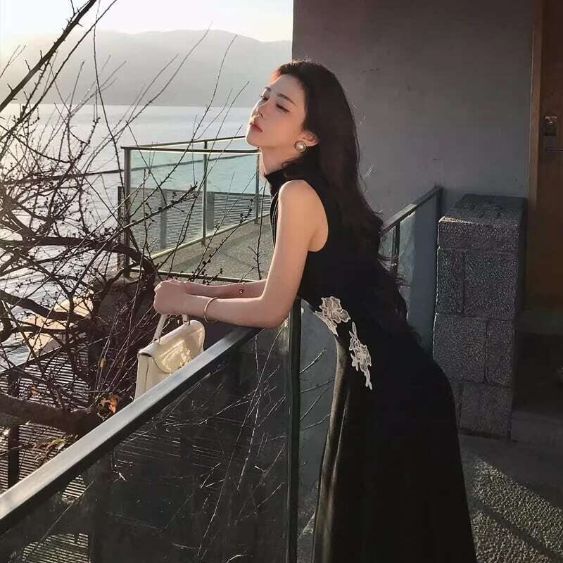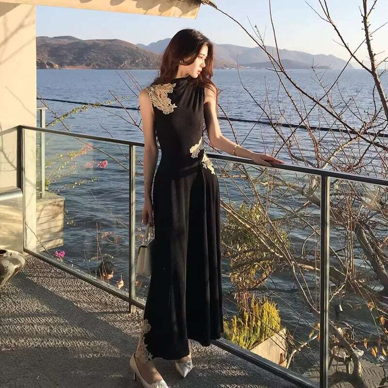【dress】レースドッキングノースリーブニットワンピース HK0383