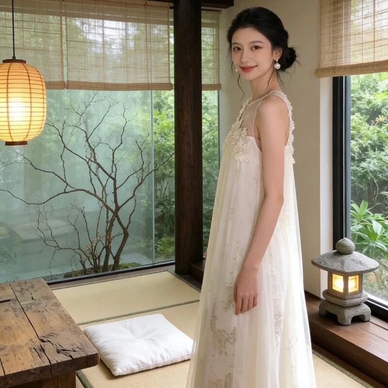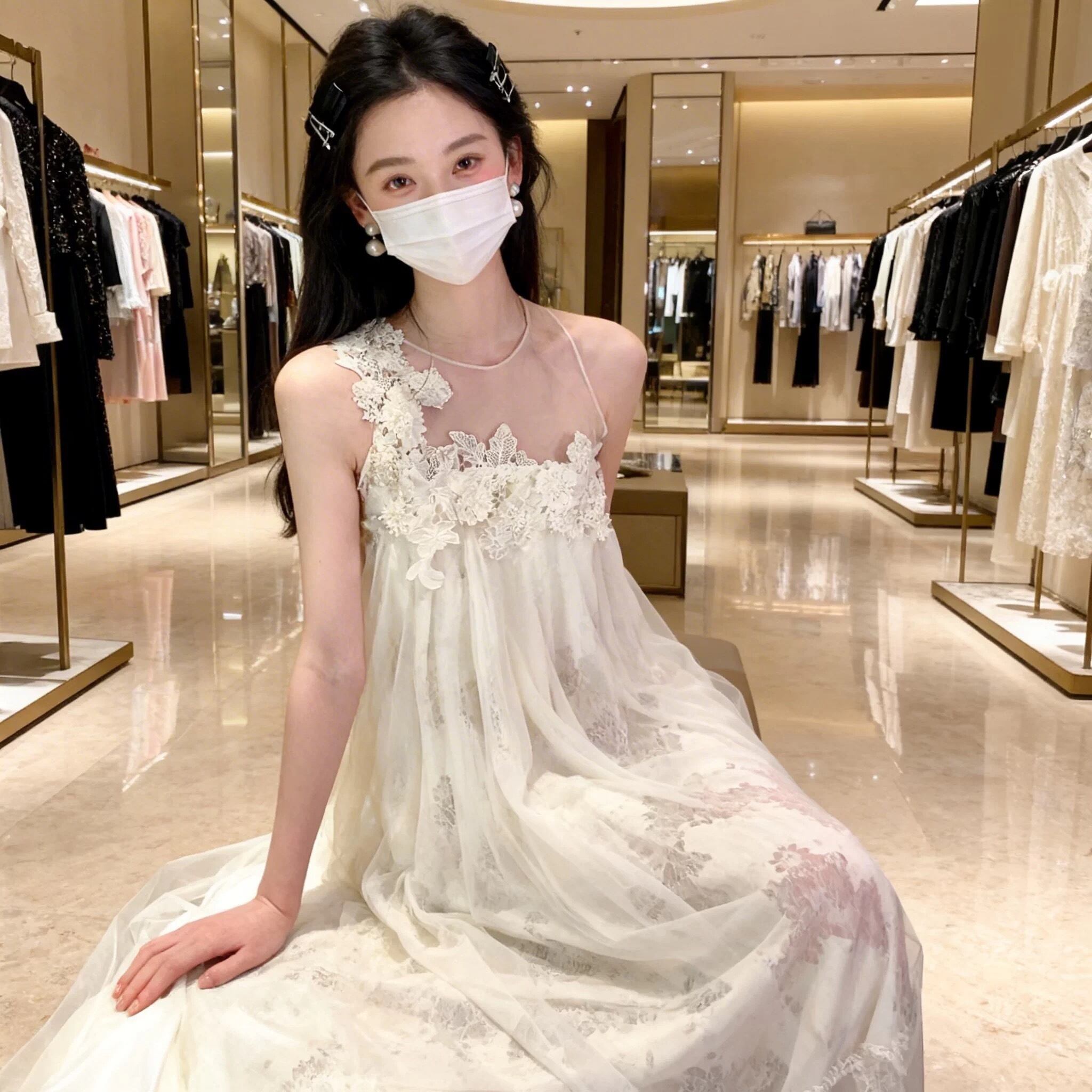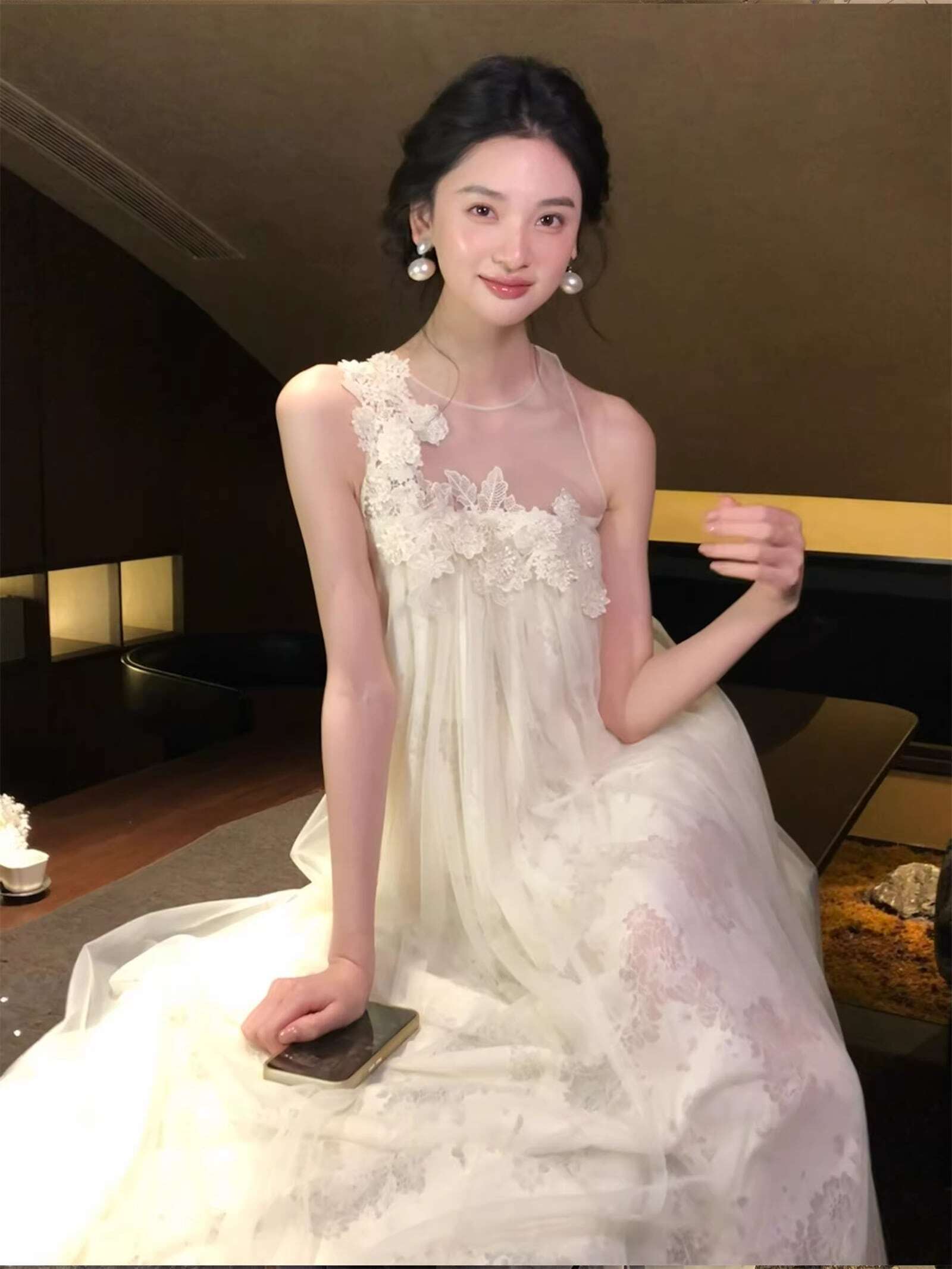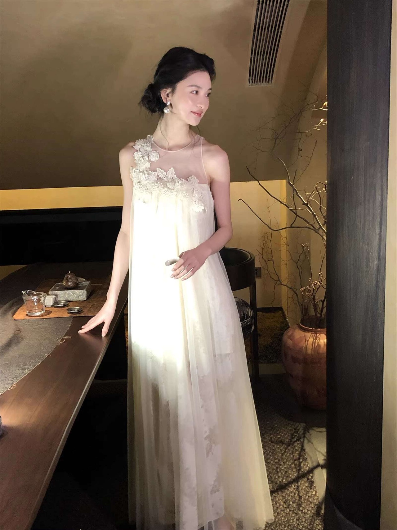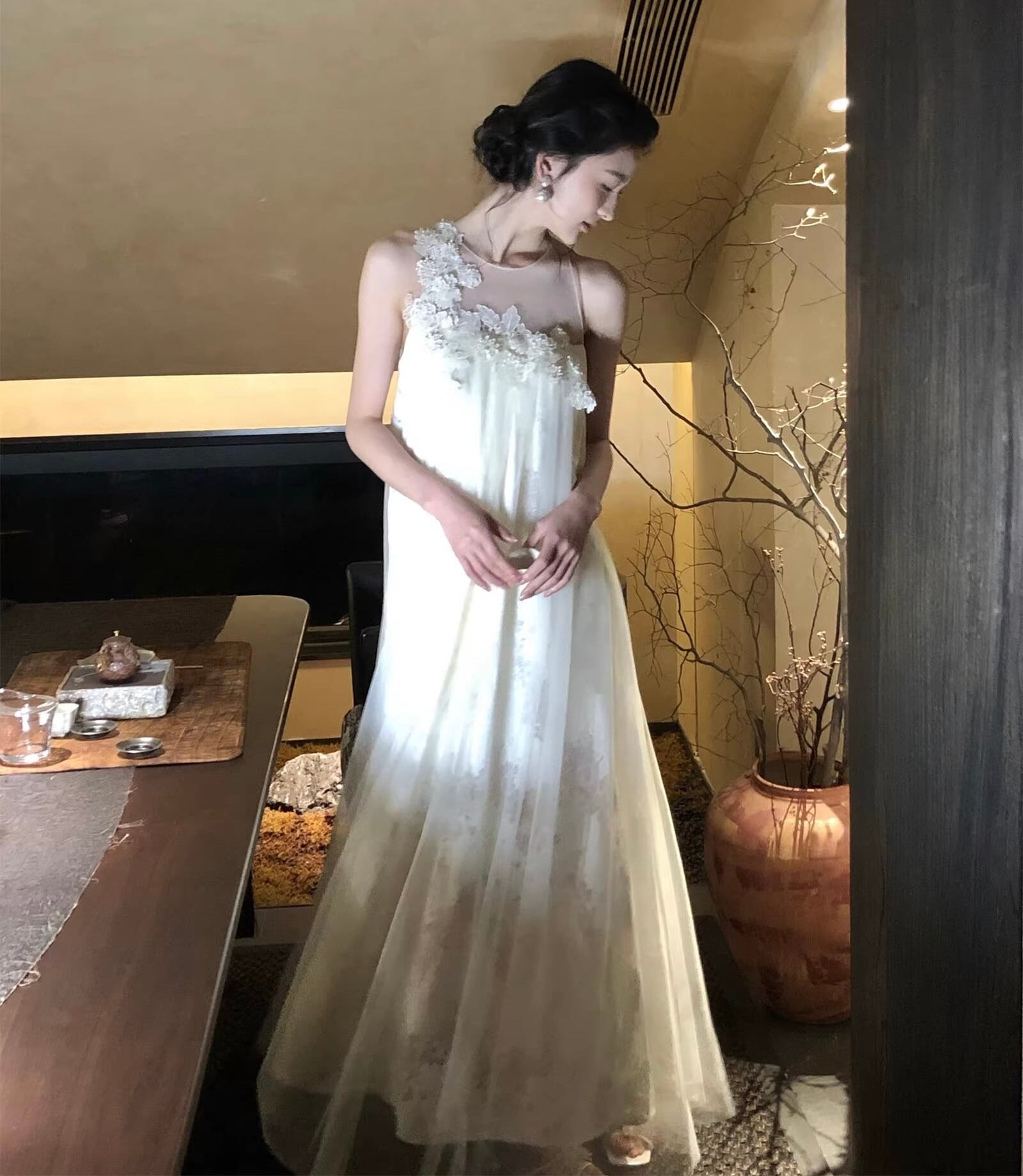 【dress】フラワーノースリーブチュールワンピース HK0384