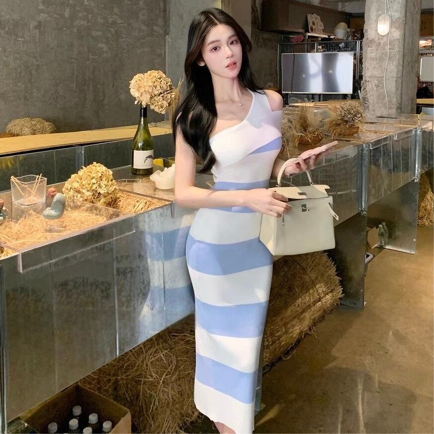 【dress】2色ワンショルダー配色ニットワンピース RH4191