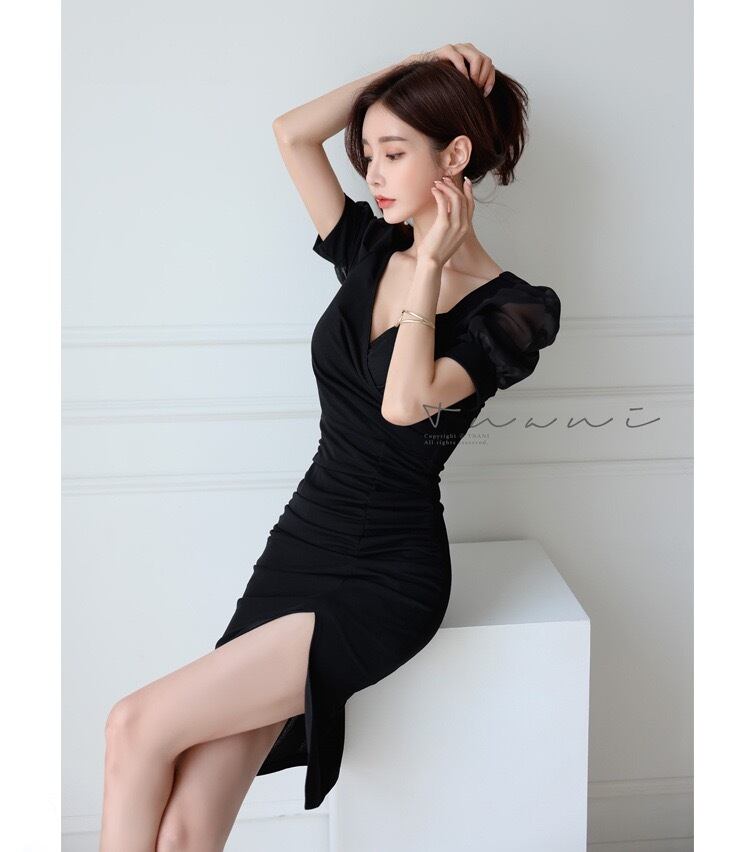 【dress】パフスリーブスリット入りワンピース RH4214