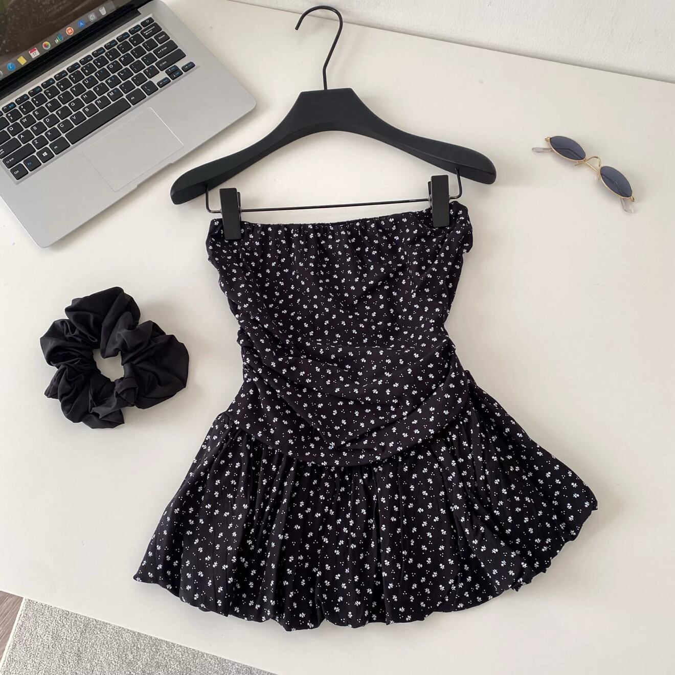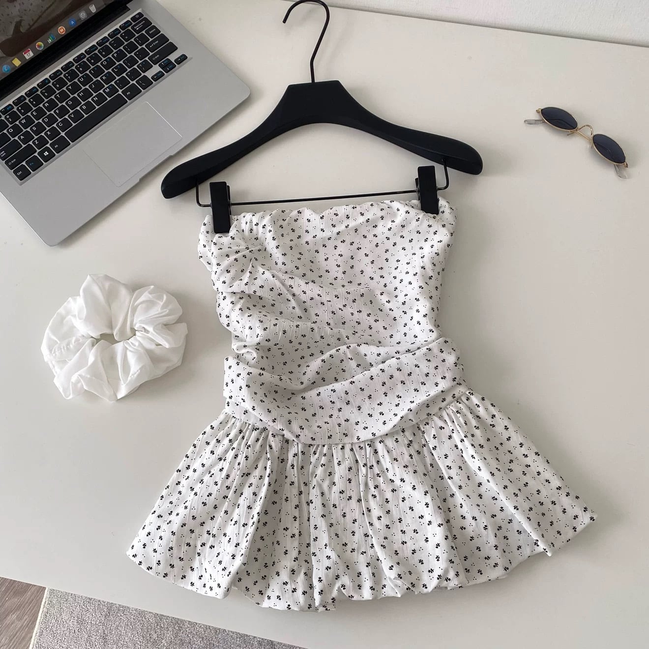 【tops】3色シュシュ付きフラワー柄ベアトップス RW4220