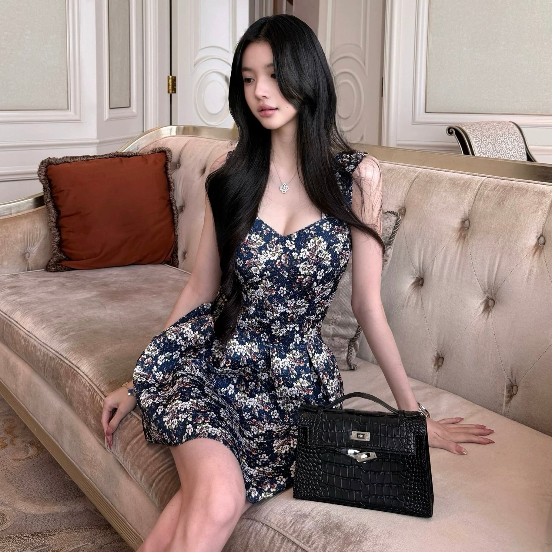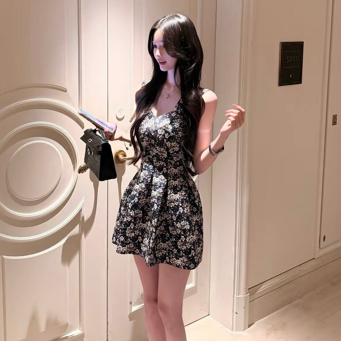 【dress】小花柄ウエストシェイプキャミソールワンピース HK0394