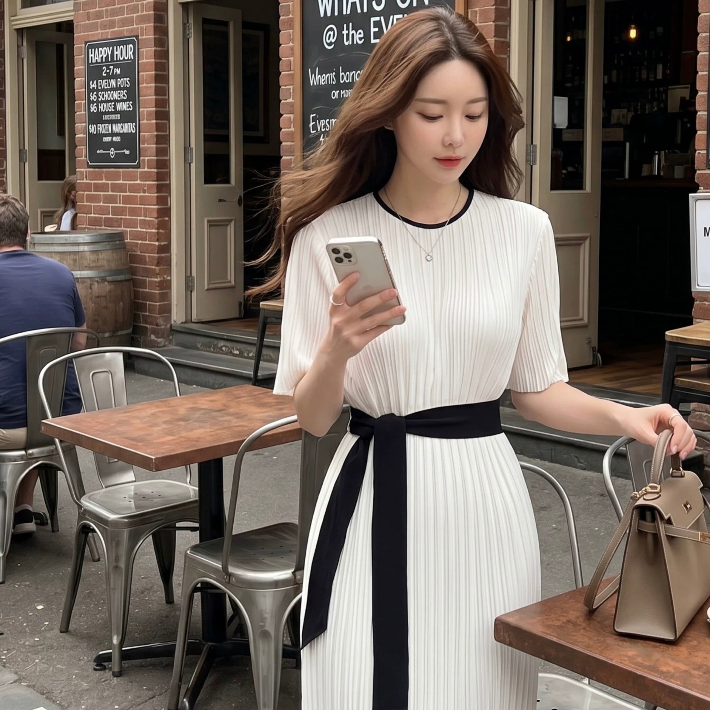【dress】プリーツモノトーンワンピース HK0396