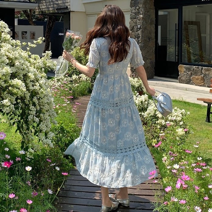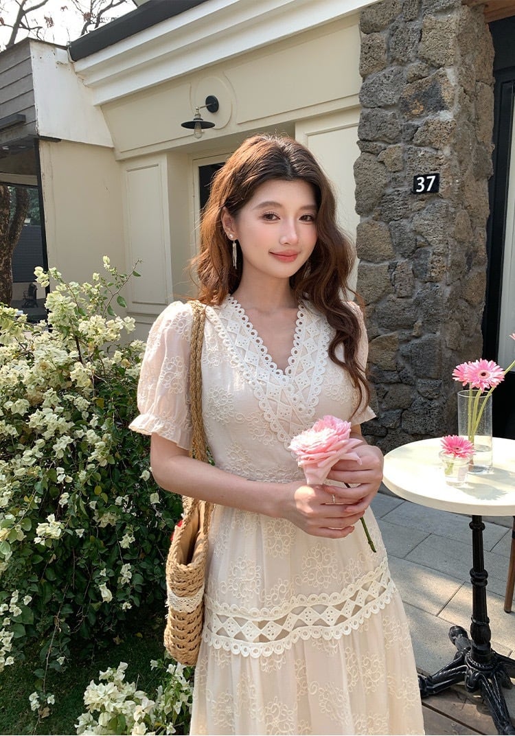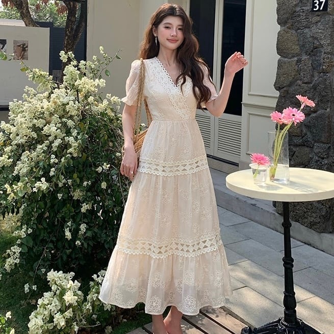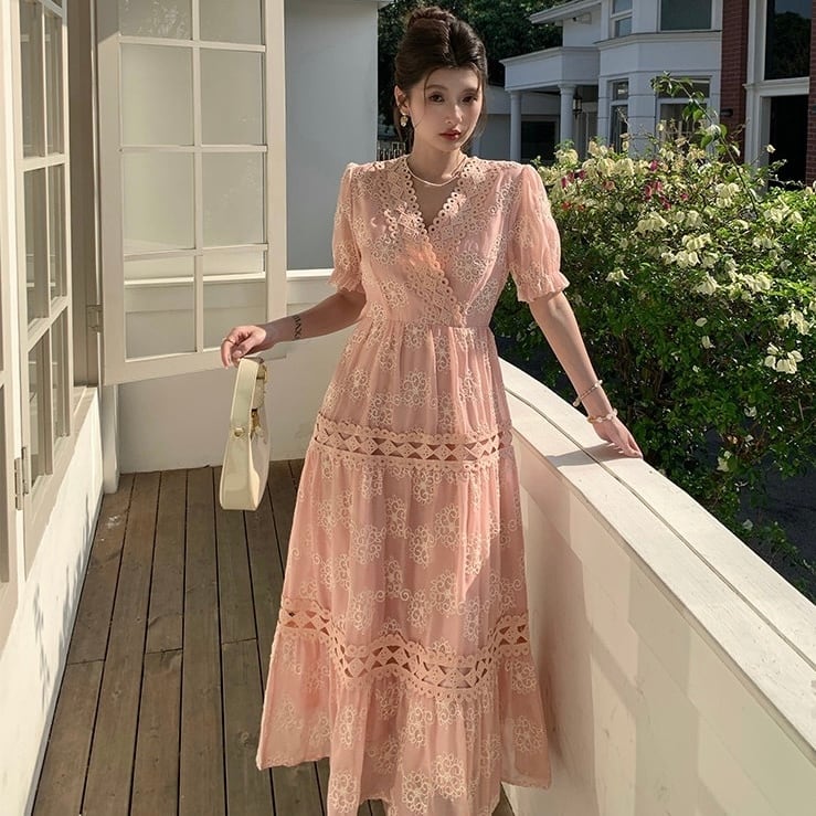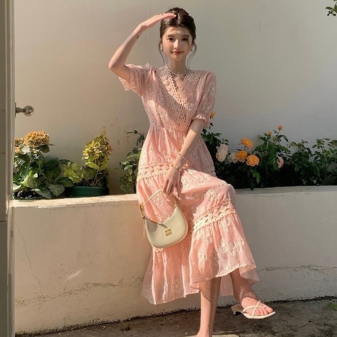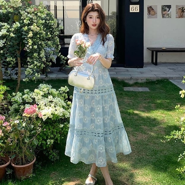 【dress】3色Vネック刺繍ワンピース RH4241