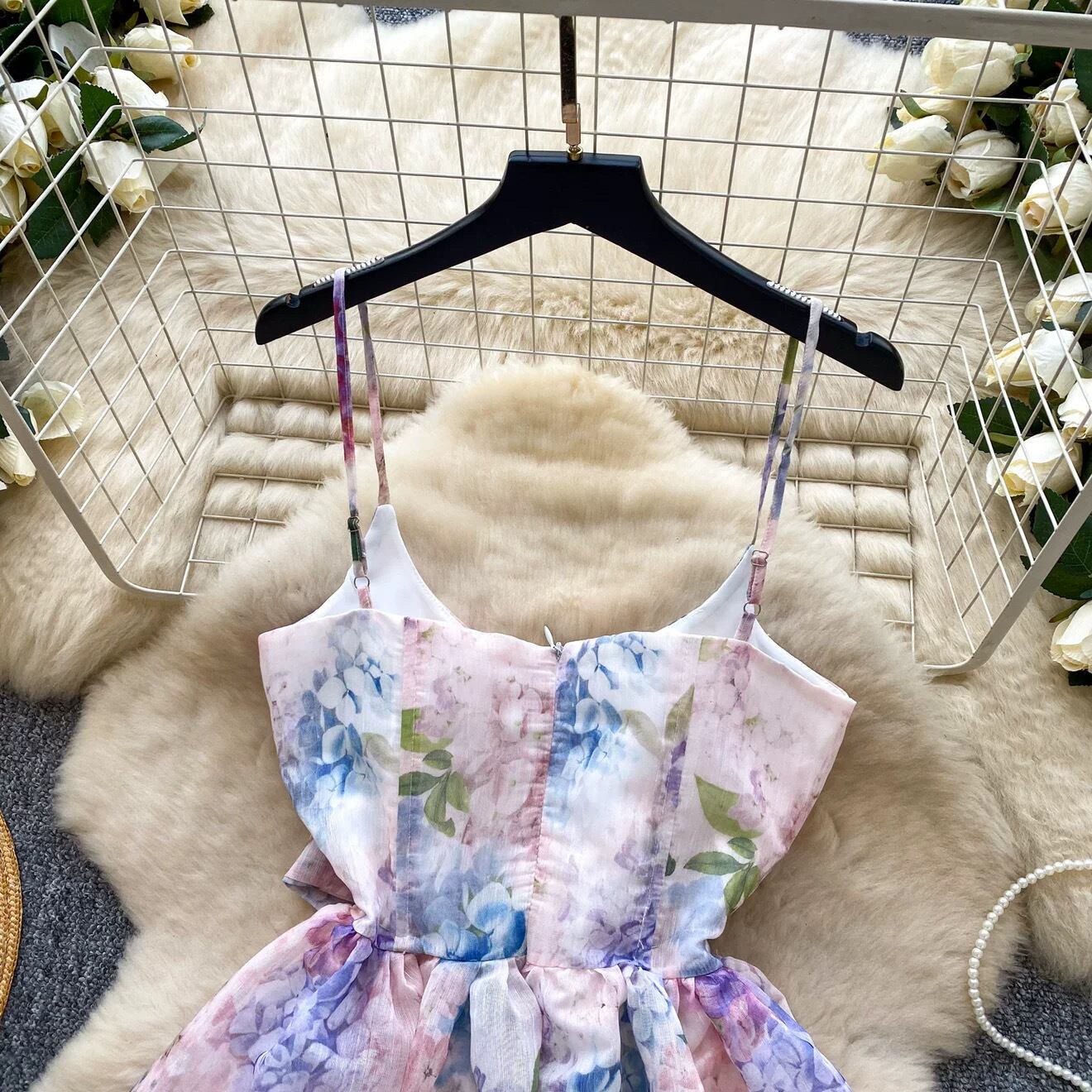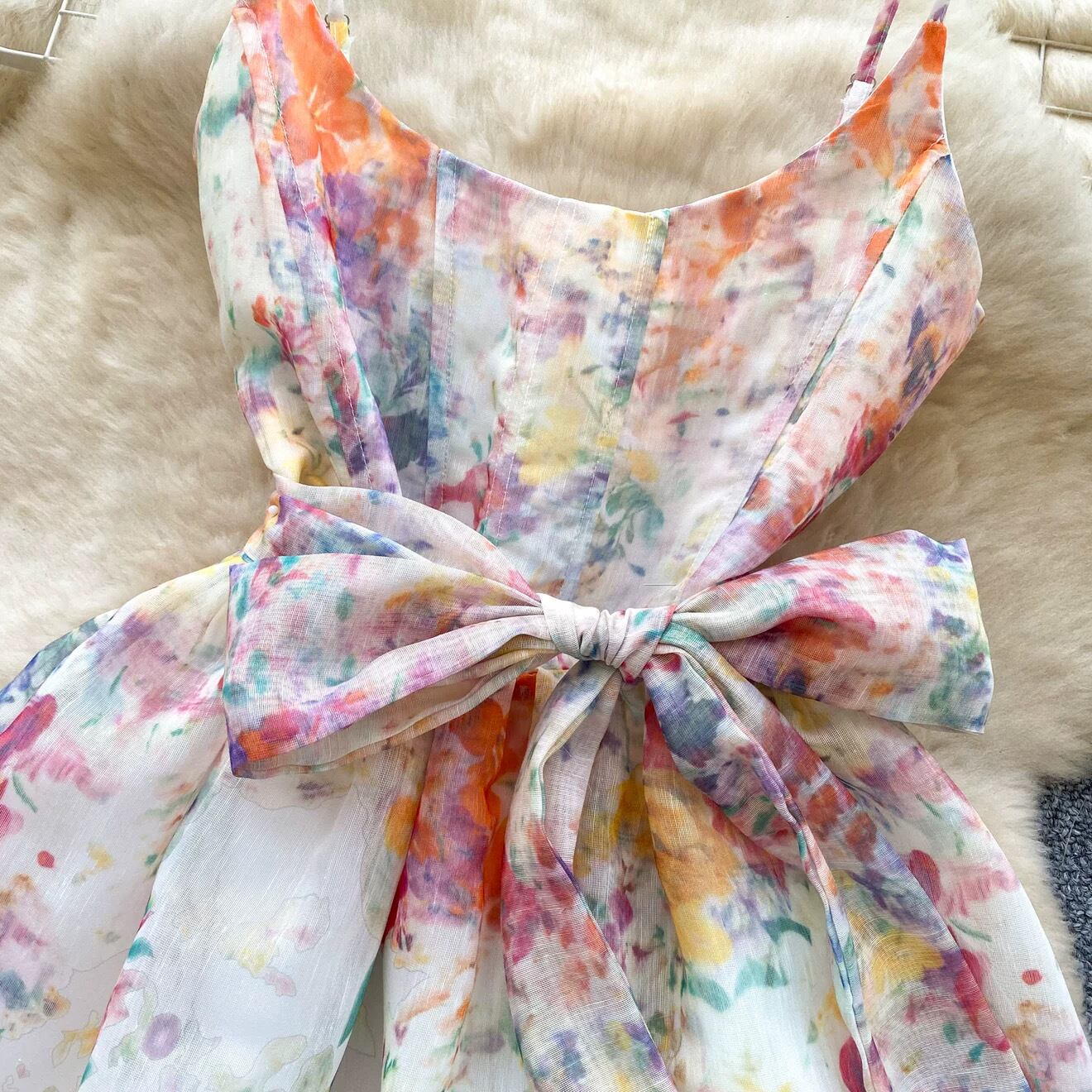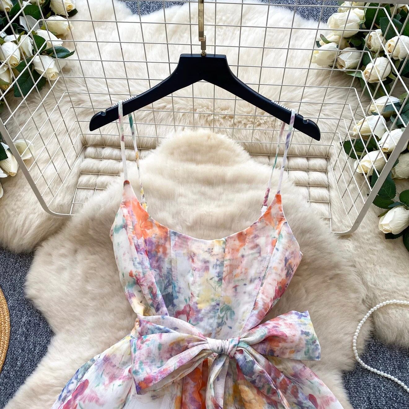 【dress】2色リボンベルトフラワー柄キャミワンピース RH4273