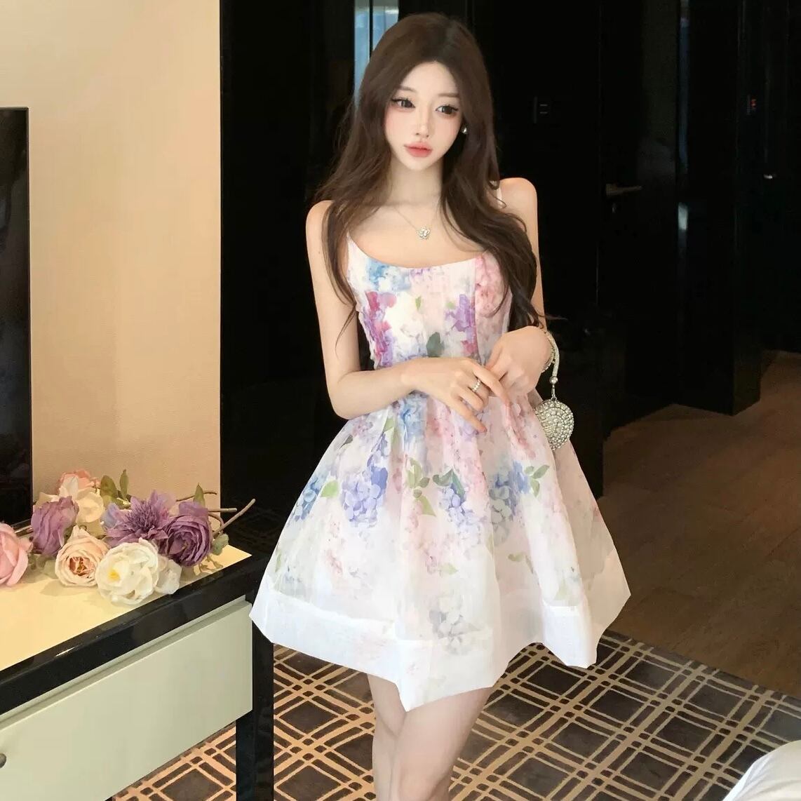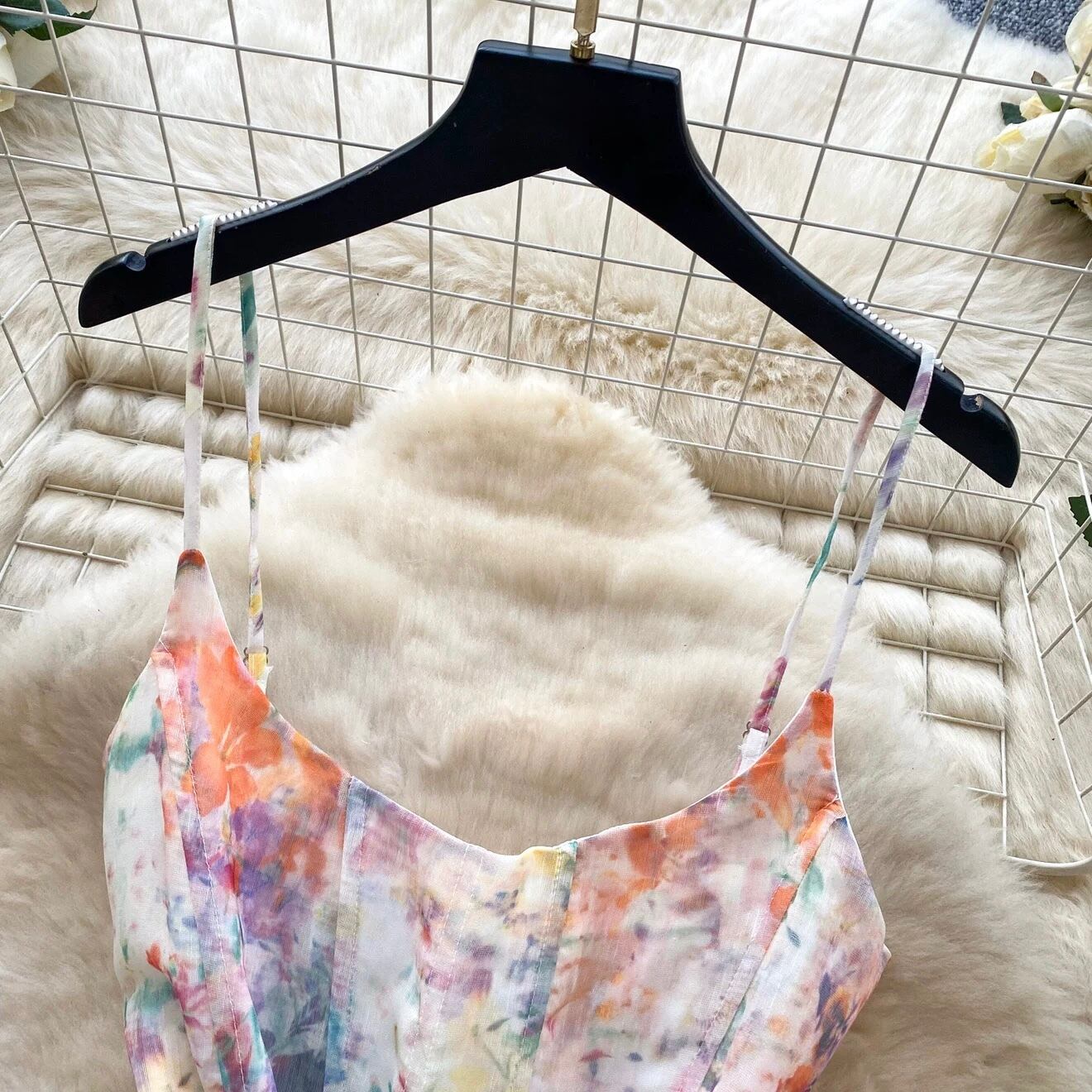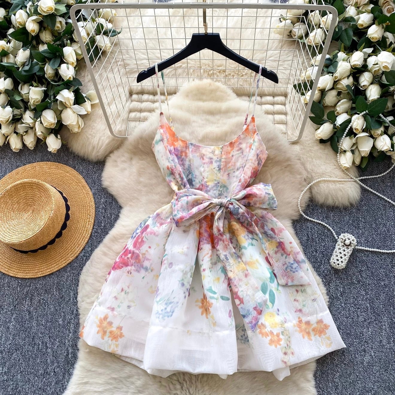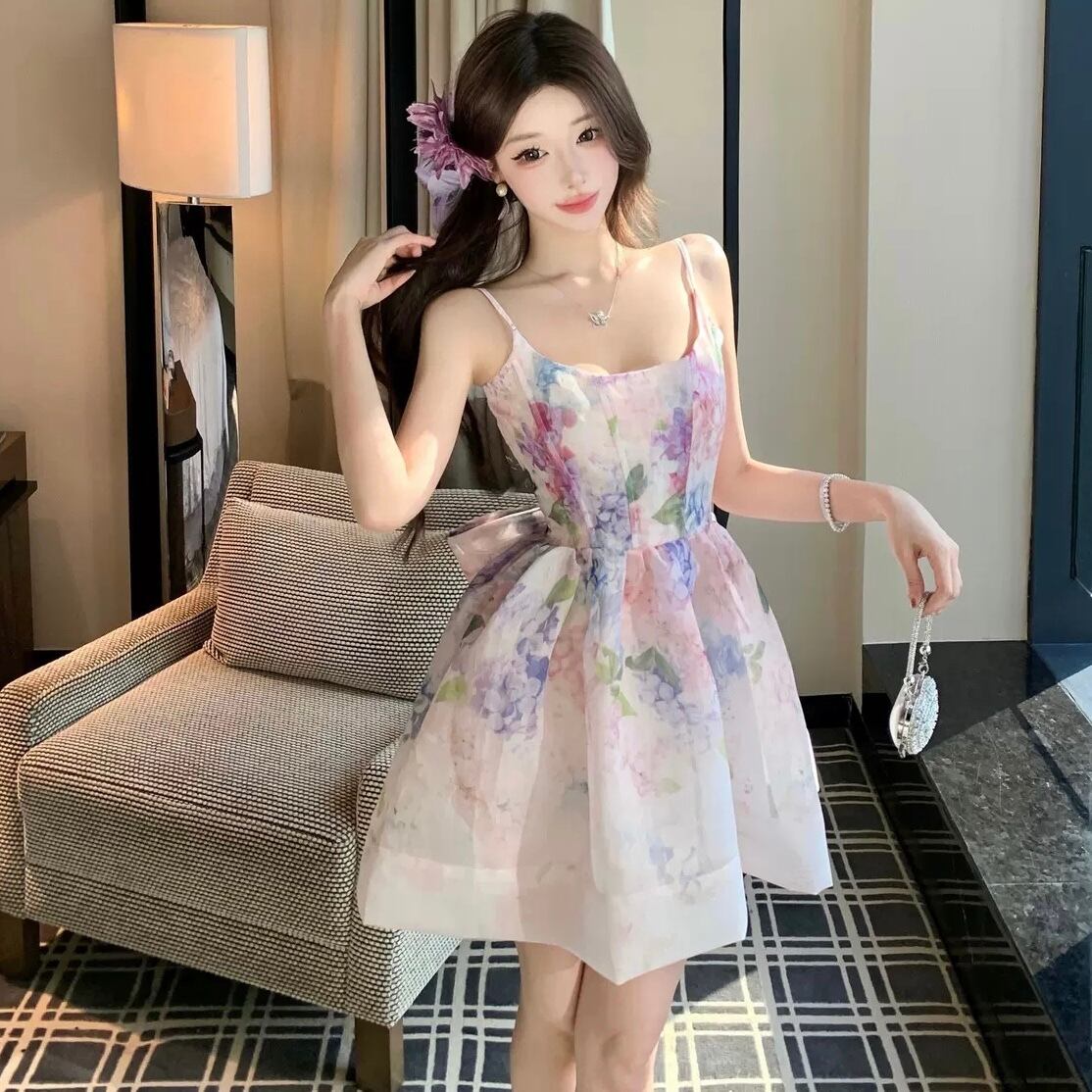 【dress】2色リボンベルトフラワー柄キャミワンピース RH4273