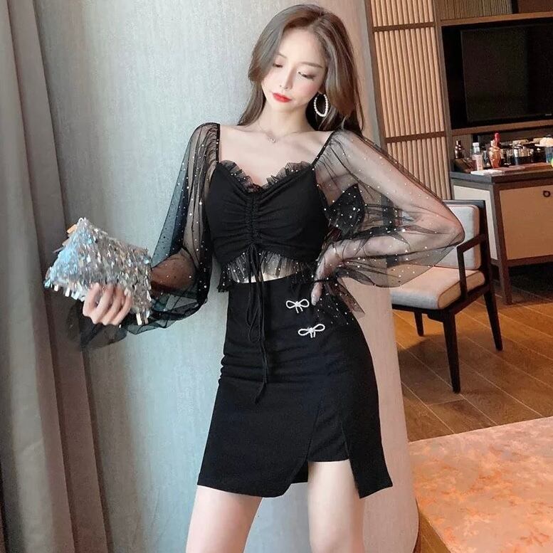 【dress】チュールドッキングスリット入りワンピース RH4280