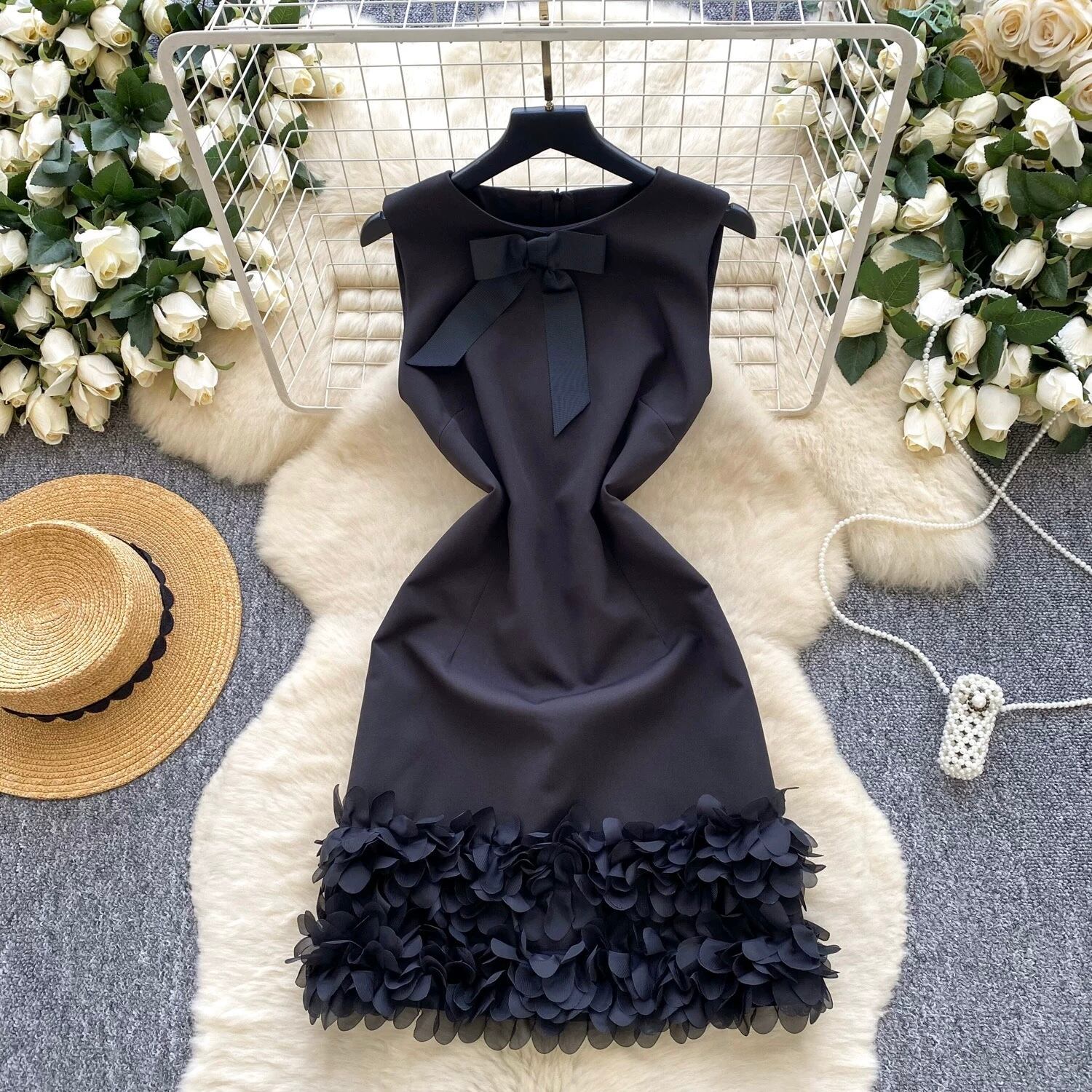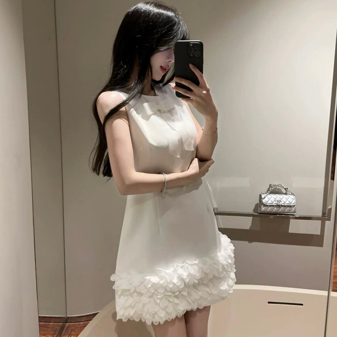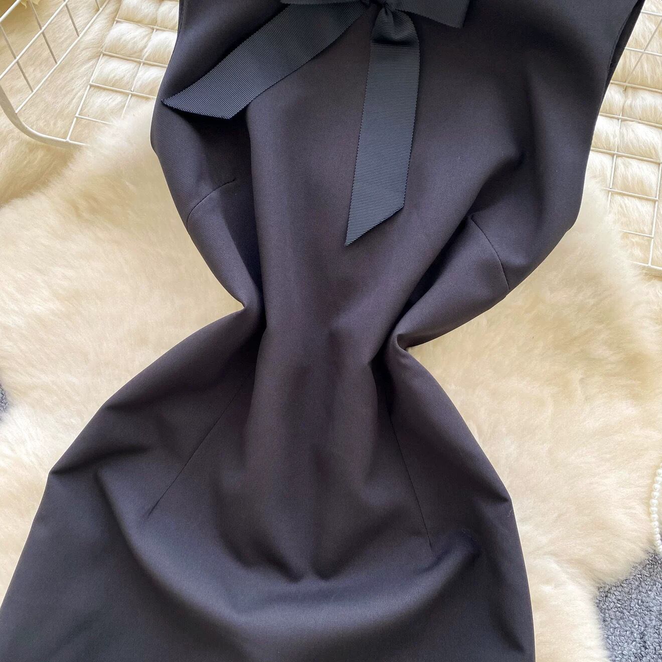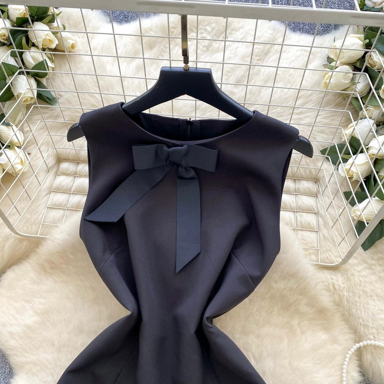 【dress】2色リボンラウンドネックノースリーブワンピース RH4284