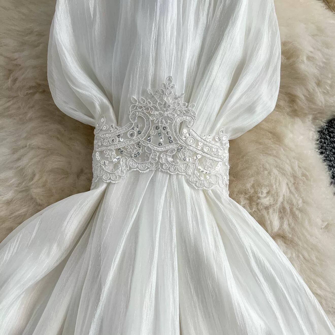 【dress】2色ホルターネックレースリボンベルトワンピース RH4285
