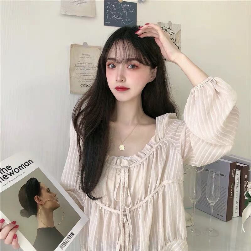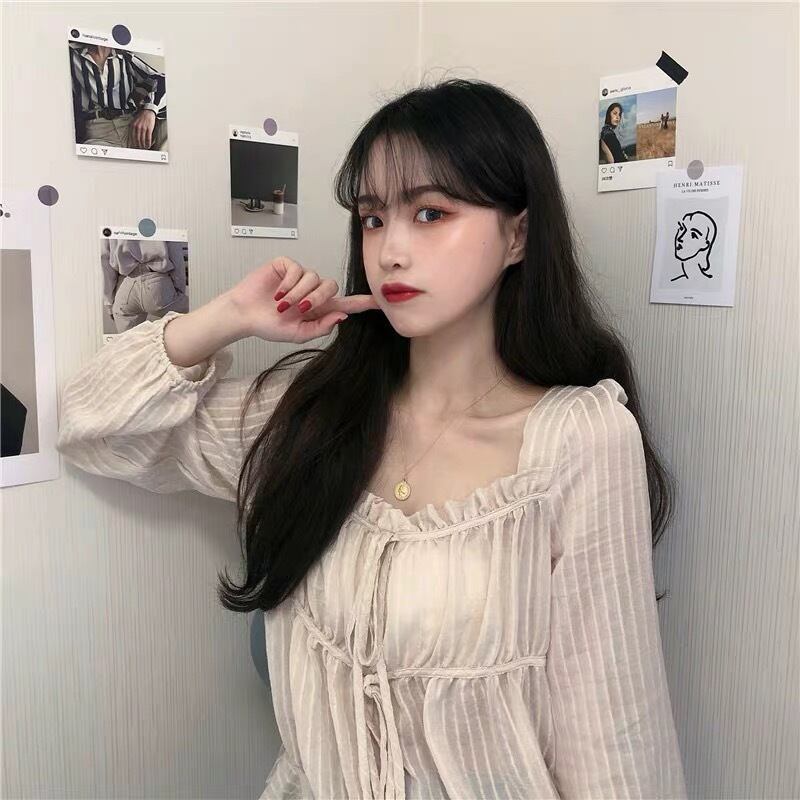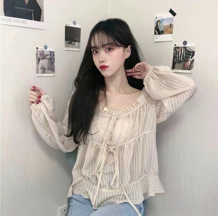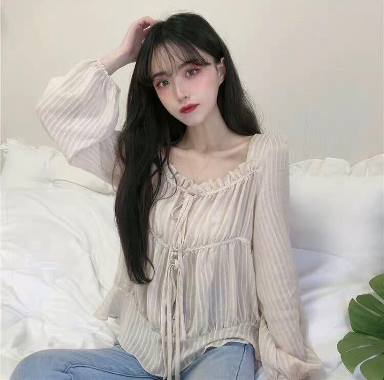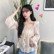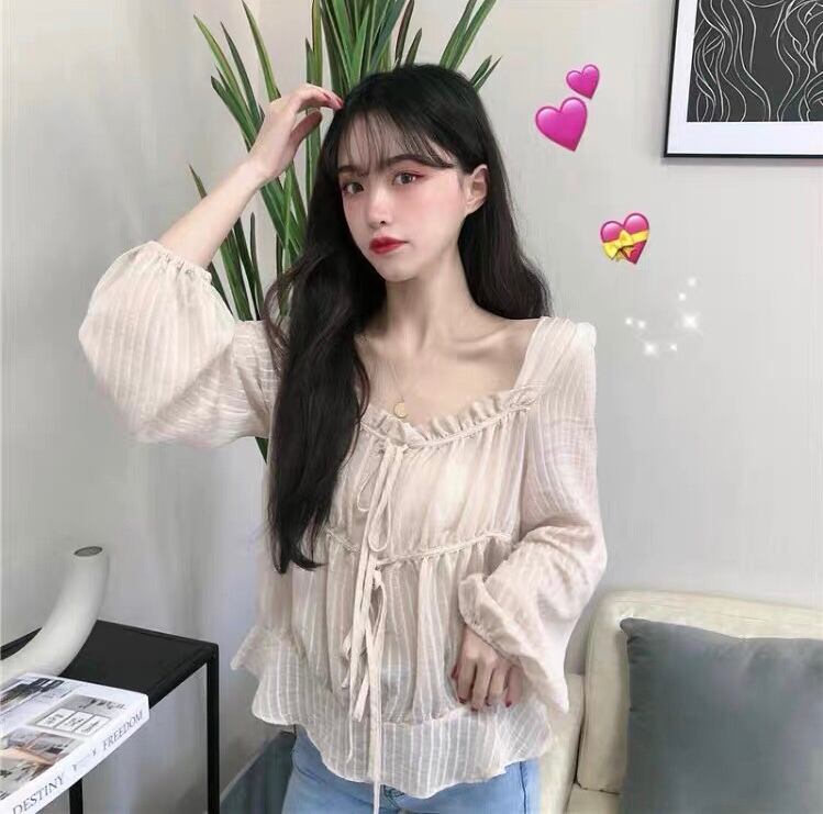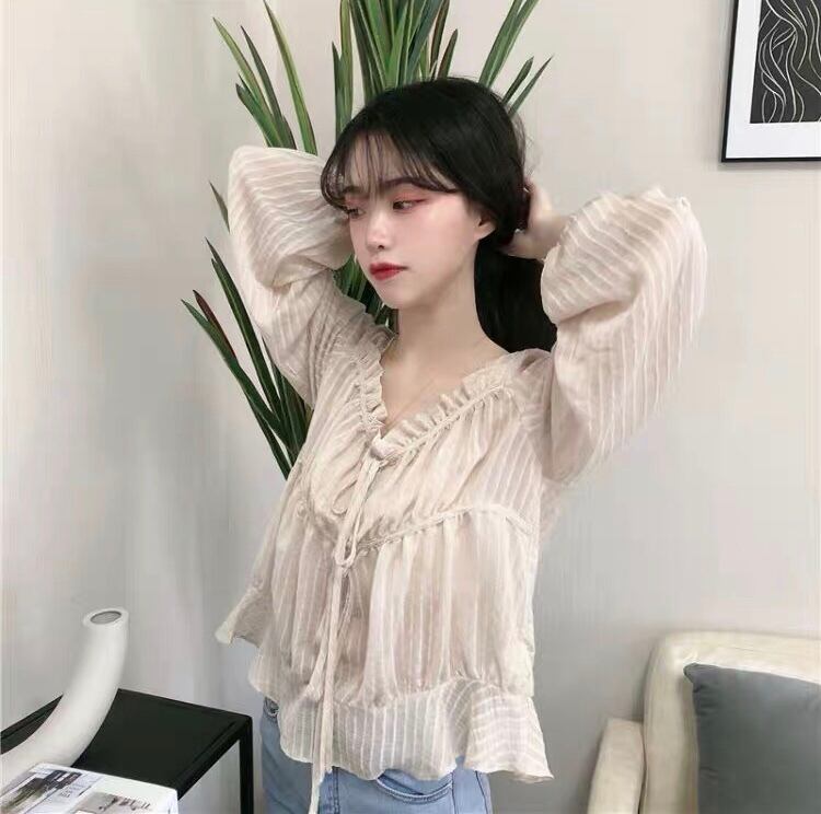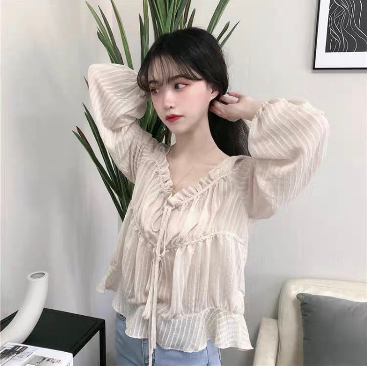 【tops】フリルリボンシアーブラウス