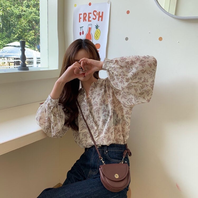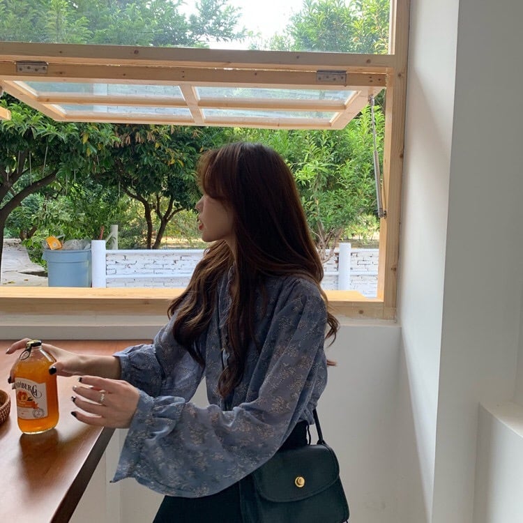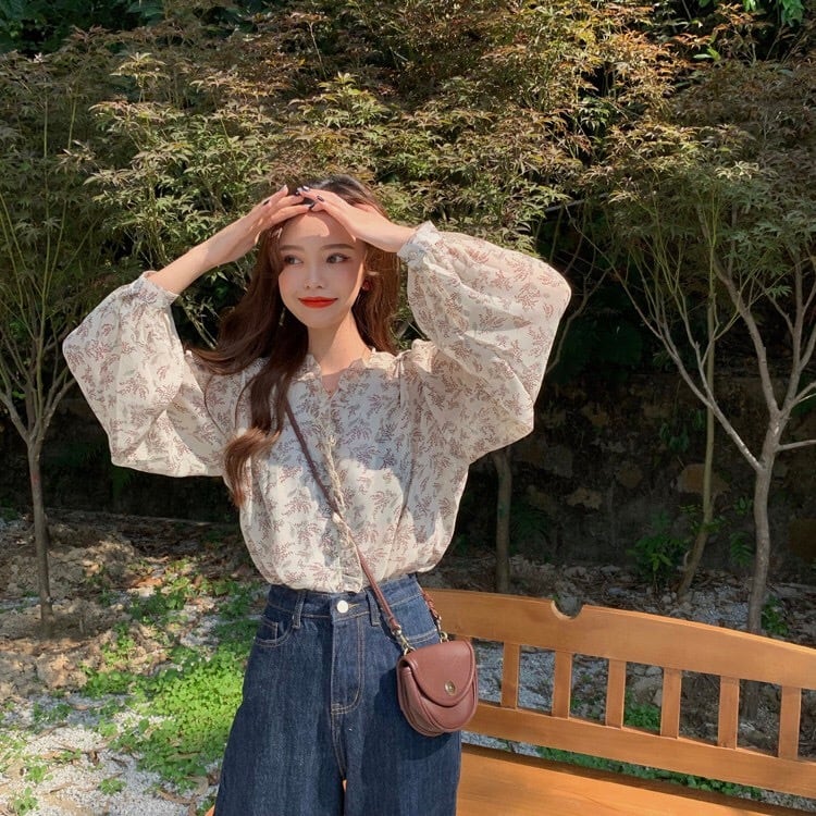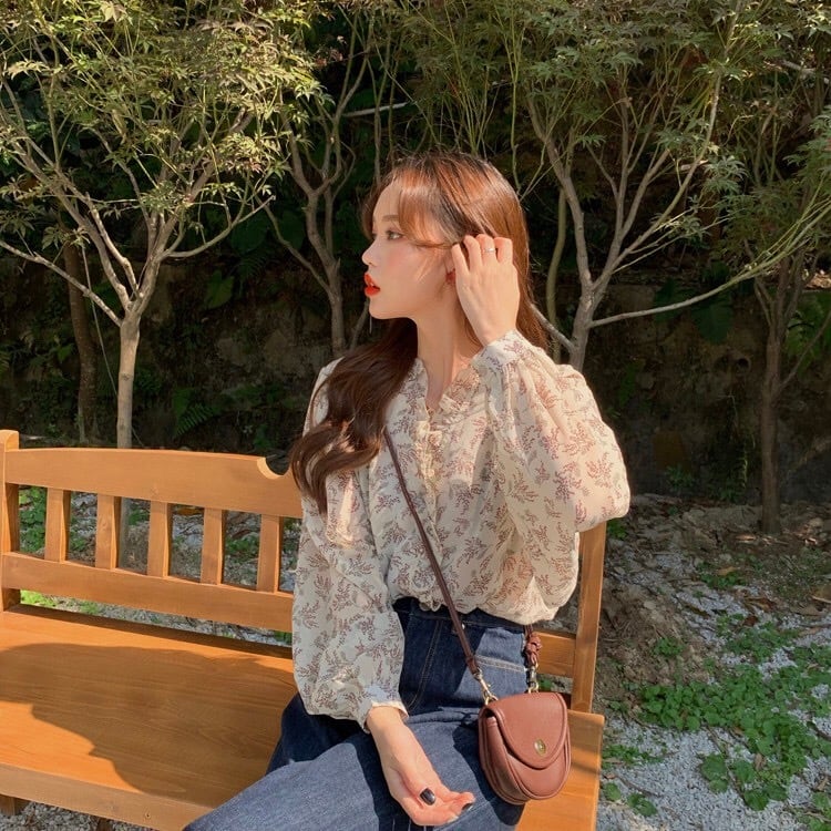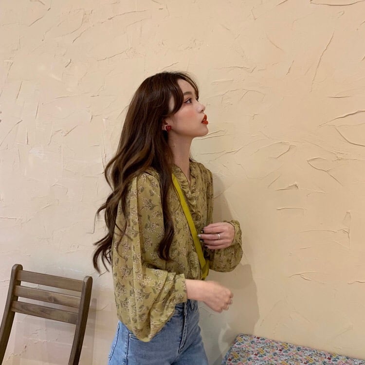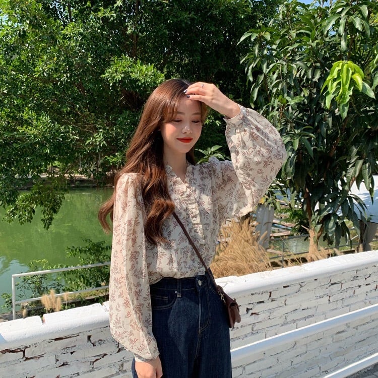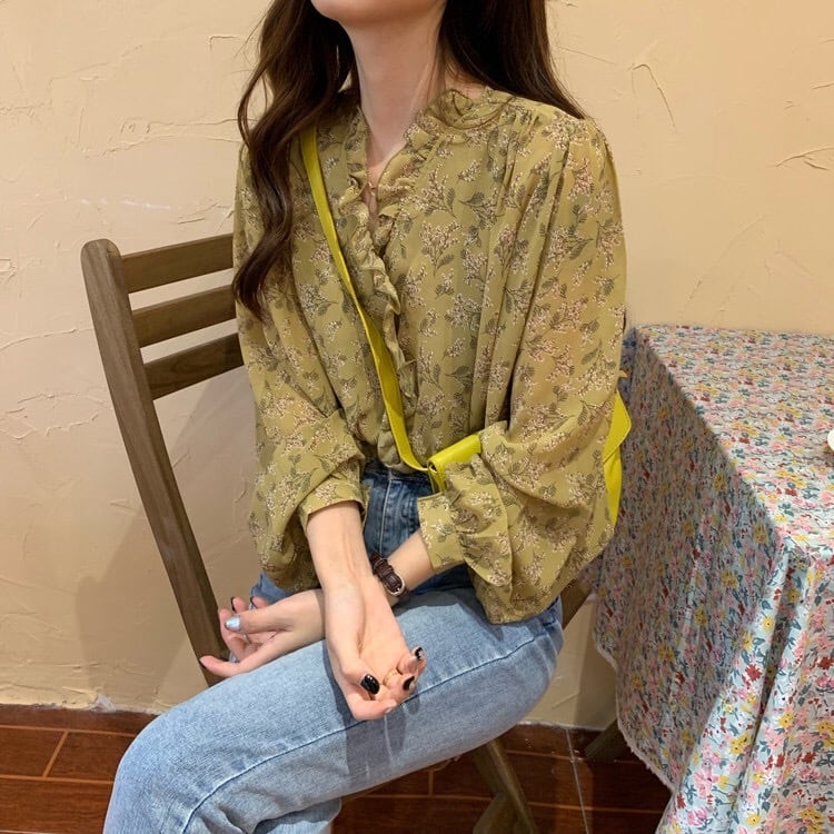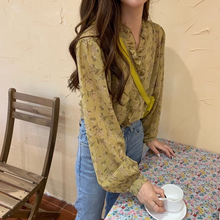 【tops】3色花柄フリルVネックブラウス TK3326