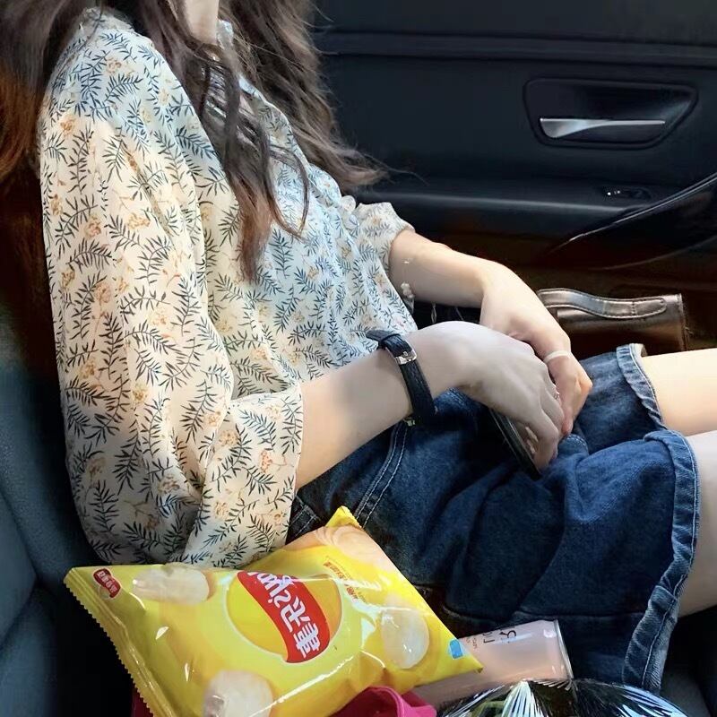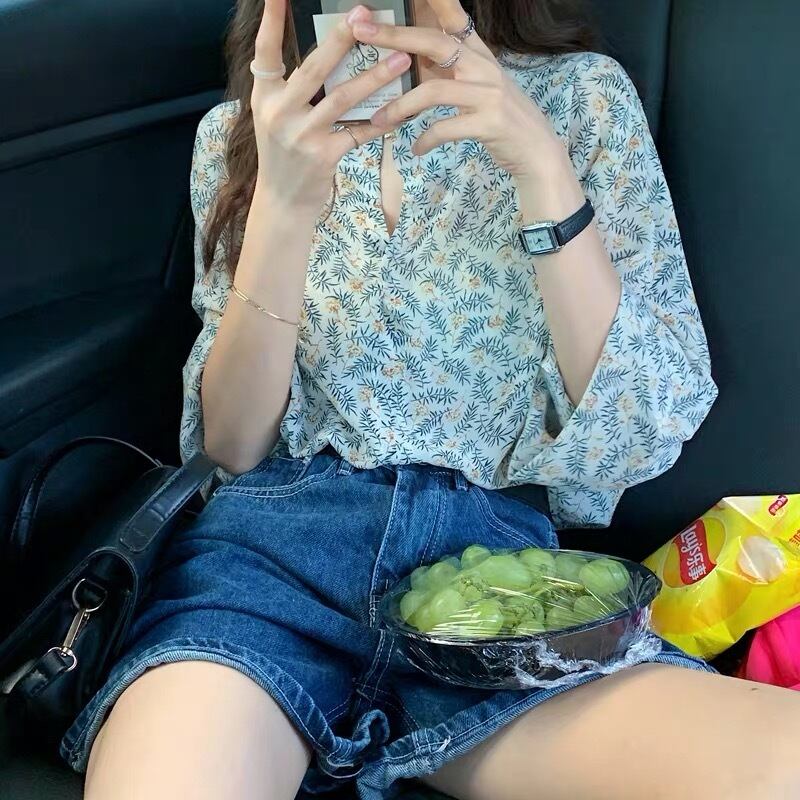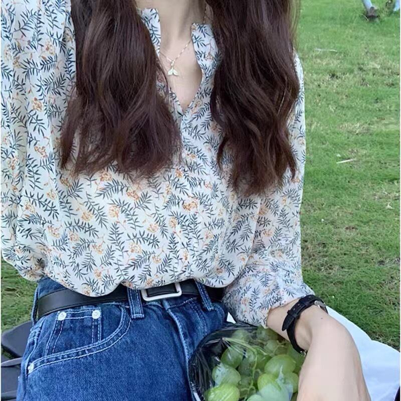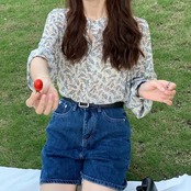 【tops】ミニリーフ柄シアーシャツ