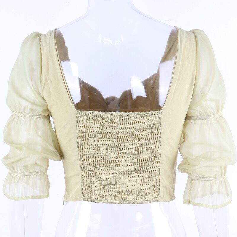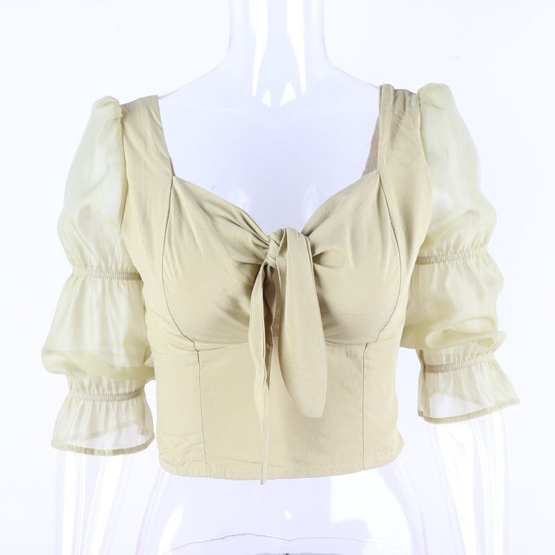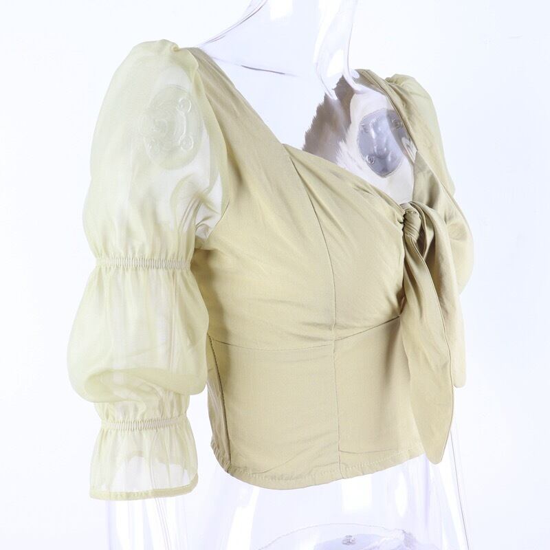 【tops】ねじりデザインレース切り替えトップス