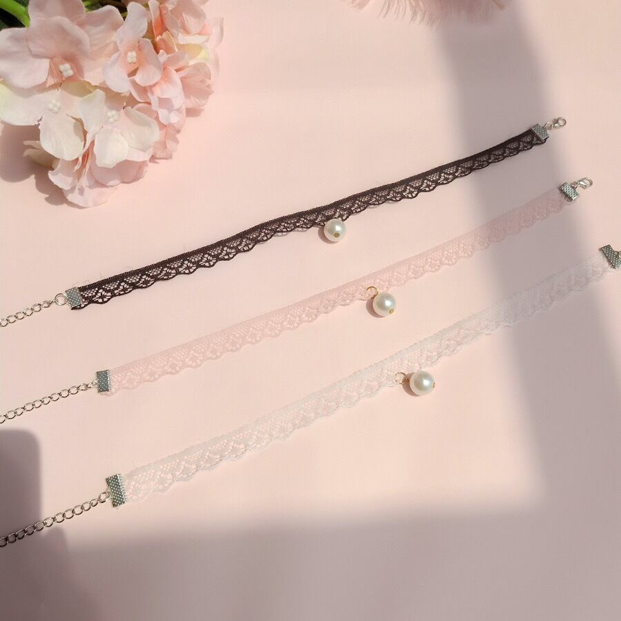 【雑貨】パールレースチョーカーネックレス