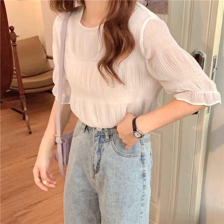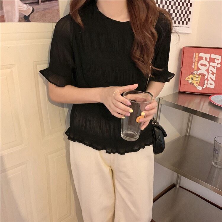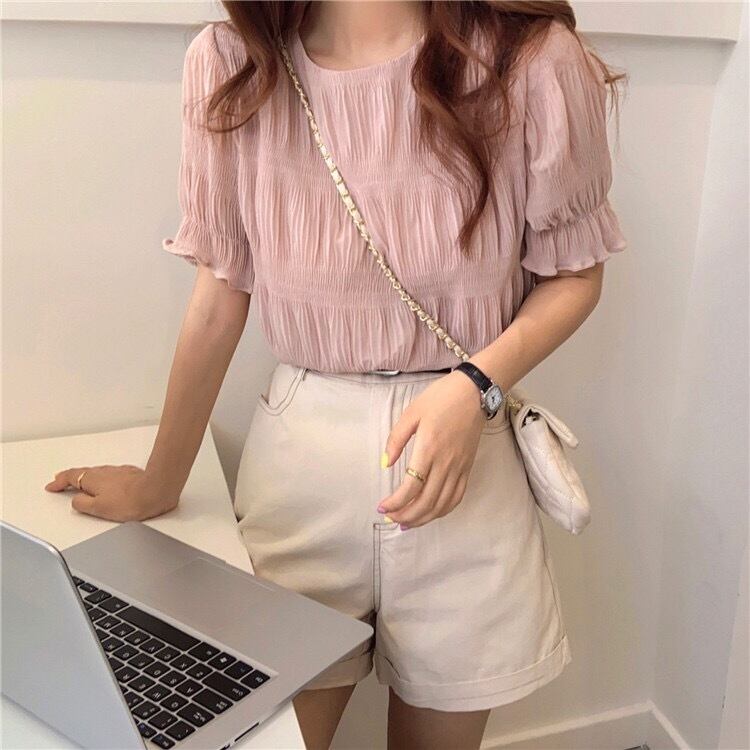清涼感のあるシアー素材にプリーツ加工を施し、シンプルながら存在感のある1着♡