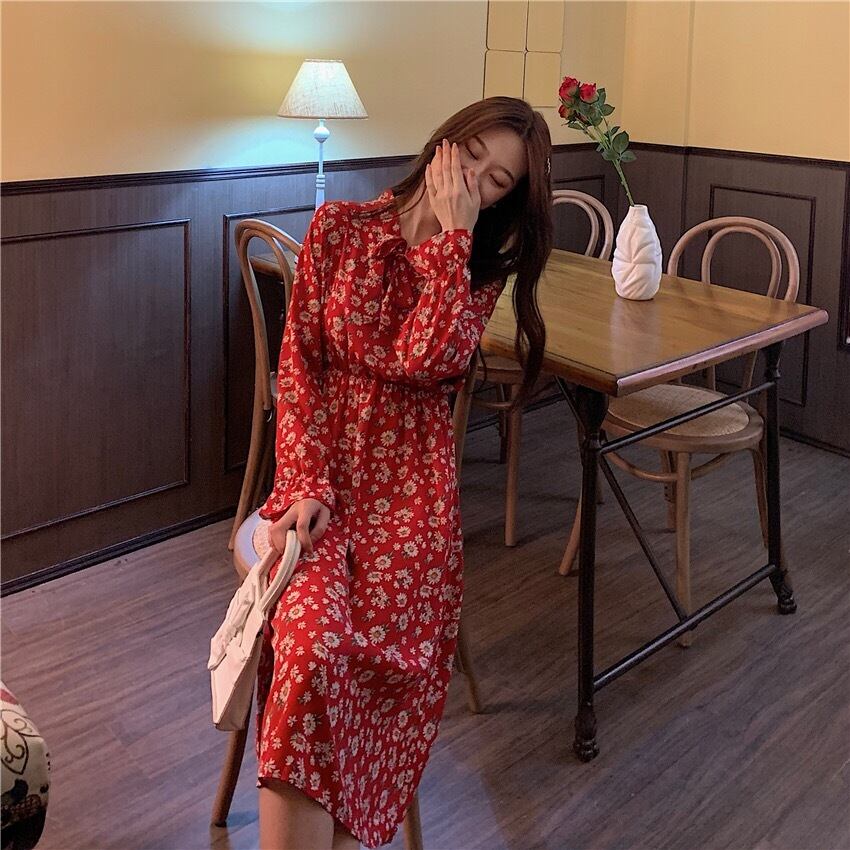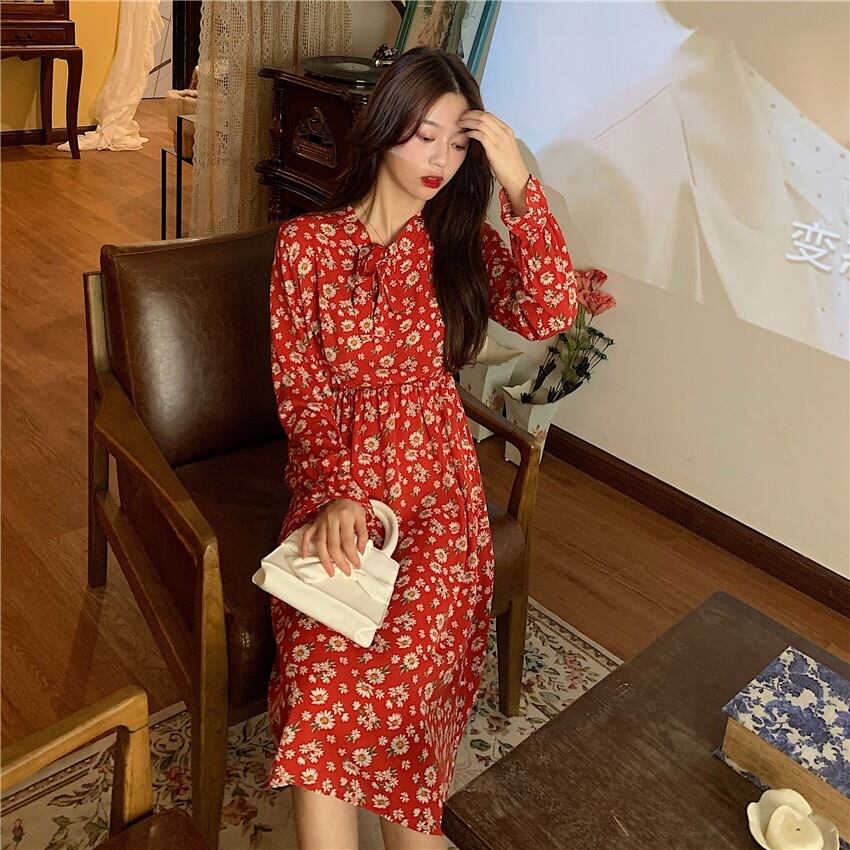 【dress】レトロ花柄ワンピース