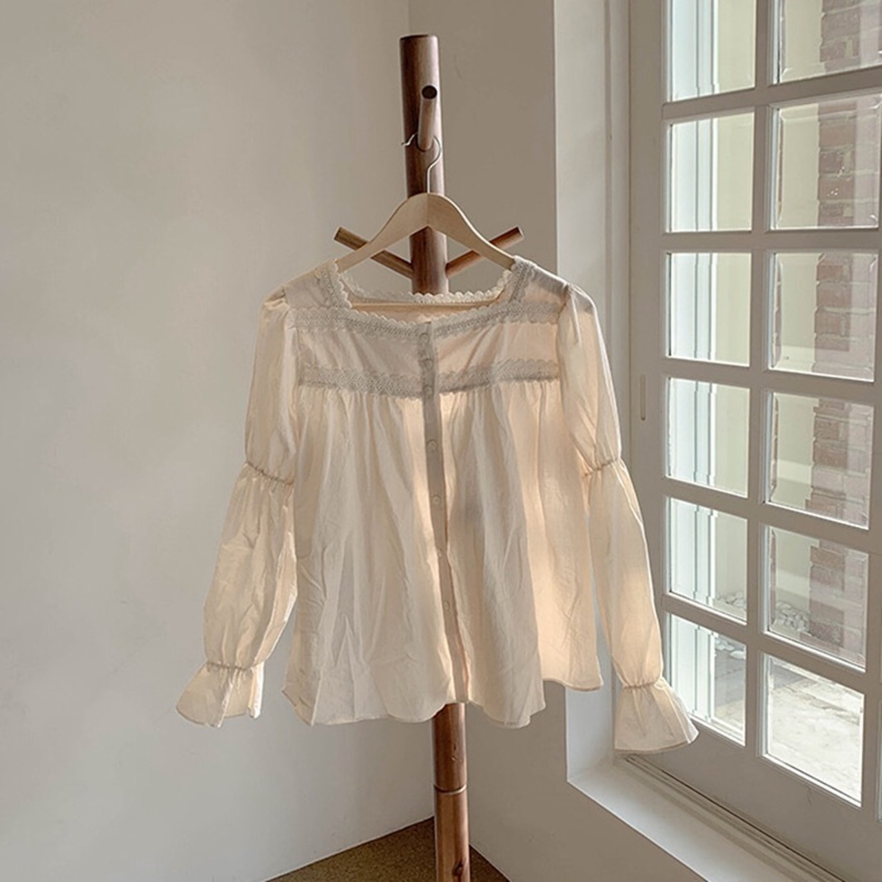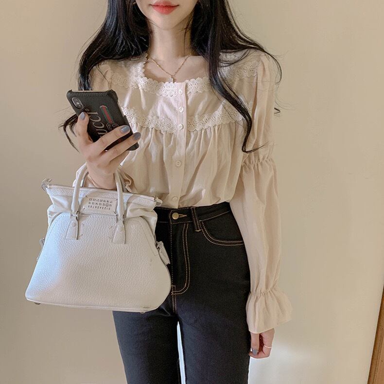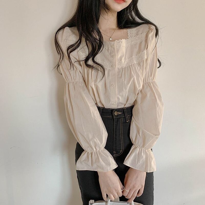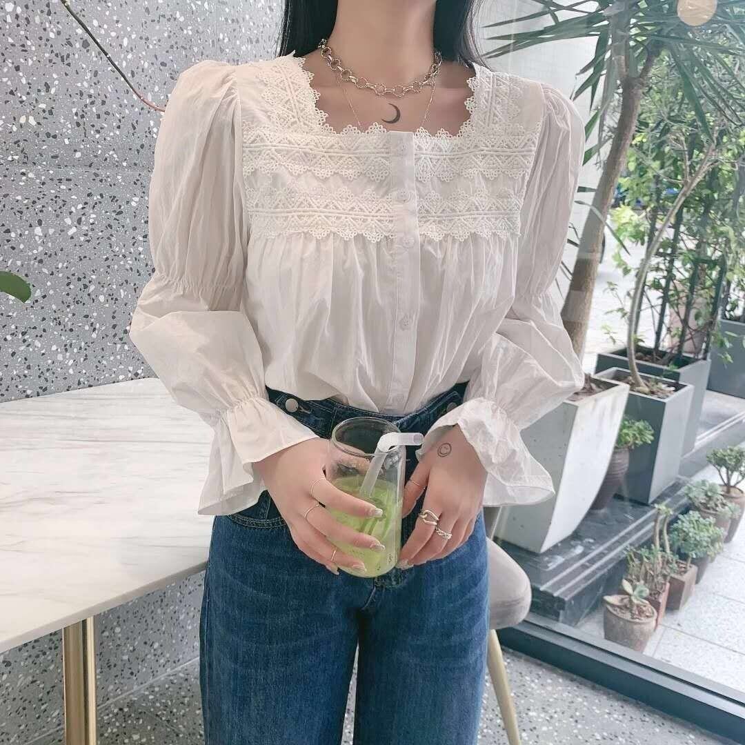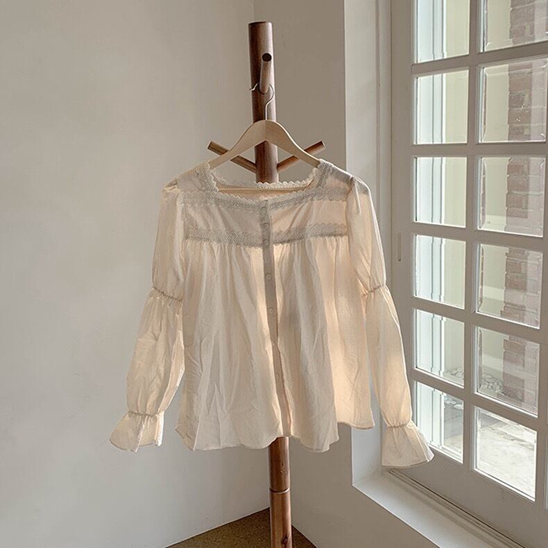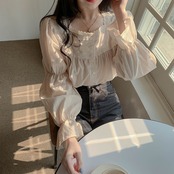 【tops】大人可愛いフリルスクエアネックブラウス
