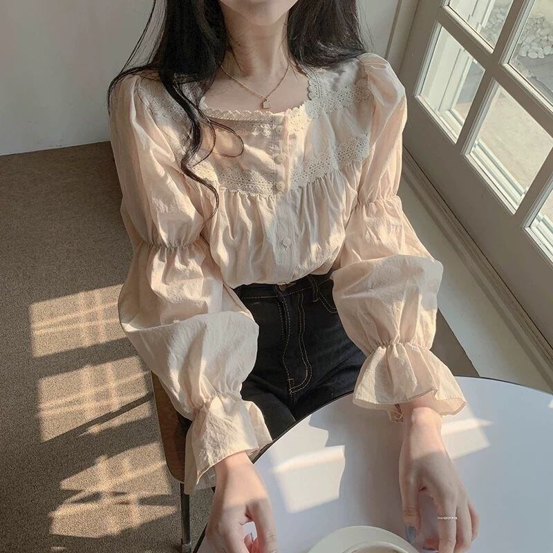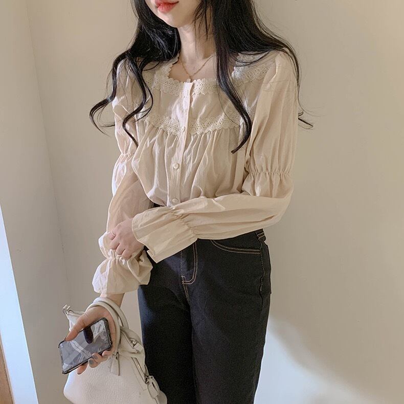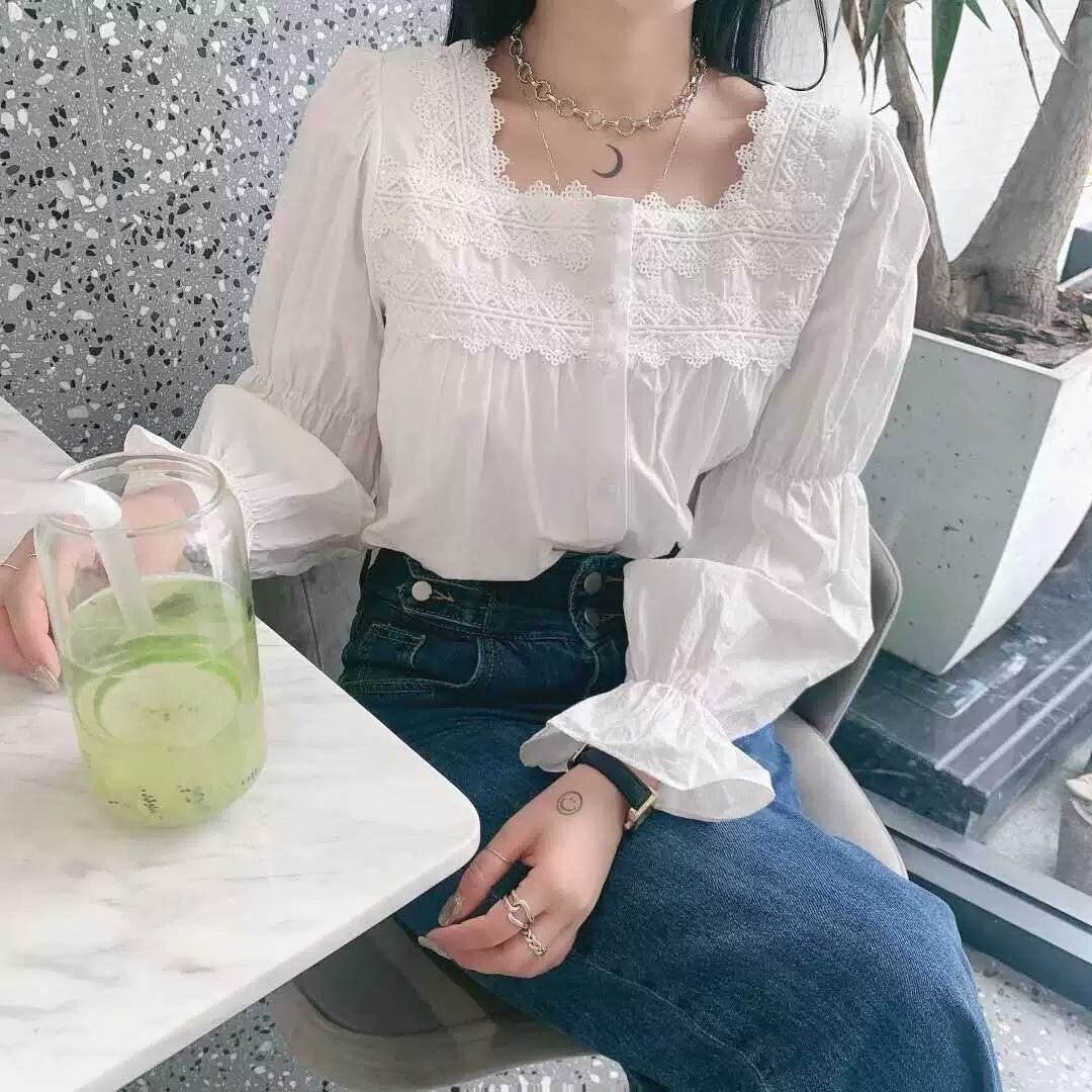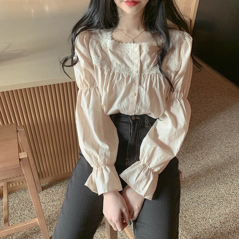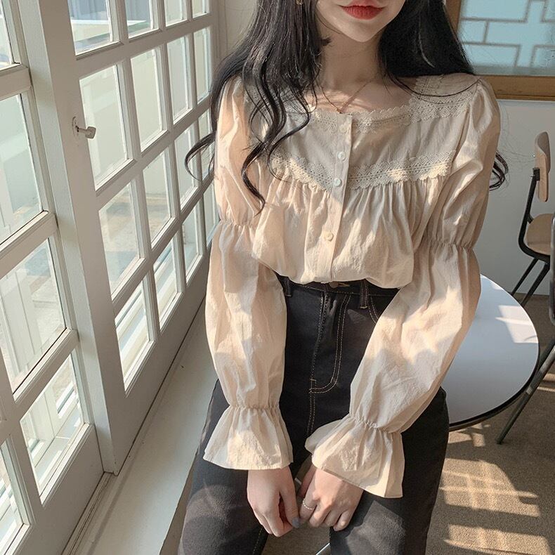 【tops】大人可愛いフリルスクエアネックブラウス