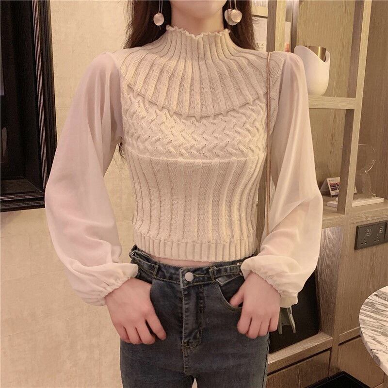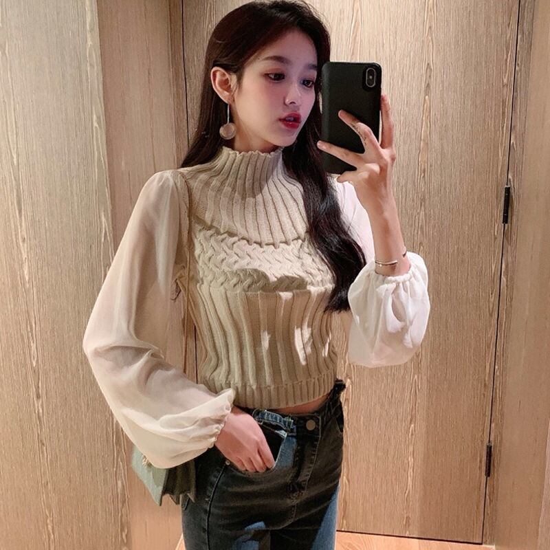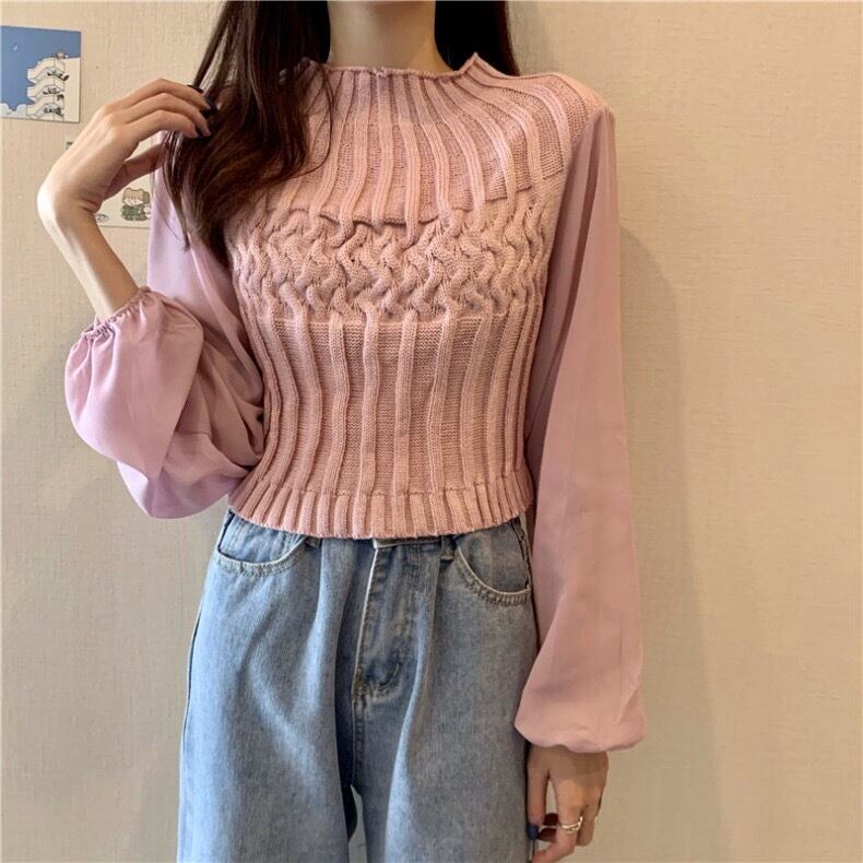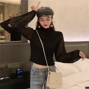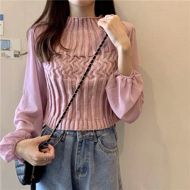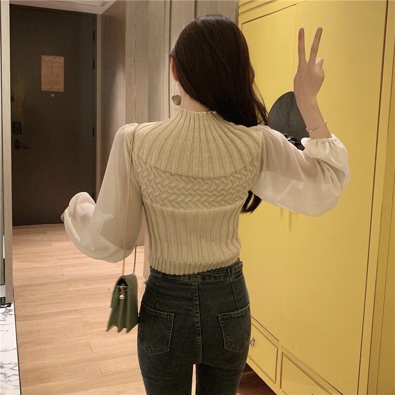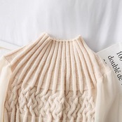 【tops】チュール切り替えニットセーター4色 TK0980