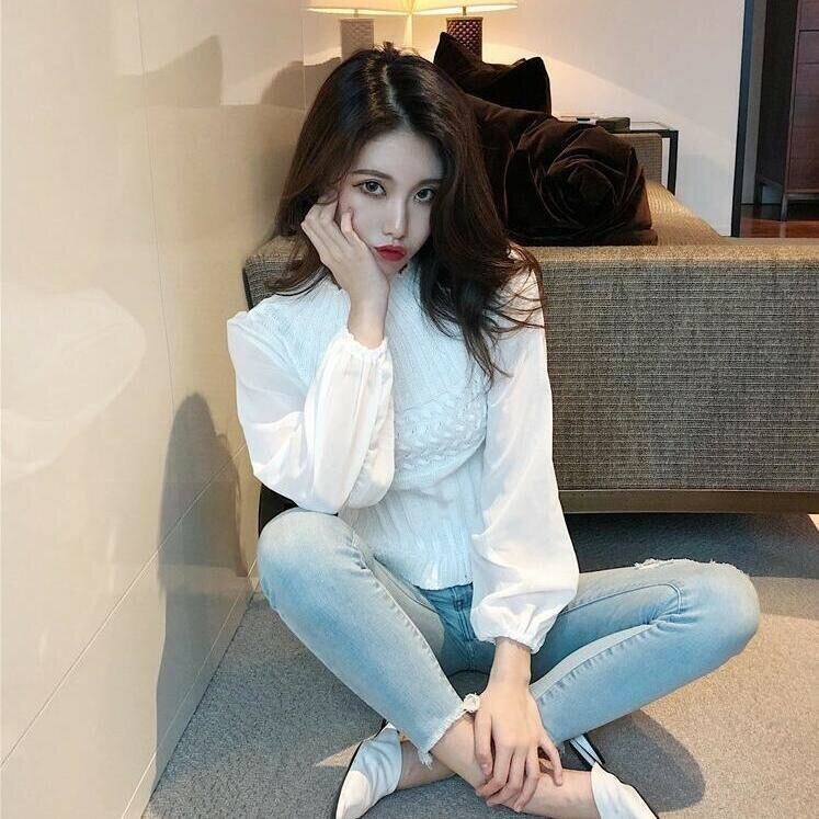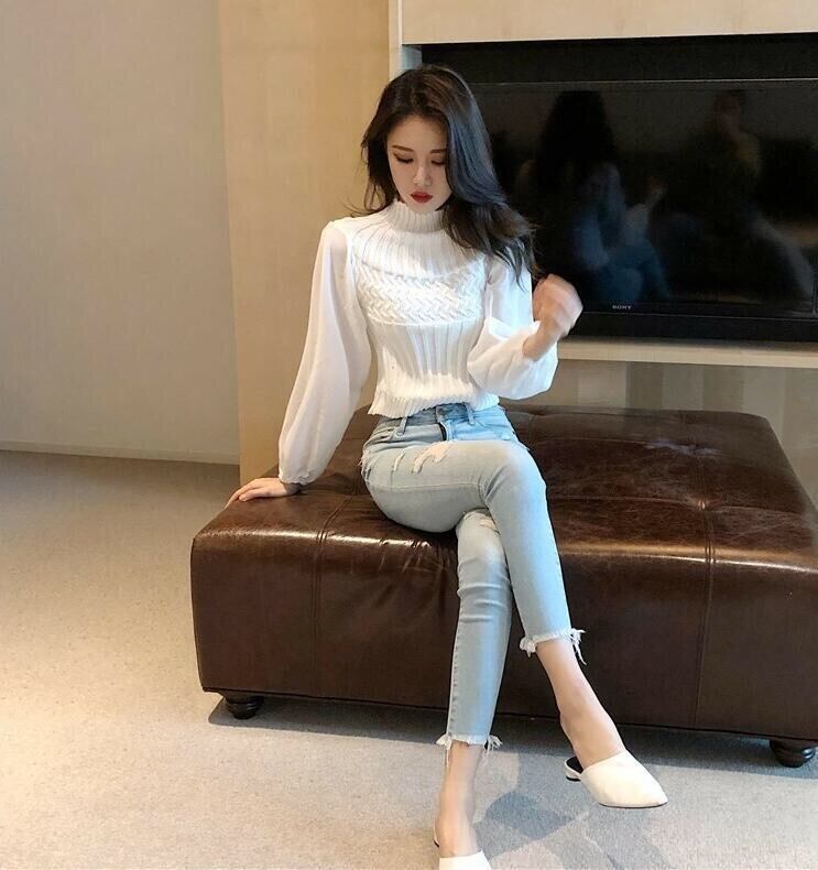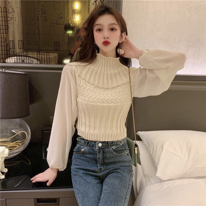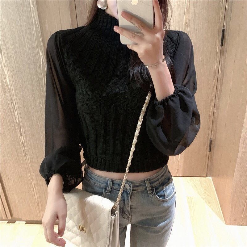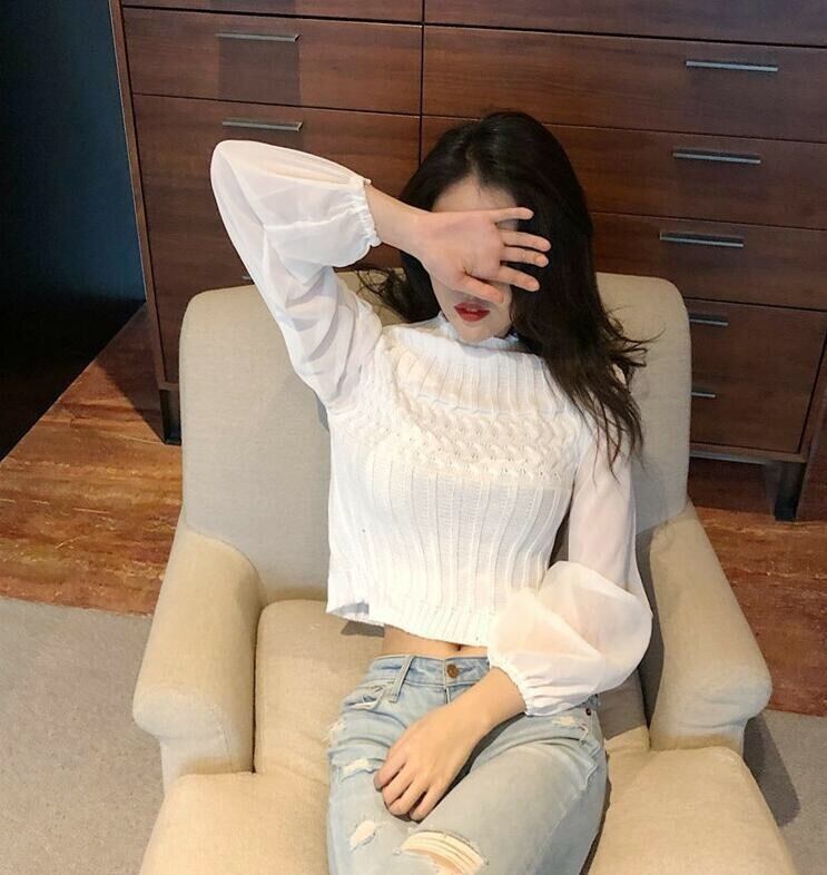 【tops】チュール切り替えニットセーター4色 TK0980