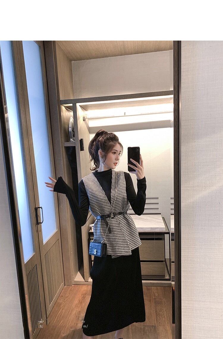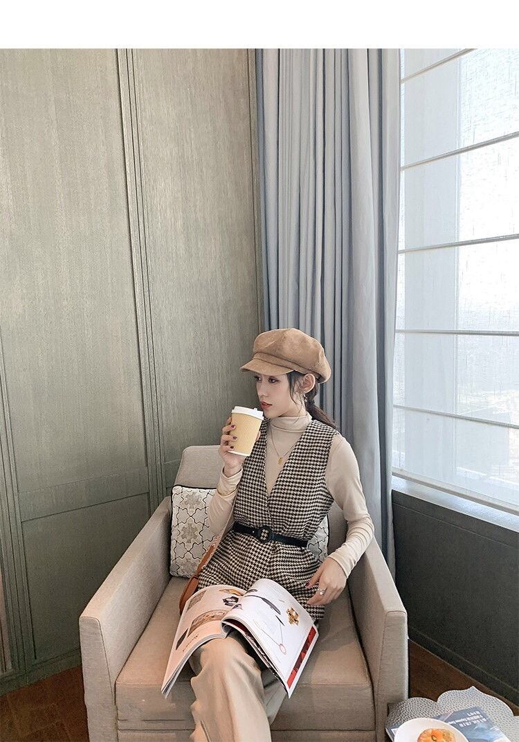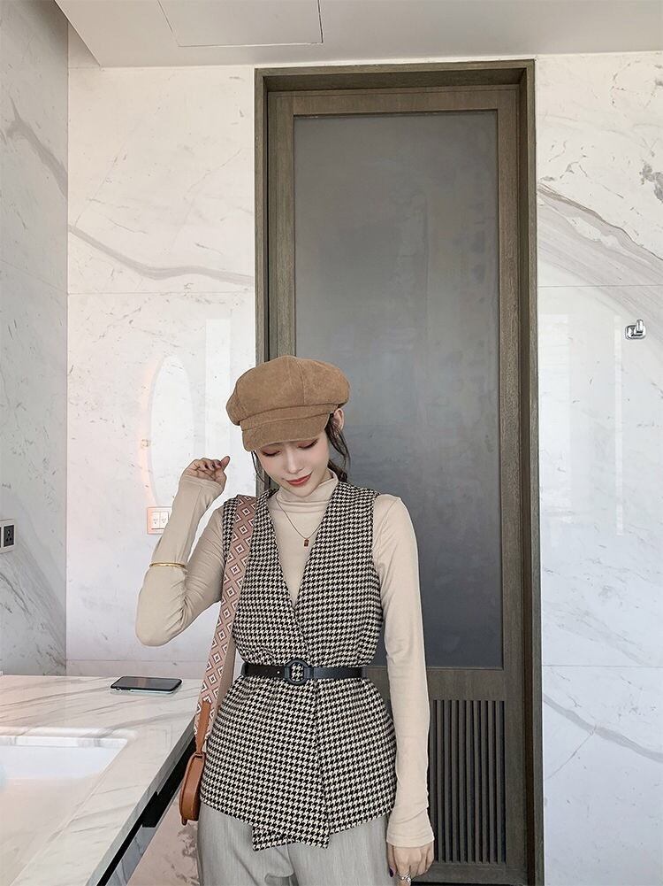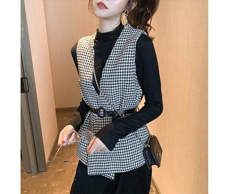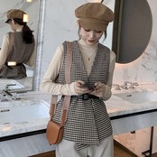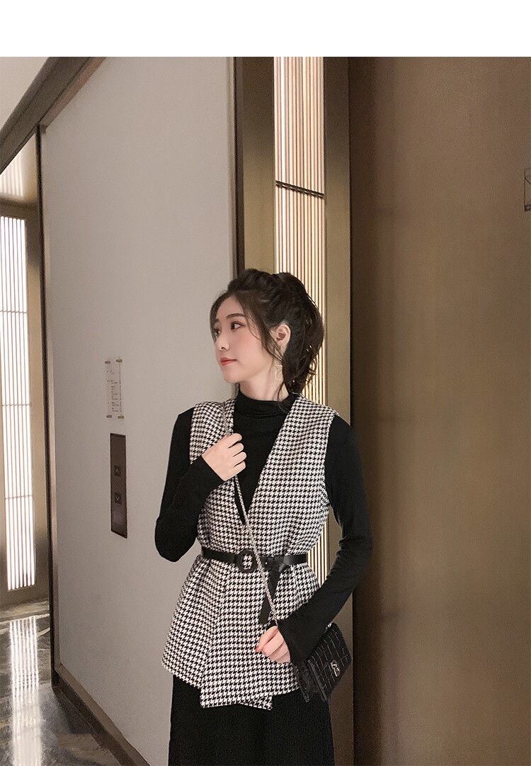 【outer】ベルト付き千鳥柄ジレ2色 TK1639
