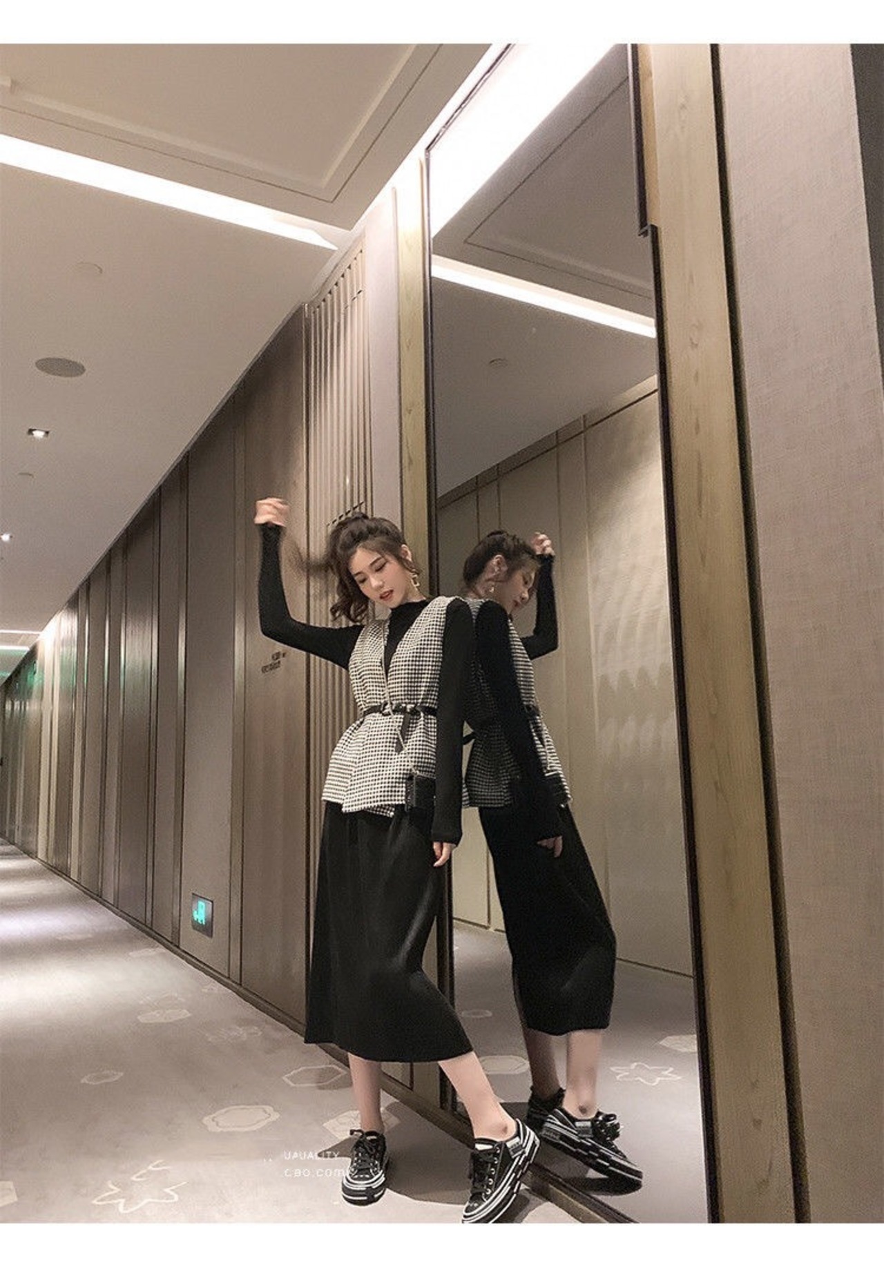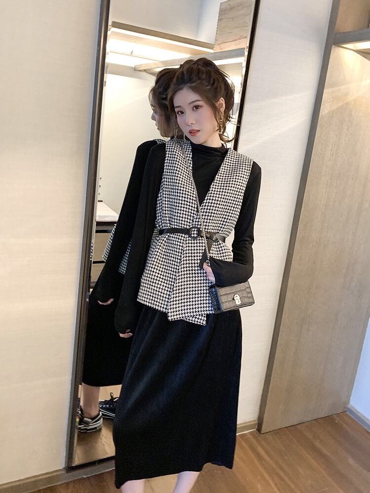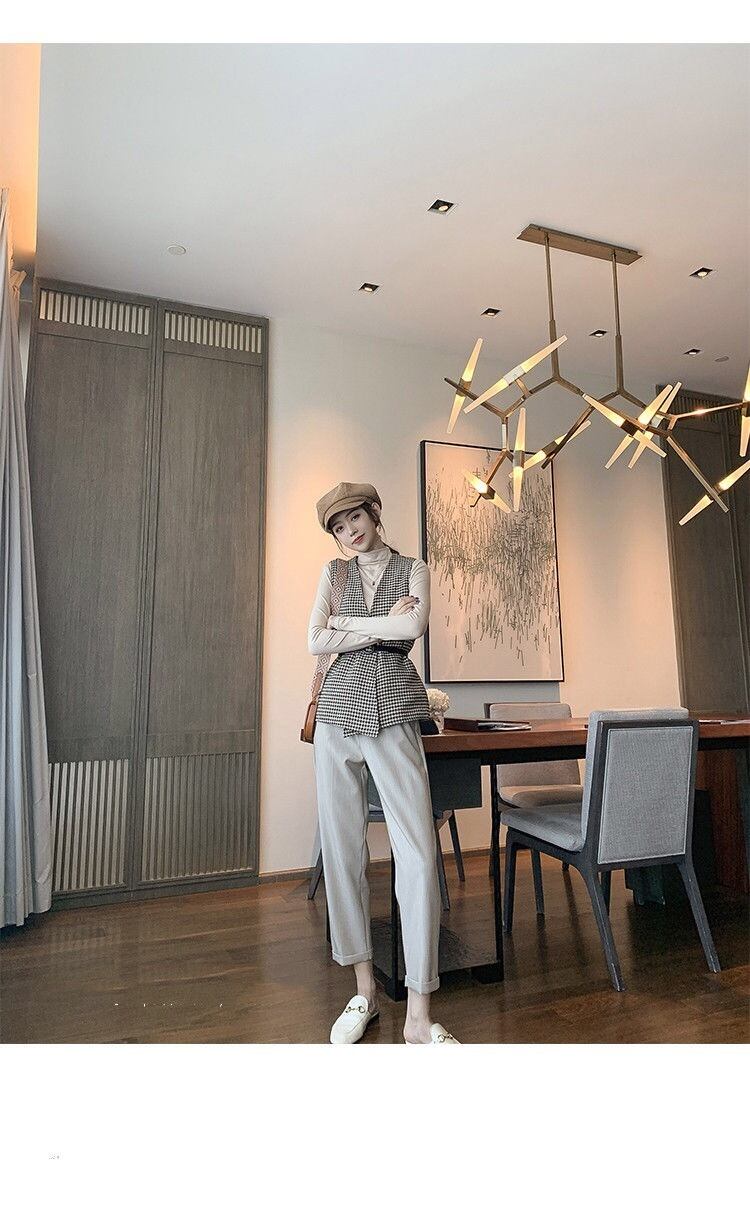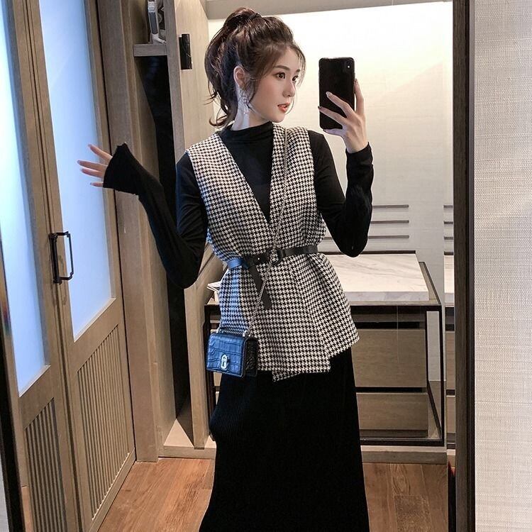 【outer】ベルト付き千鳥柄ジレ2色 TK1639