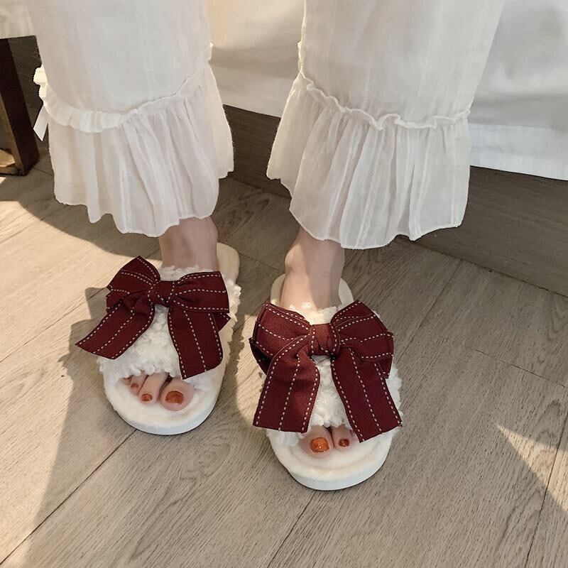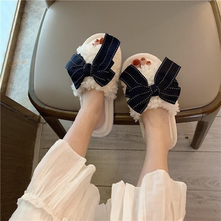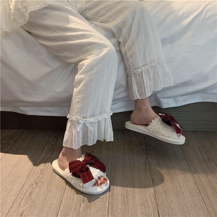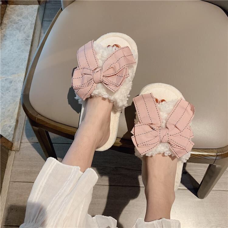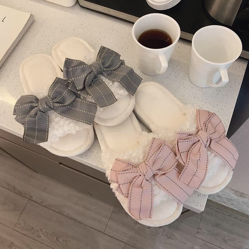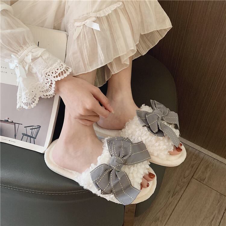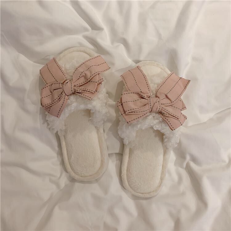 【雑貨】ふわふわ履き心地良いリボンスリッパ4色