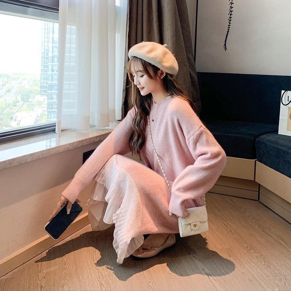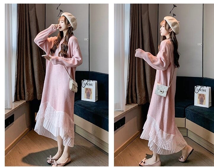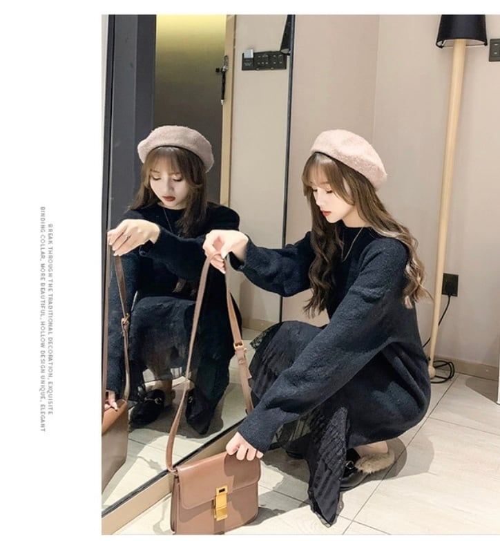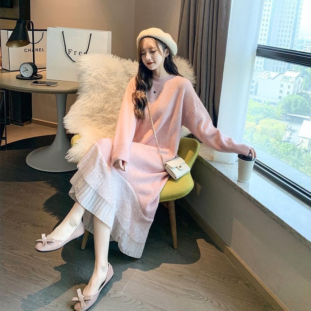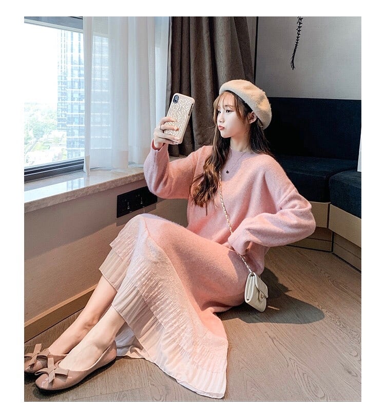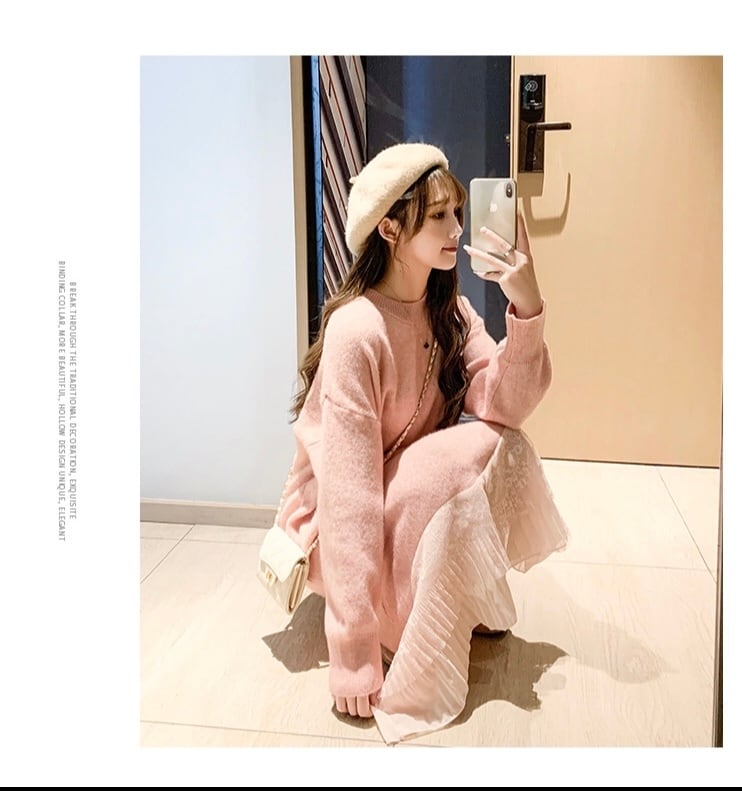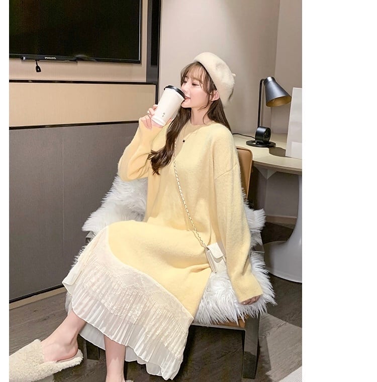 【dress】ラウンドネック切り替えニットワンピース TK2756