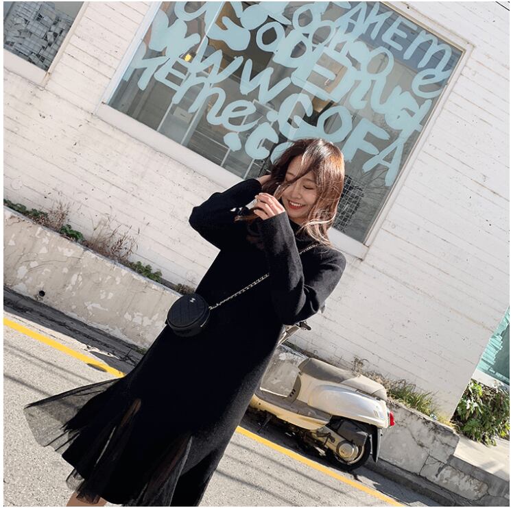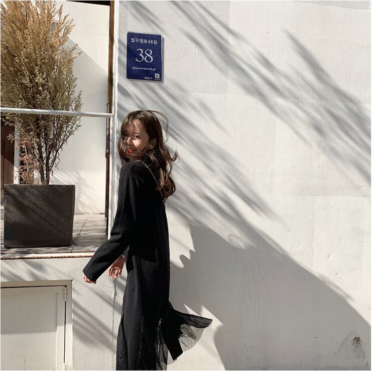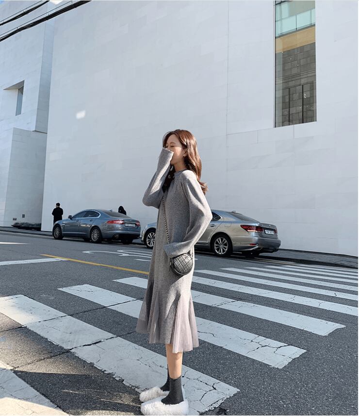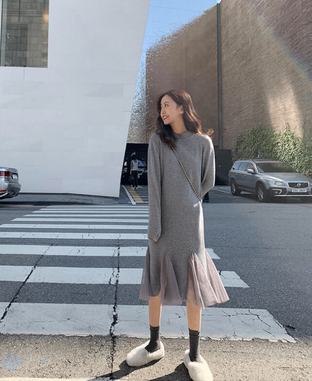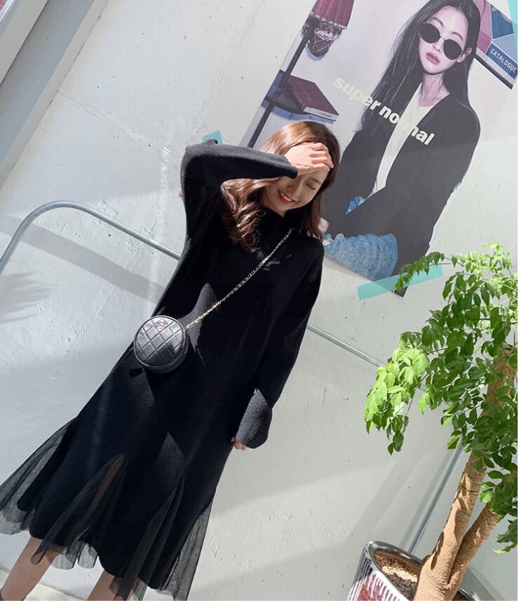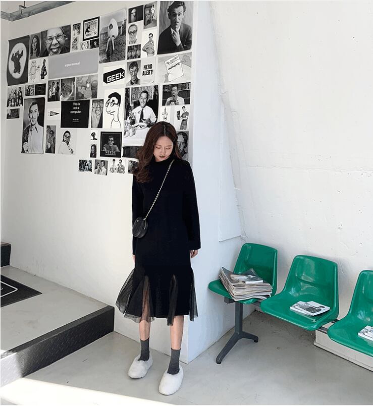 【dress】チュール切り替えニットワンピース3色