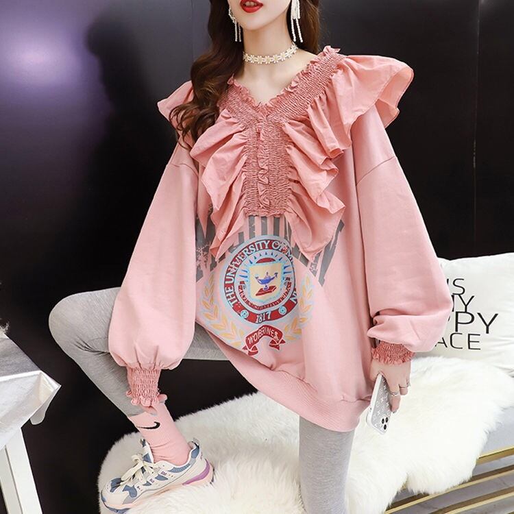【tops】プリントフリル韓国系トップス3色 TK2153