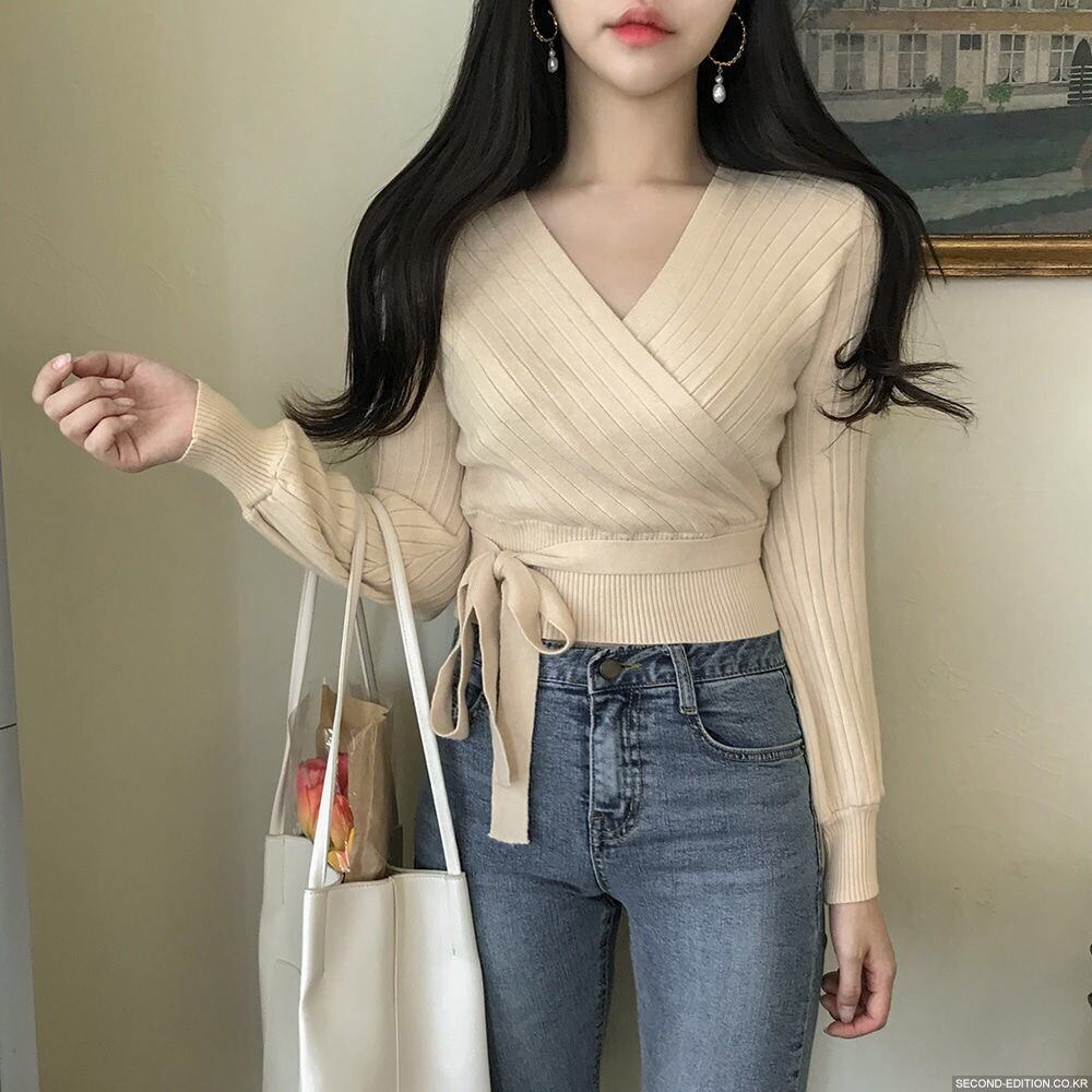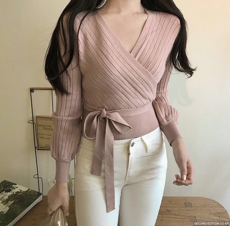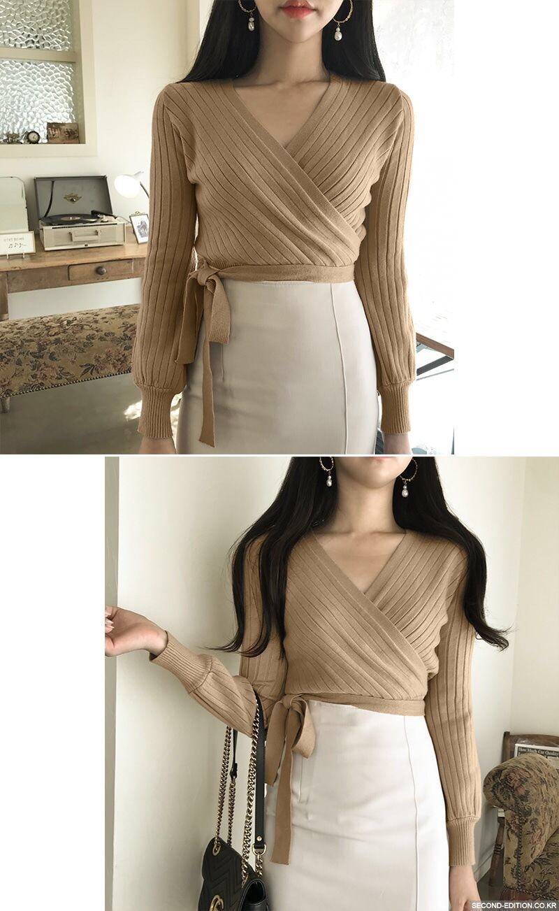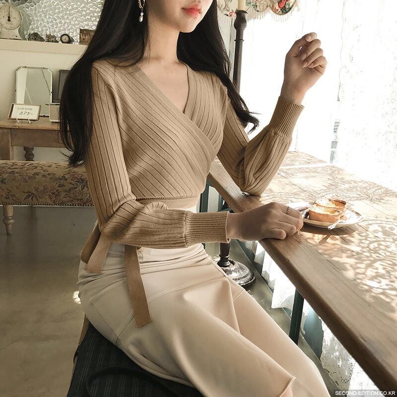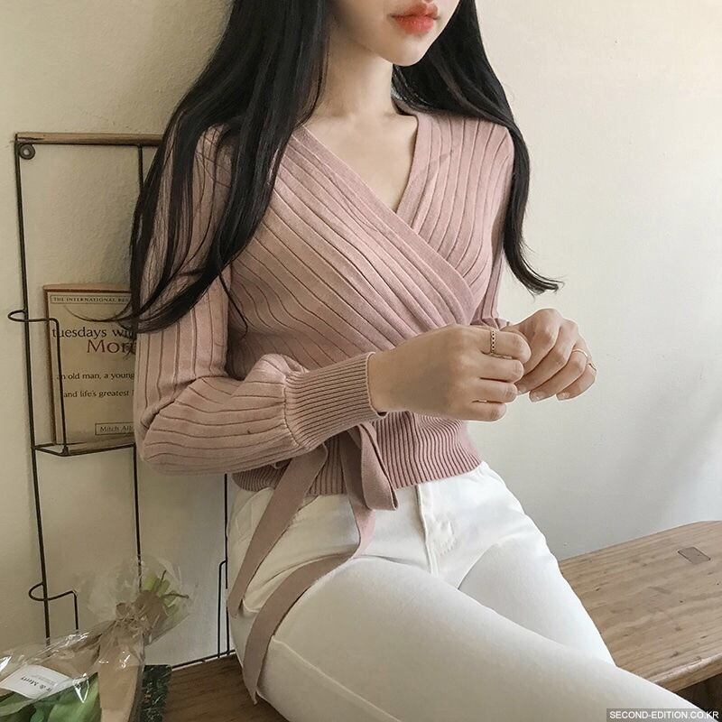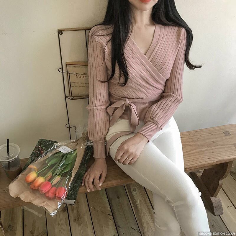 【tops】カシュクールリボンデザインニットセーター4色 TK1090