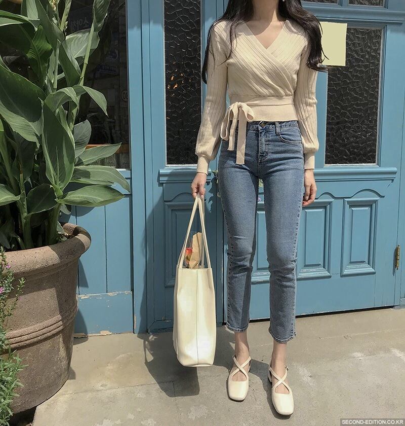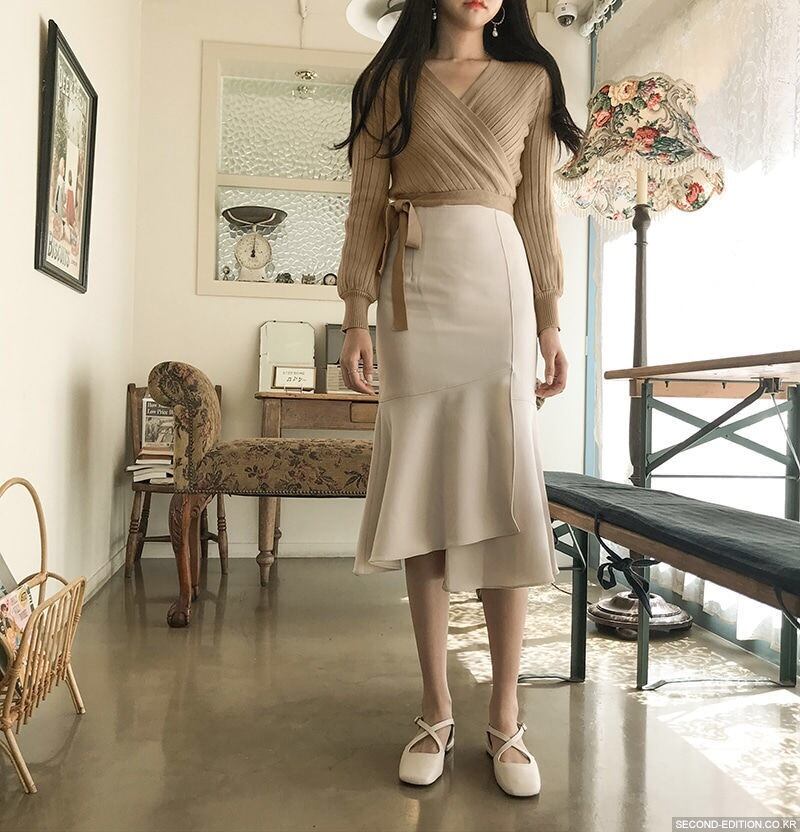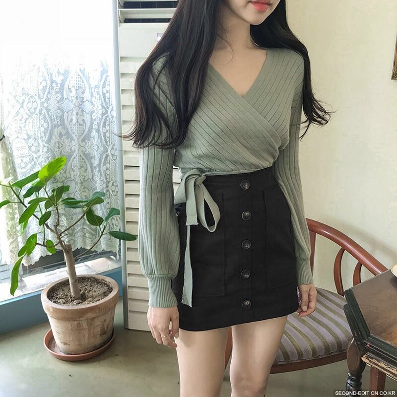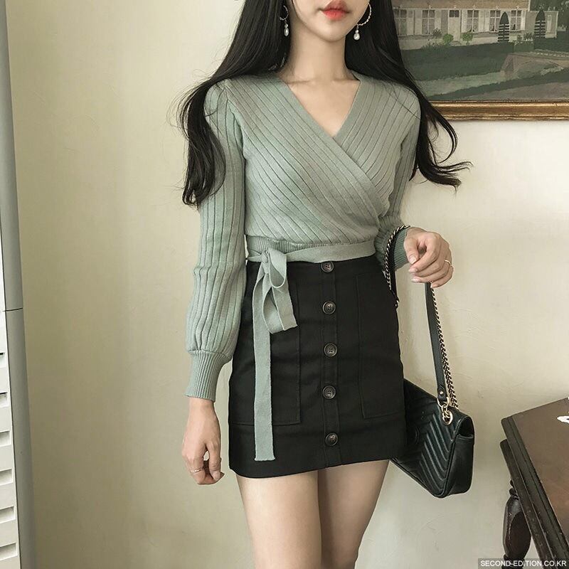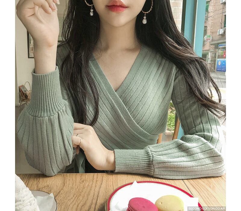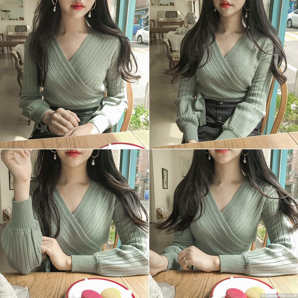 【tops】カシュクールリボンデザインニットセーター4色 TK1090