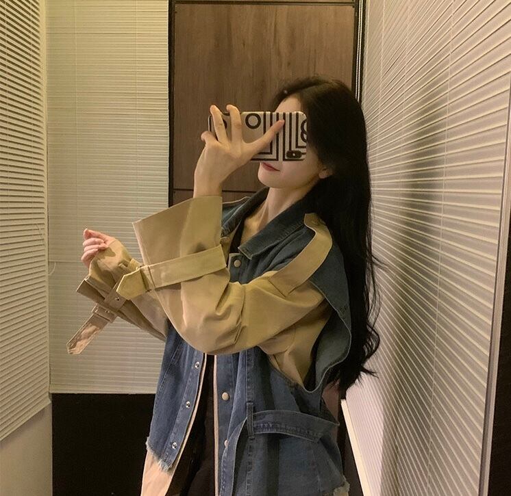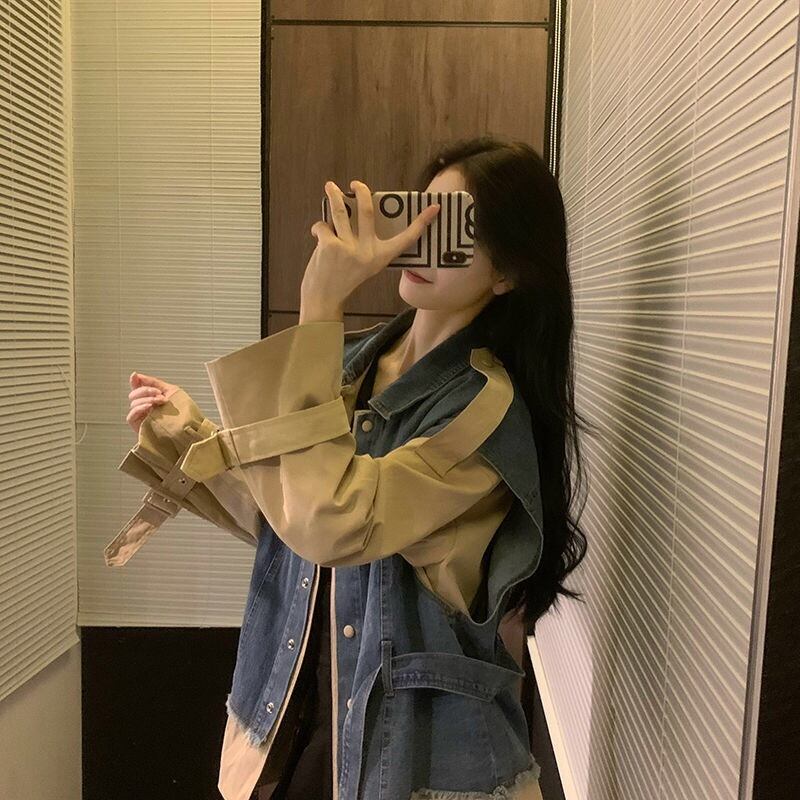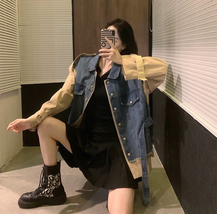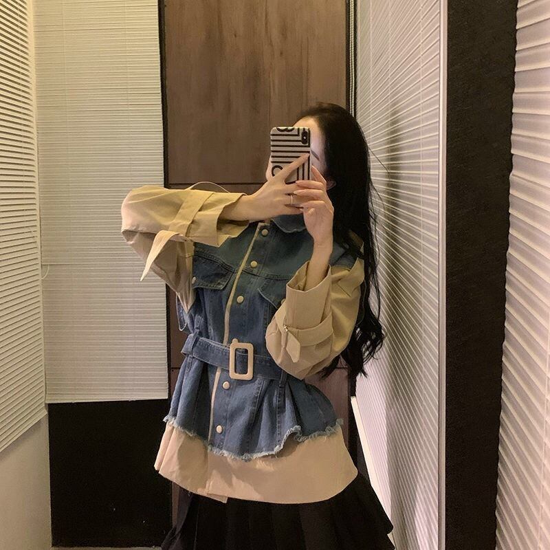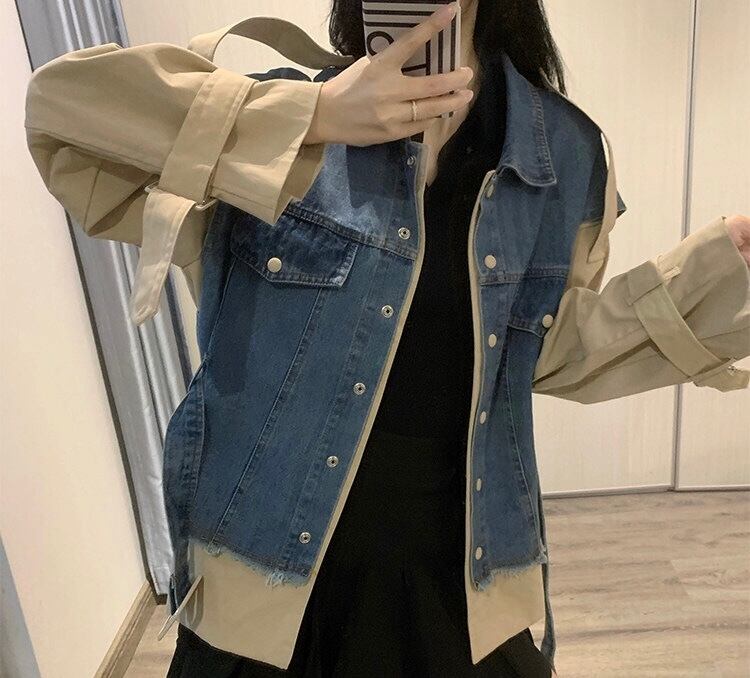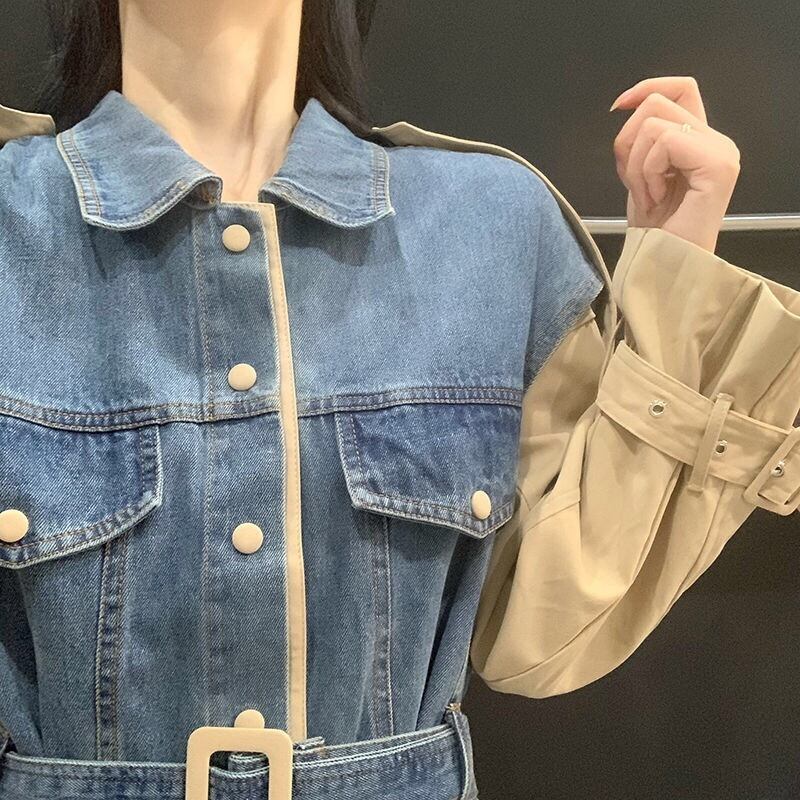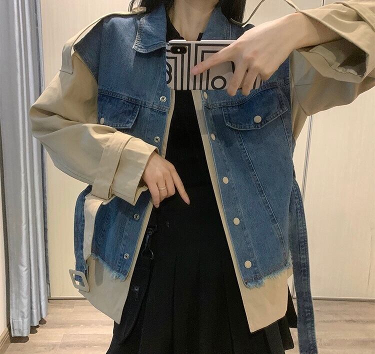 【outer】2wayデニム切り替えベルト付きジャケット