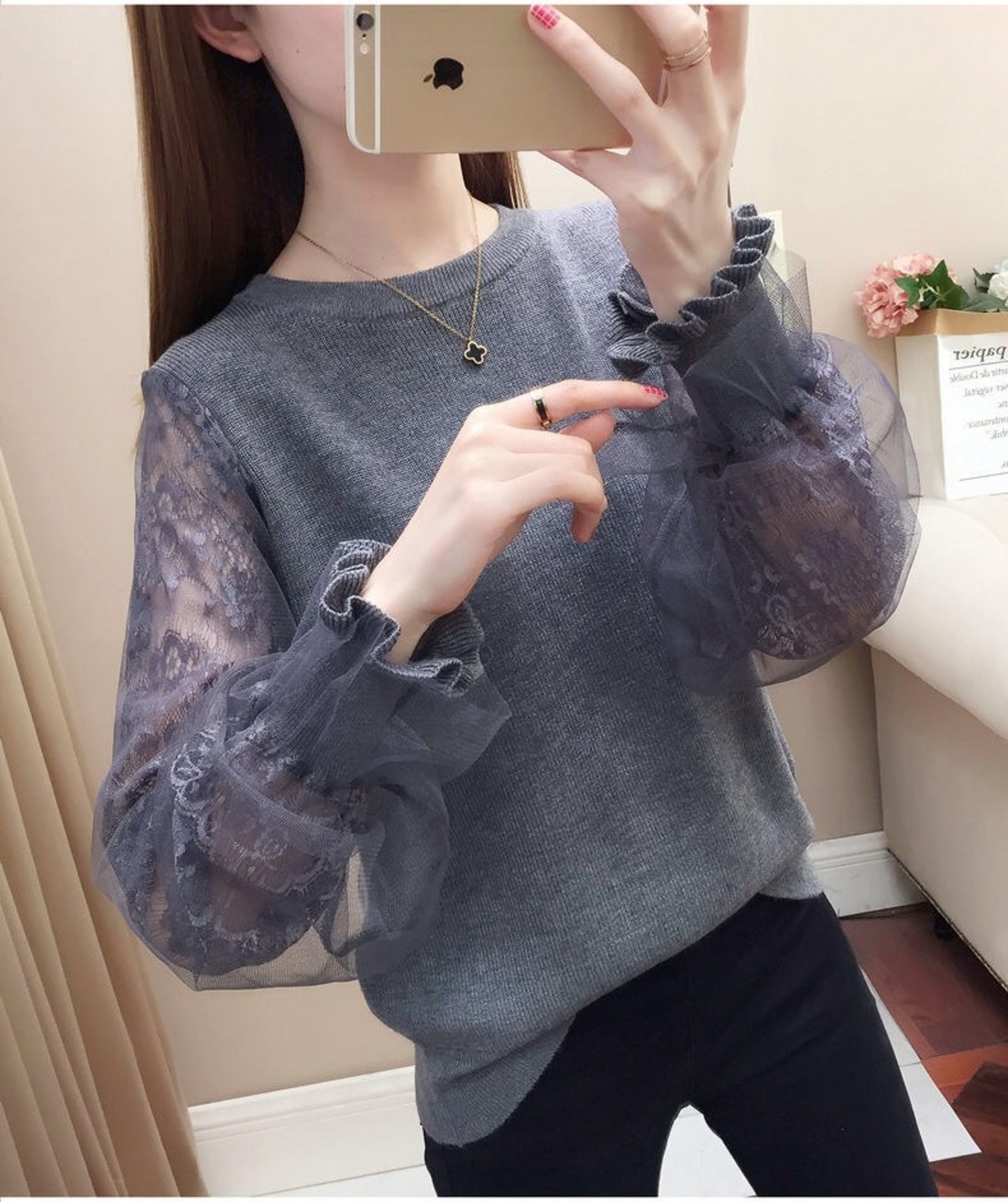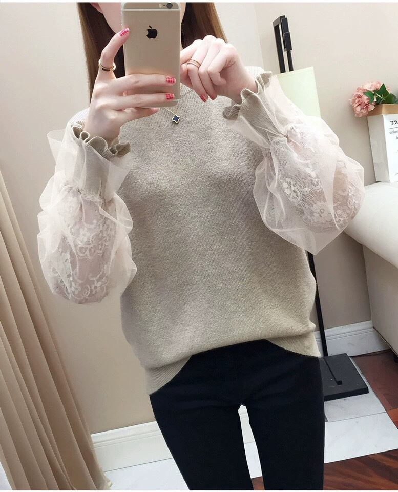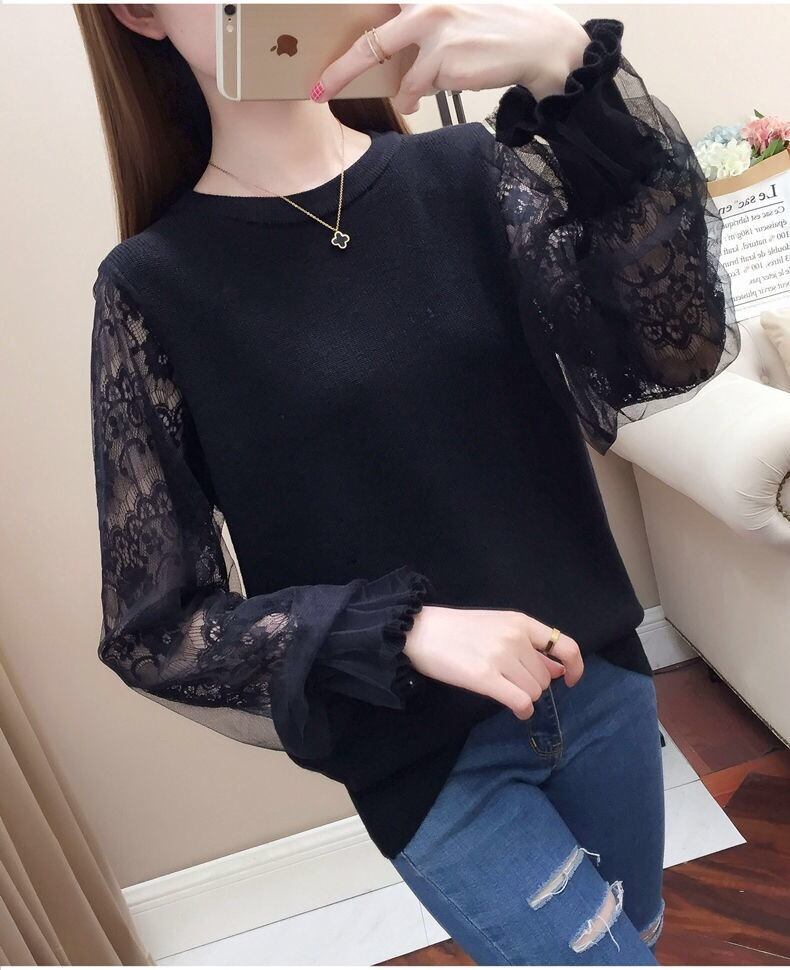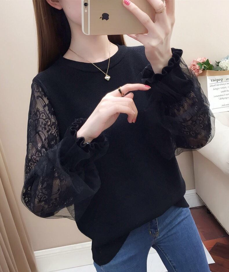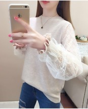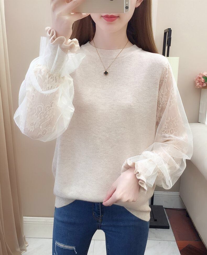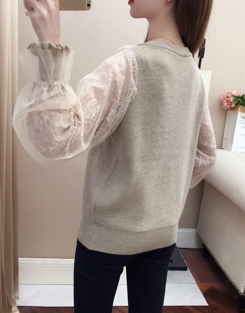 【tops】S〜2XLシアースリーブニットトップス4色 K0304