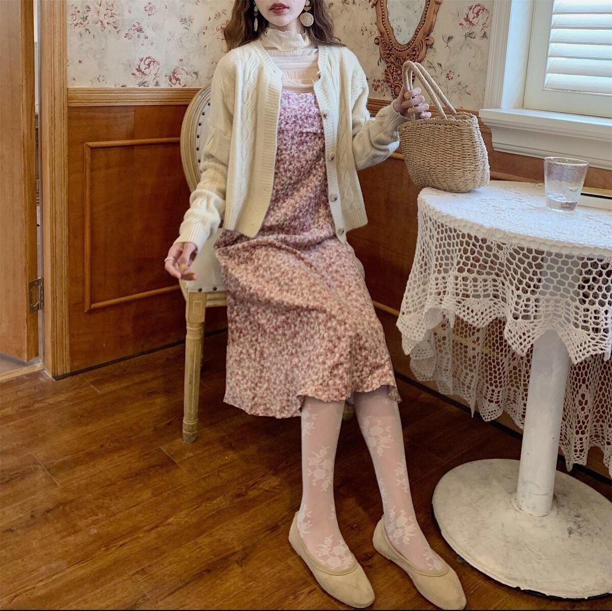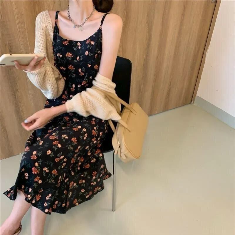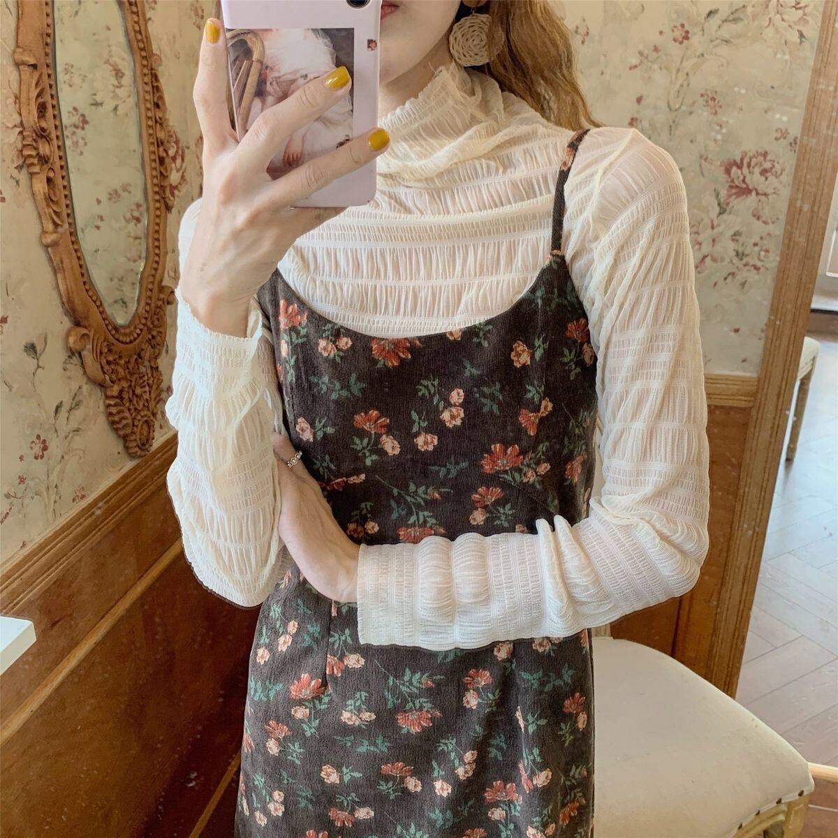 【dress】レトロフラワーフリントコーデュロイキャミワンピース