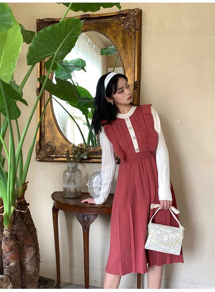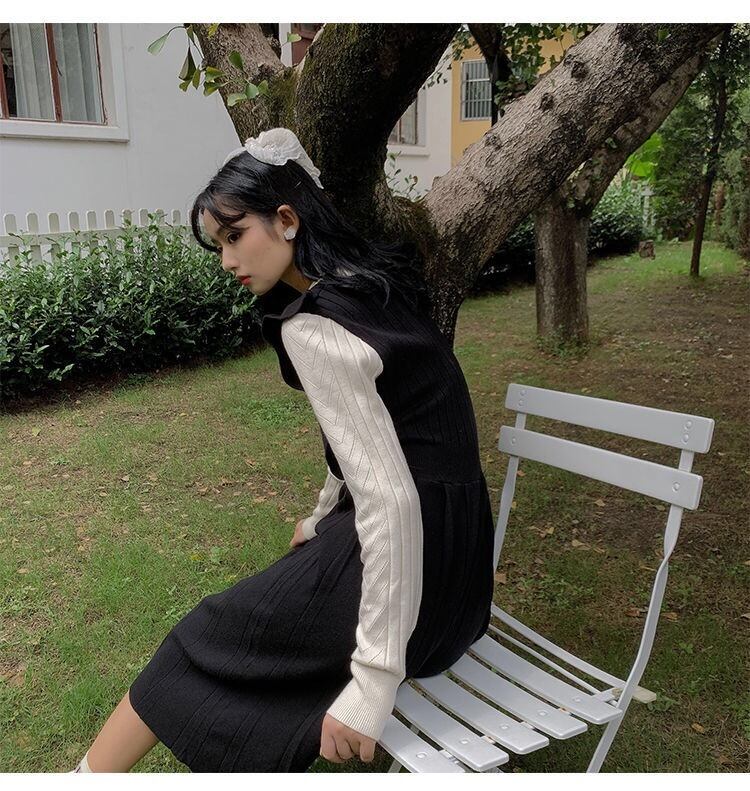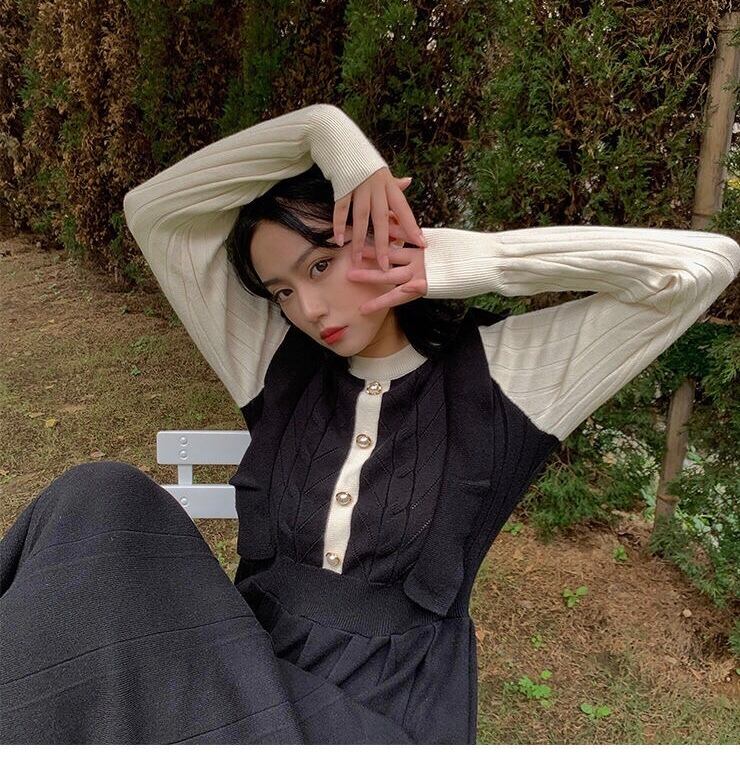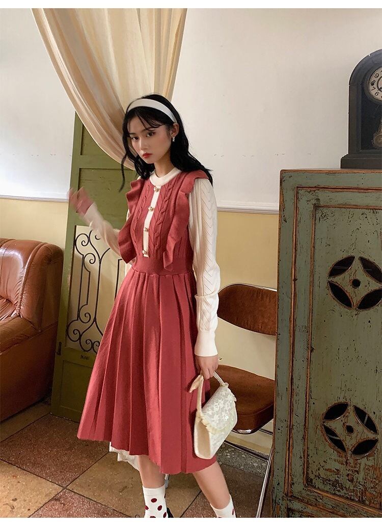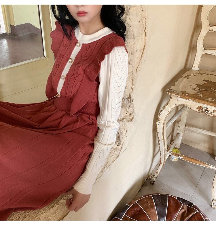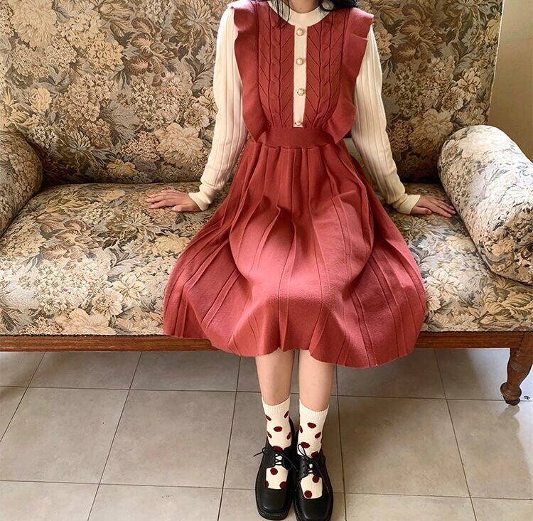 【dress】フリル長袖ニットワンピース2色