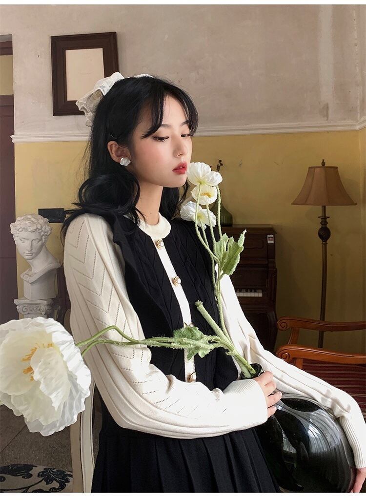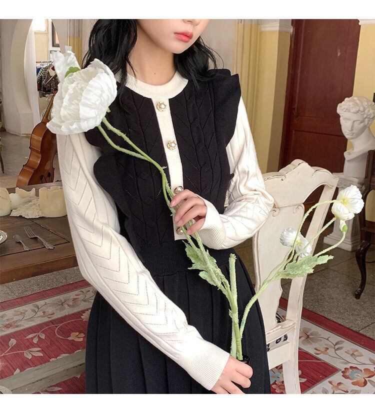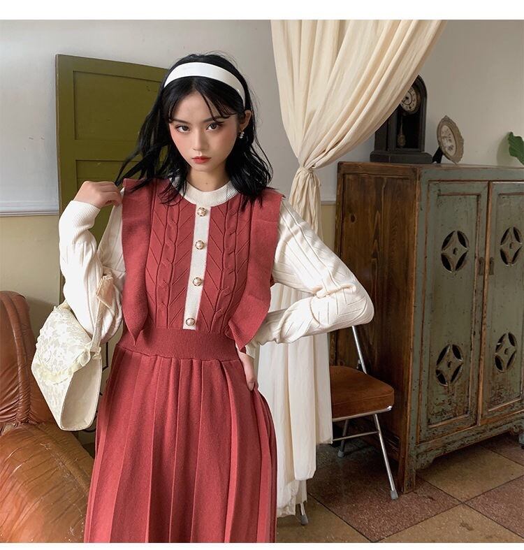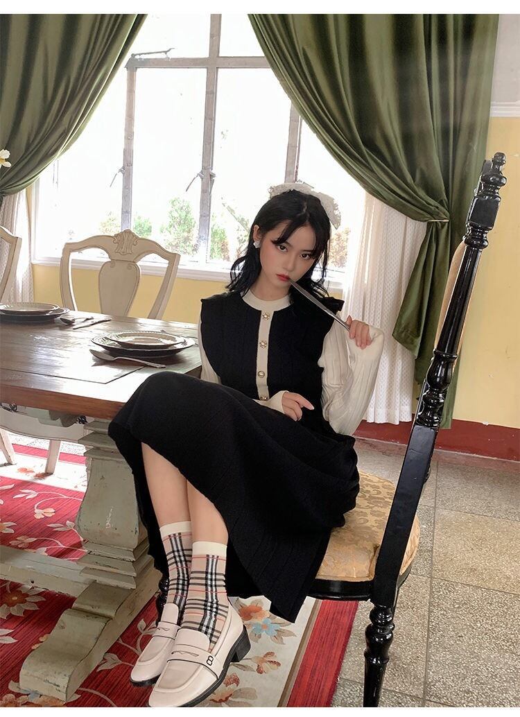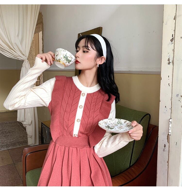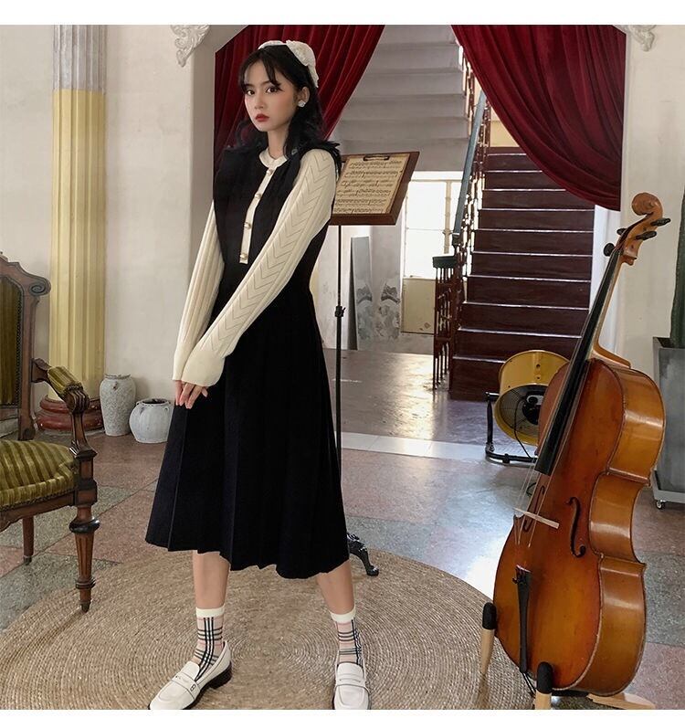 【dress】フリル長袖ニットワンピース2色
