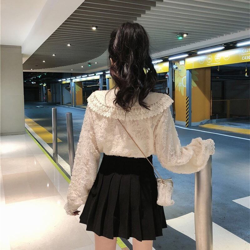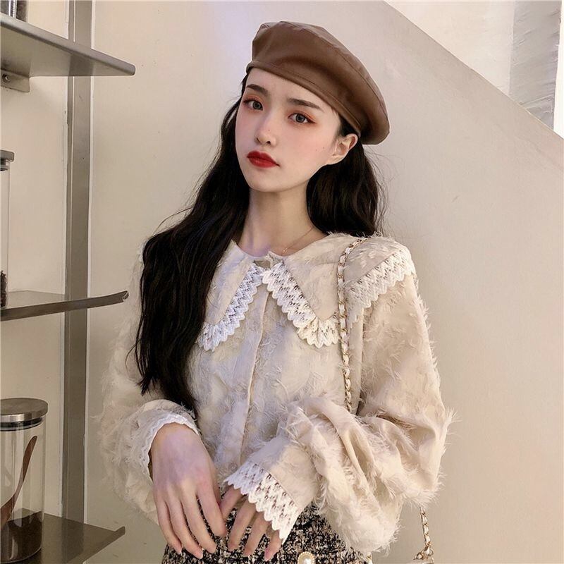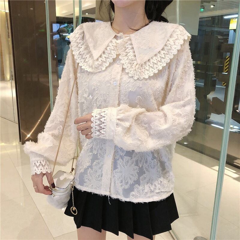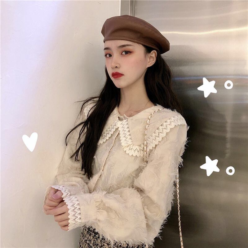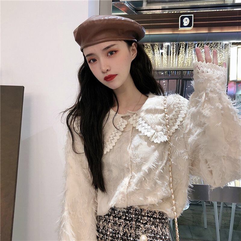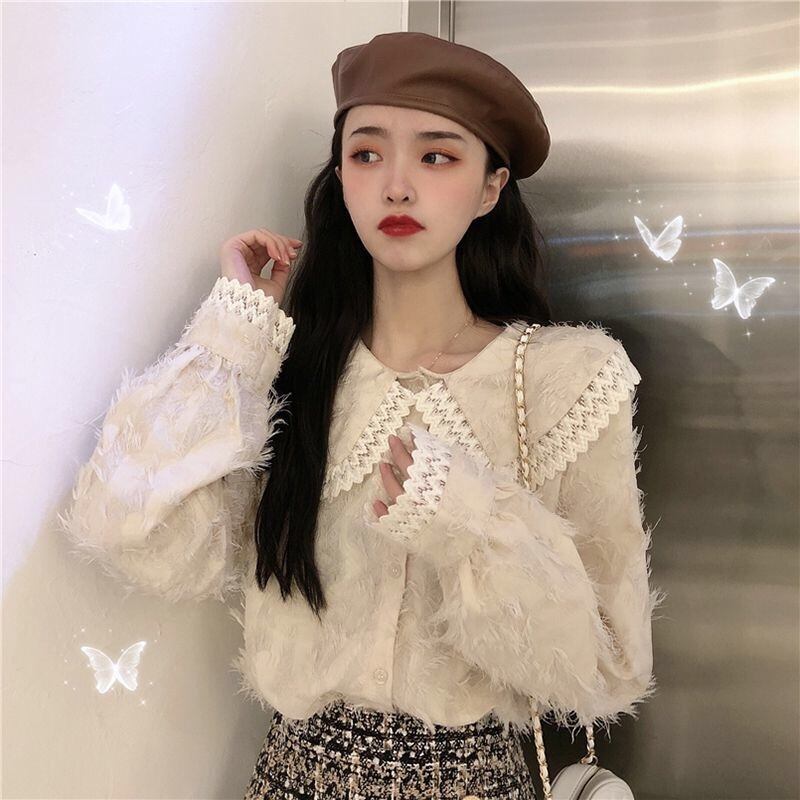 【tops】もこもこ起毛レースブラウス2色
